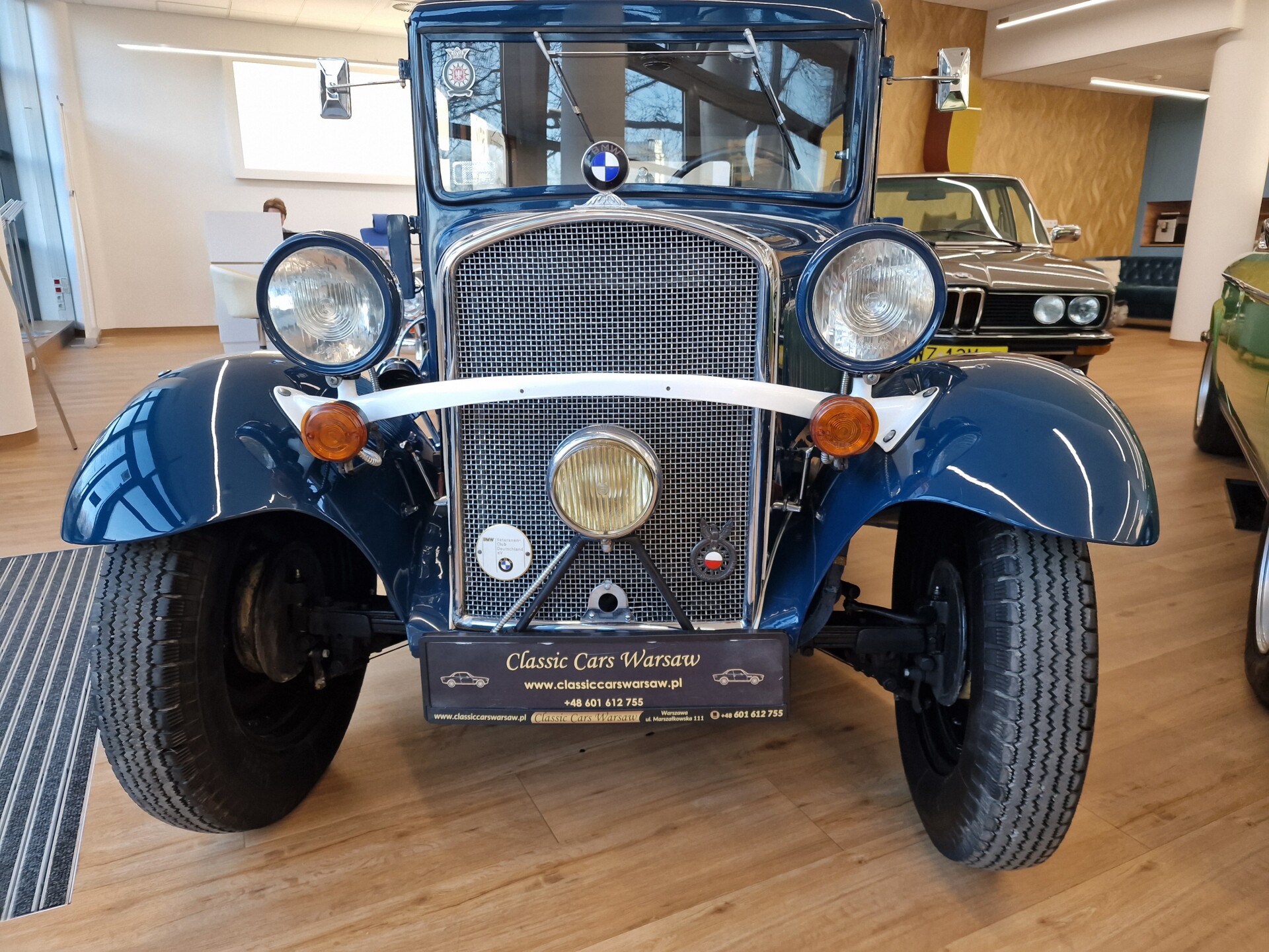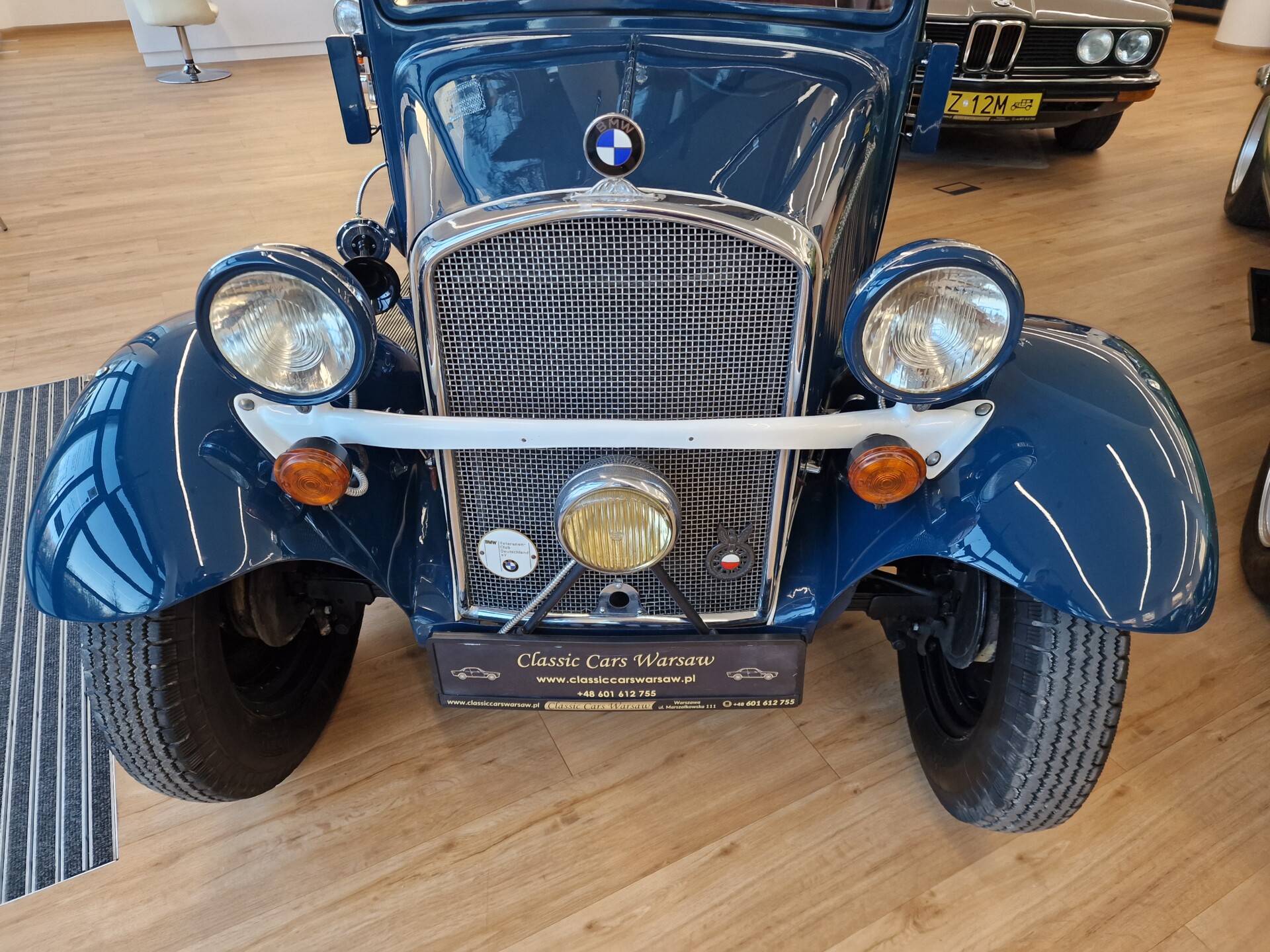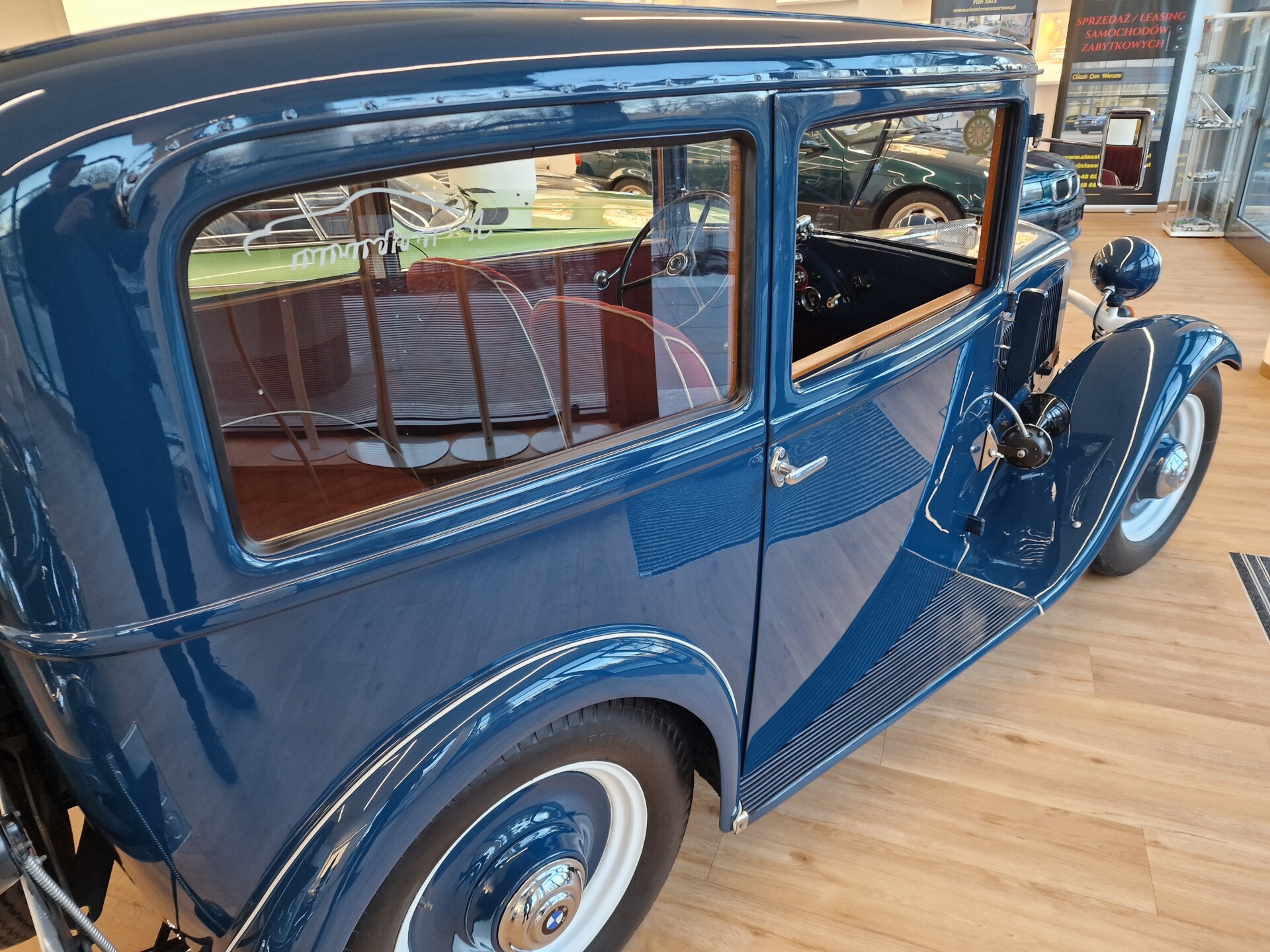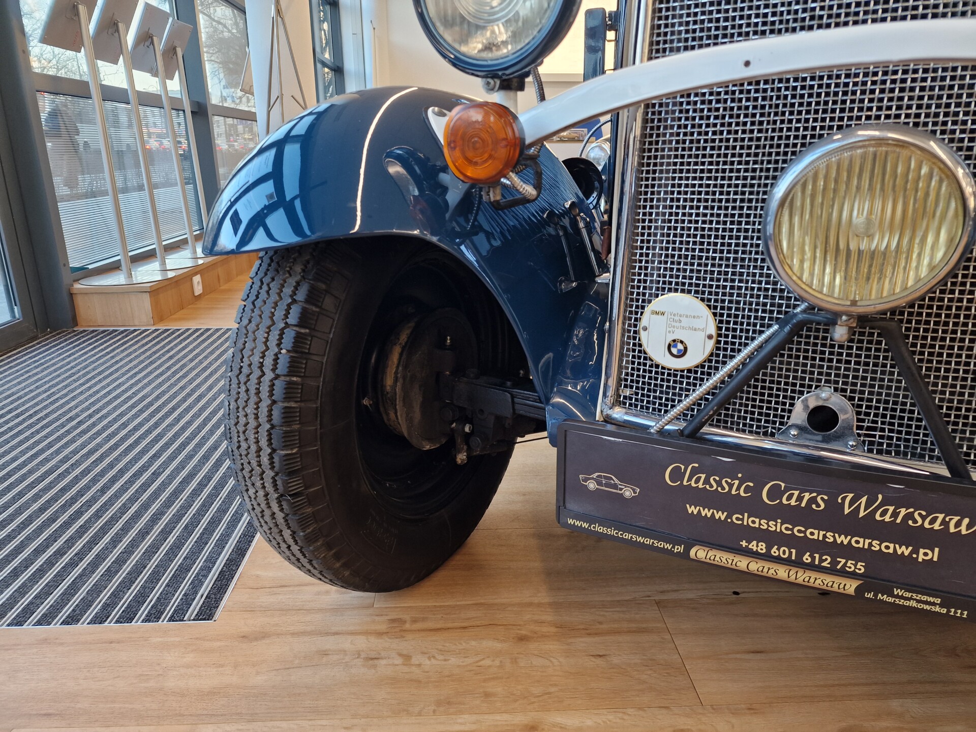 Opis: BMW 3/20 AM4 to pierwszy samochód wyprodukowany po wygaśnięciu licencji na Austina Seven. Budowa nadwozi została zlecona firmie Daimler- Benz. Z uwagi na tą nie prawdopodobną współpracę między dwoma rywalami powstała specjalna lina produkcyjna w Sindelfingen która produkowała nadwozia do modelu 3/20 które były potem uzbrajane w fabryce BMW w Eisenach. Głęboko unowocześniony silnik z modelu 3/15 rozwijał teraz 20 KM ale dalej znajdował się w trzeciej niemieckiej kategorii podatkowej stąd nazwa 3/15 a końcówka AM-4 znaczyła Automobil München. Nasz egzemplarz został wyprodukowany w 1934 roku i został dostarczony jako nowy do Koszalina. Wyprodukowano 7200 egzemplarzy modelu 3/20 w tym 5.055 wersji limousine.