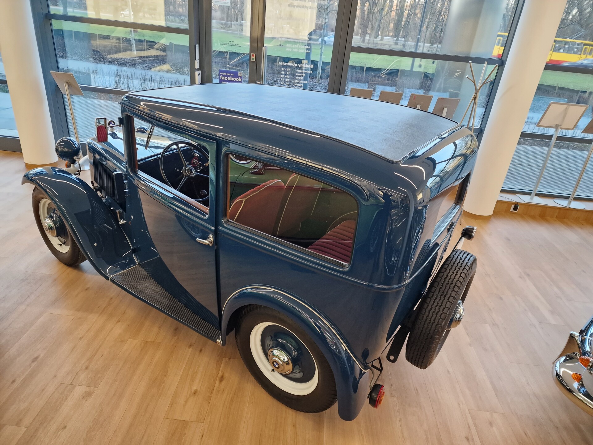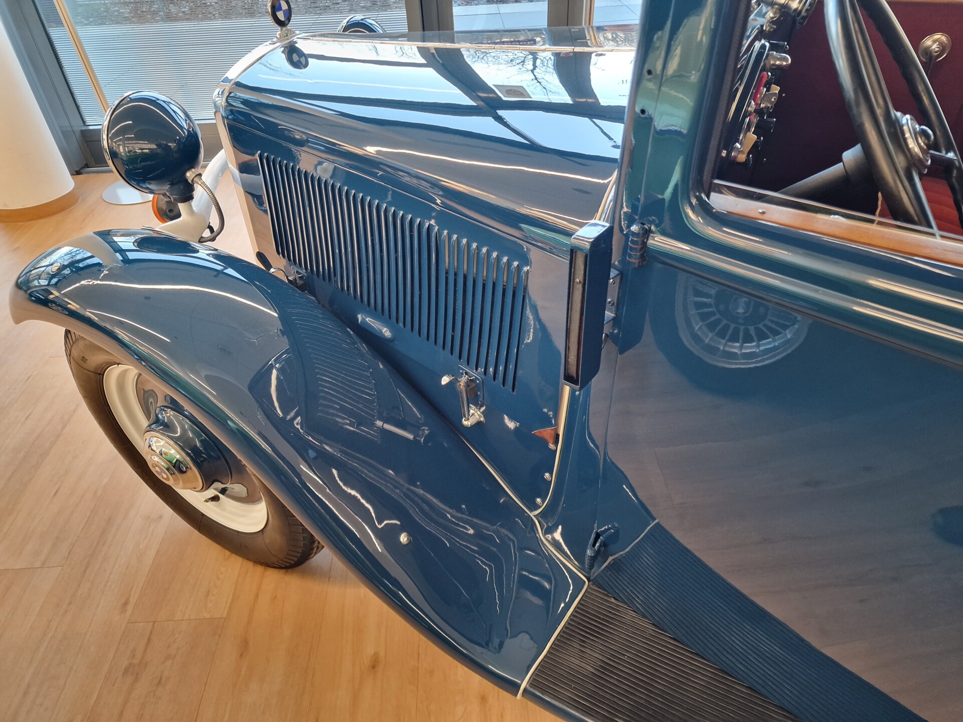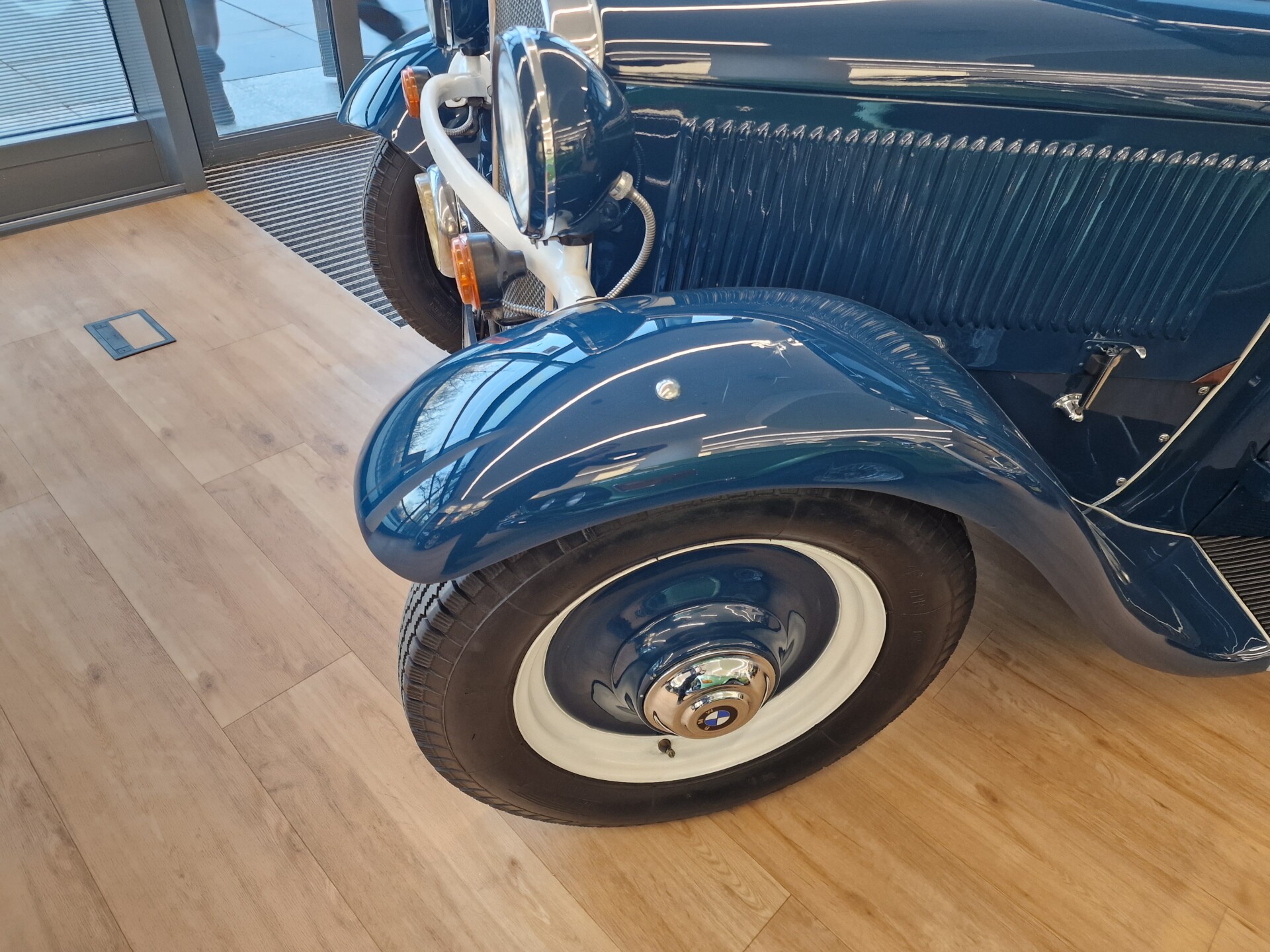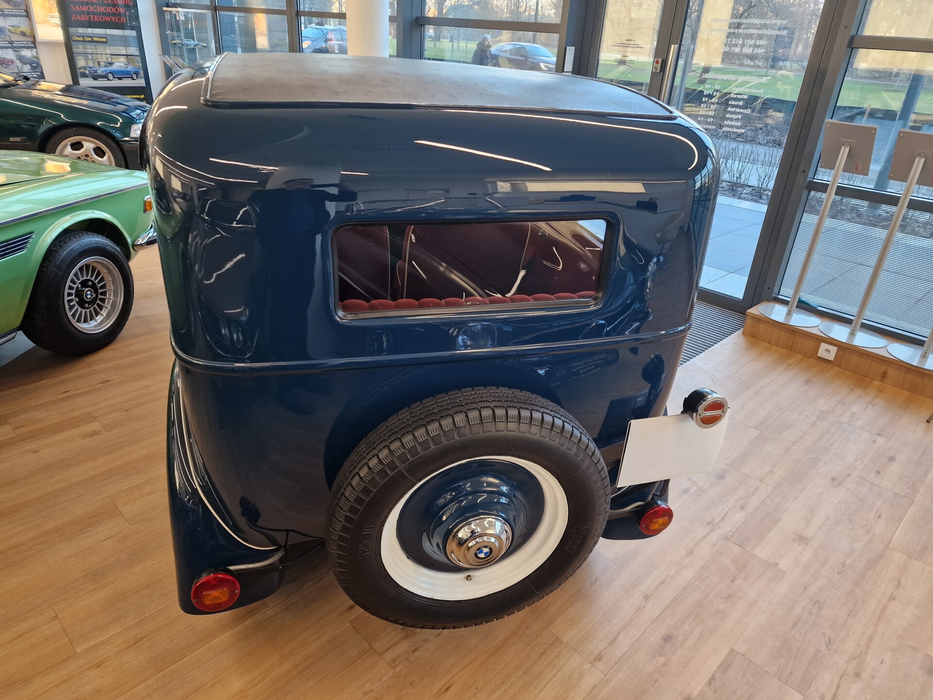Opis: BMW 3/20 AM4 to pierwszy samochód wyprodukowany po wygaśnięciu licencji na Austina Seven. Budowa nadwozi została zlecona firmie Daimler- Benz. Z uwagi na tą nie prawdopodobną współpracę między dwoma rywalami powstała specjalna lina produkcyjna w Sindelfingen która produkowała nadwozia do modelu 3/20 które były potem uzbrajane w fabryce BMW w Eisenach. Głęboko unowocześniony silnik z modelu 3/15 rozwijał teraz 20 KM ale dalej znajdował się w trzeciej niemieckiej kategorii podatkowej stąd nazwa 3/15 a końcówka AM-4 znaczyła Automobil München. Nasz egzemplarz został wyprodukowany w 1934 roku i został dostarczony jako nowy do Koszalina. Wyprodukowano 7200 egzemplarzy modelu 3/20 w tym 5.055 wersji limousine.
