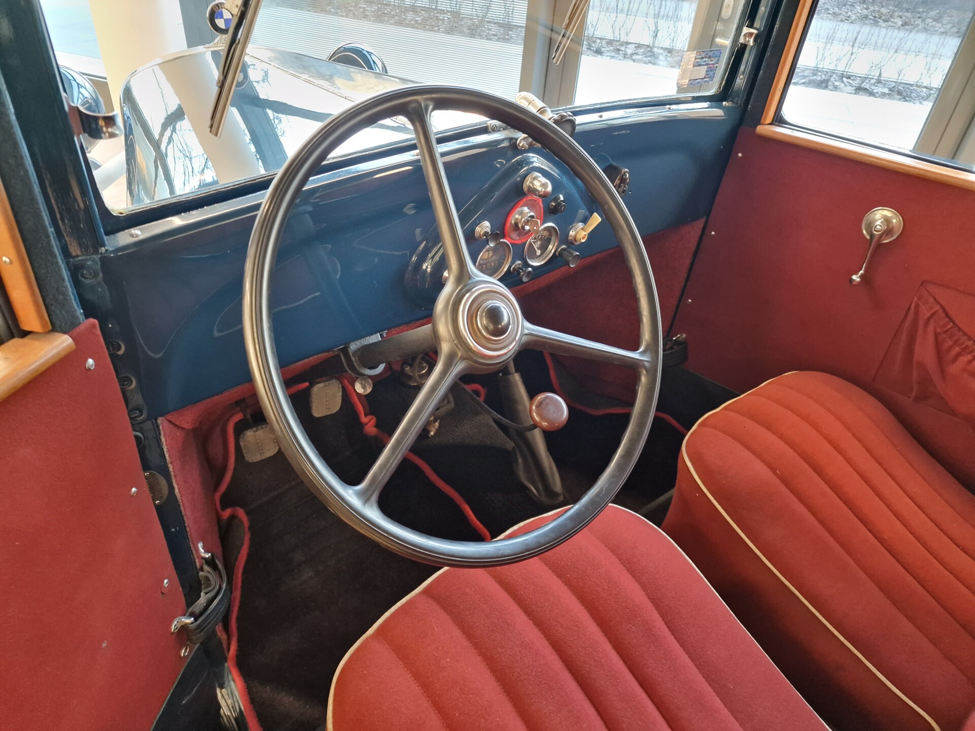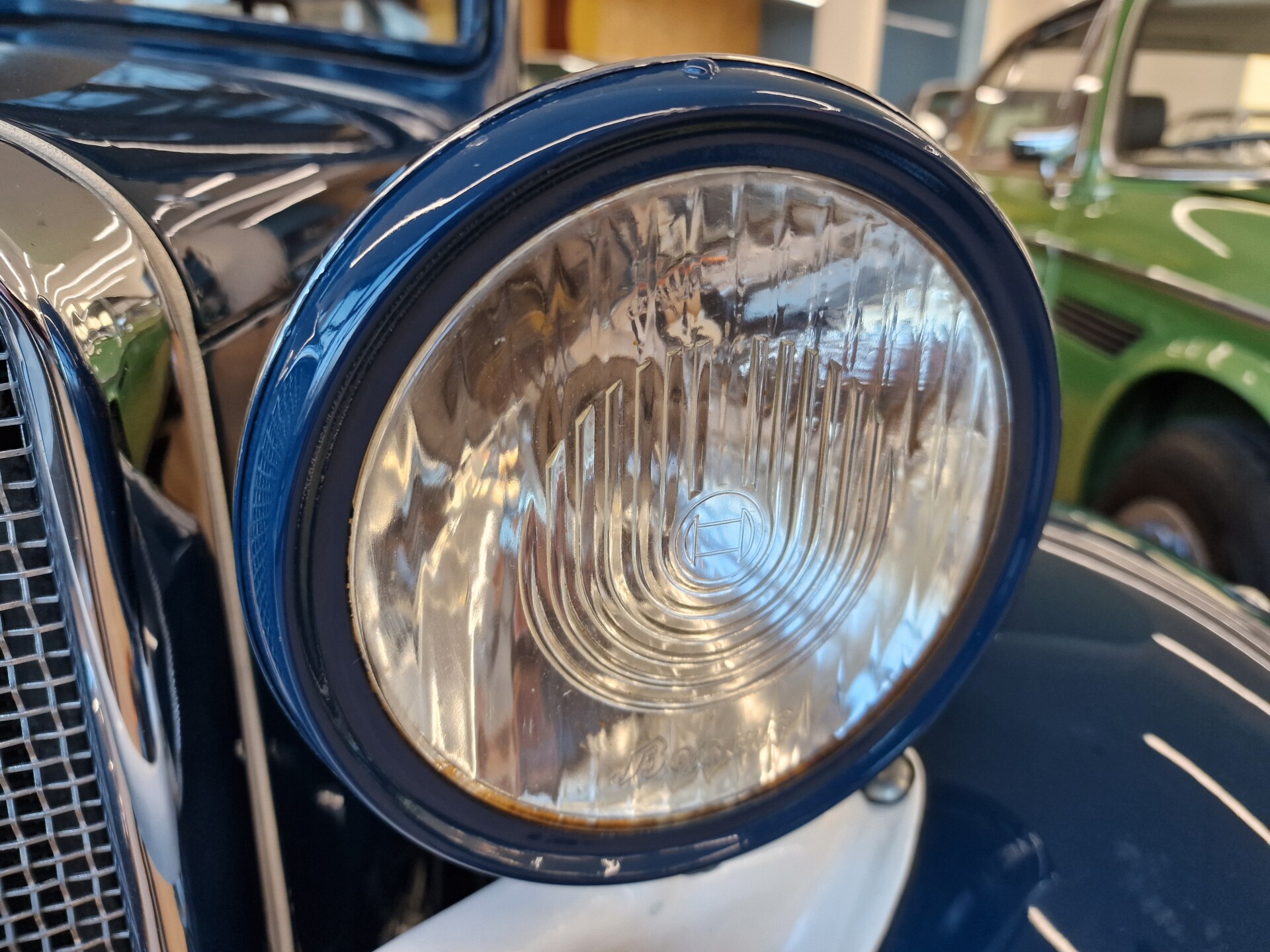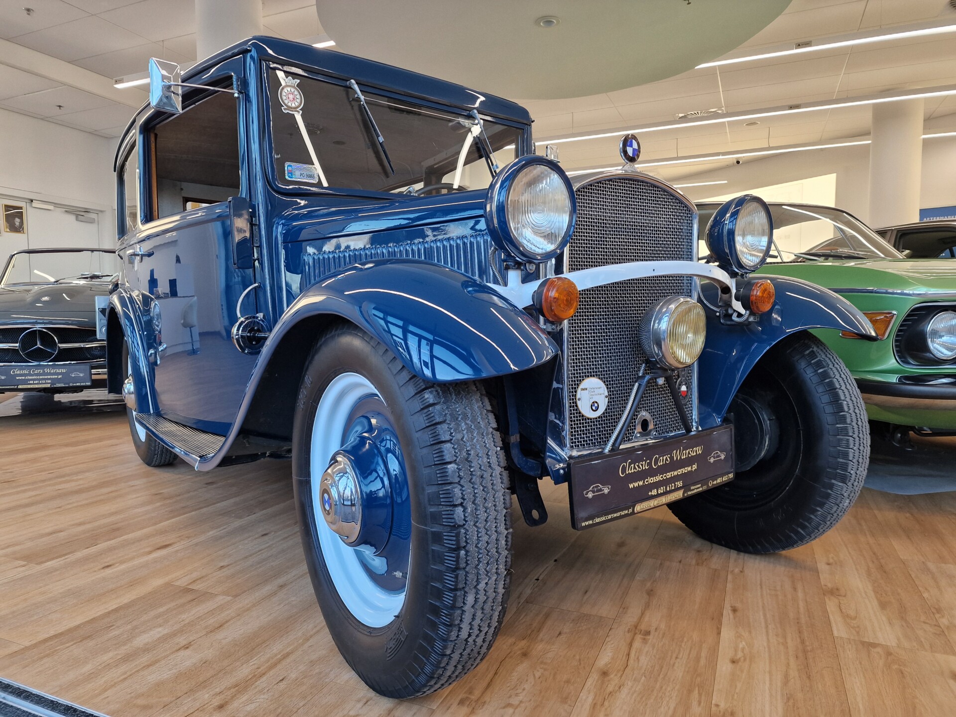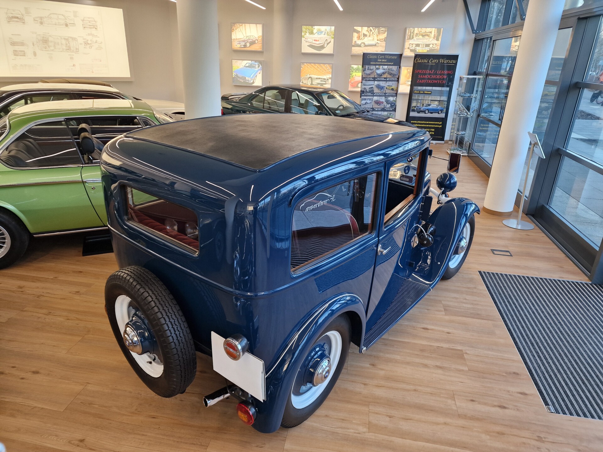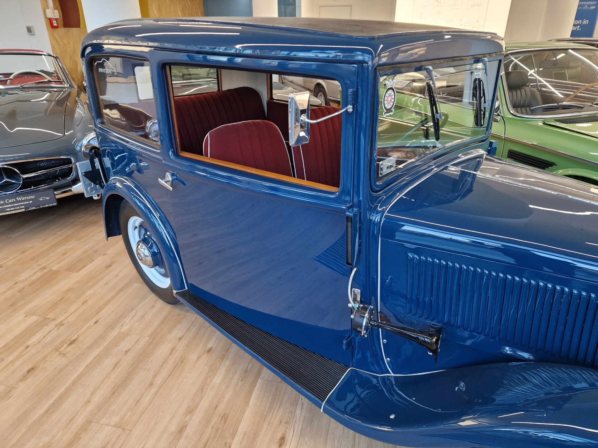 Opis: BMW 3/20 AM4 to pierwszy samochód wyprodukowany po wygaśnięciu licencji na Austina Seven. Budowa nadwozi została zlecona firmie Daimler- Benz. Z uwagi na tą nie prawdopodobną współpracę między dwoma rywalami powstała specjalna lina produkcyjna w Sindelfingen która produkowała nadwozia do modelu 3/20 które były potem uzbrajane w fabryce BMW w Eisenach. Głęboko unowocześniony silnik z modelu 3/15 rozwijał teraz 20 KM ale dalej znajdował się w trzeciej niemieckiej kategorii podatkowej stąd nazwa 3/15 a końcówka AM-4 znaczyła Automobil München. Nasz egzemplarz został wyprodukowany w 1934 roku i został dostarczony jako nowy do Koszalina. Wyprodukowano 7200 egzemplarzy modelu 3/20 w tym 5.055 wersji limousine.