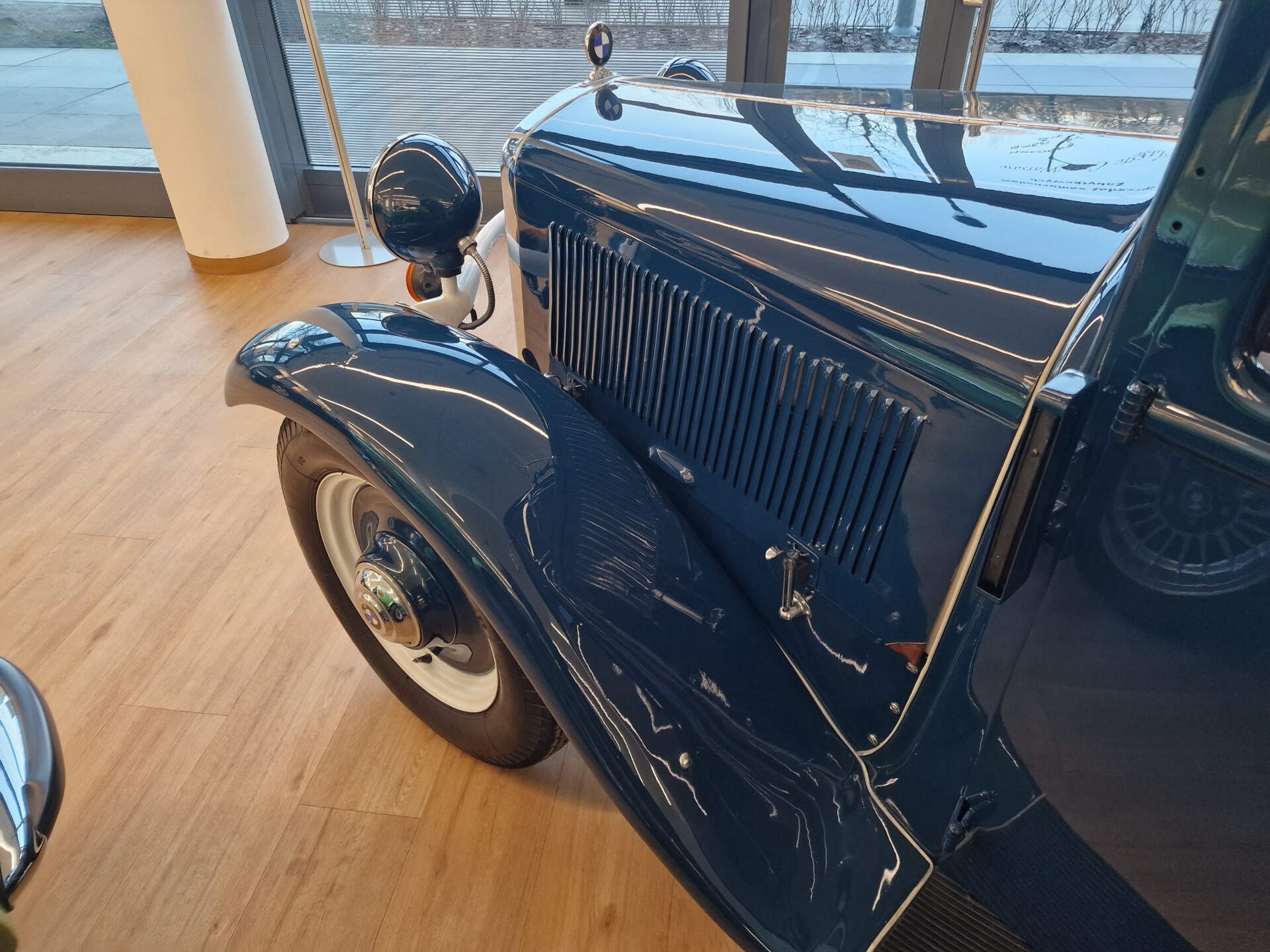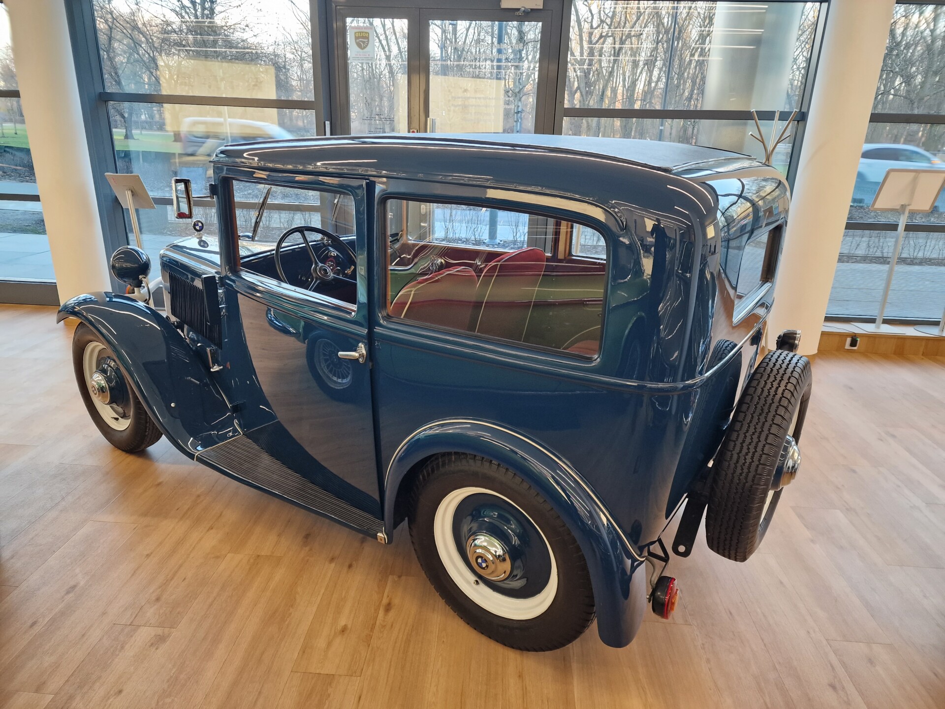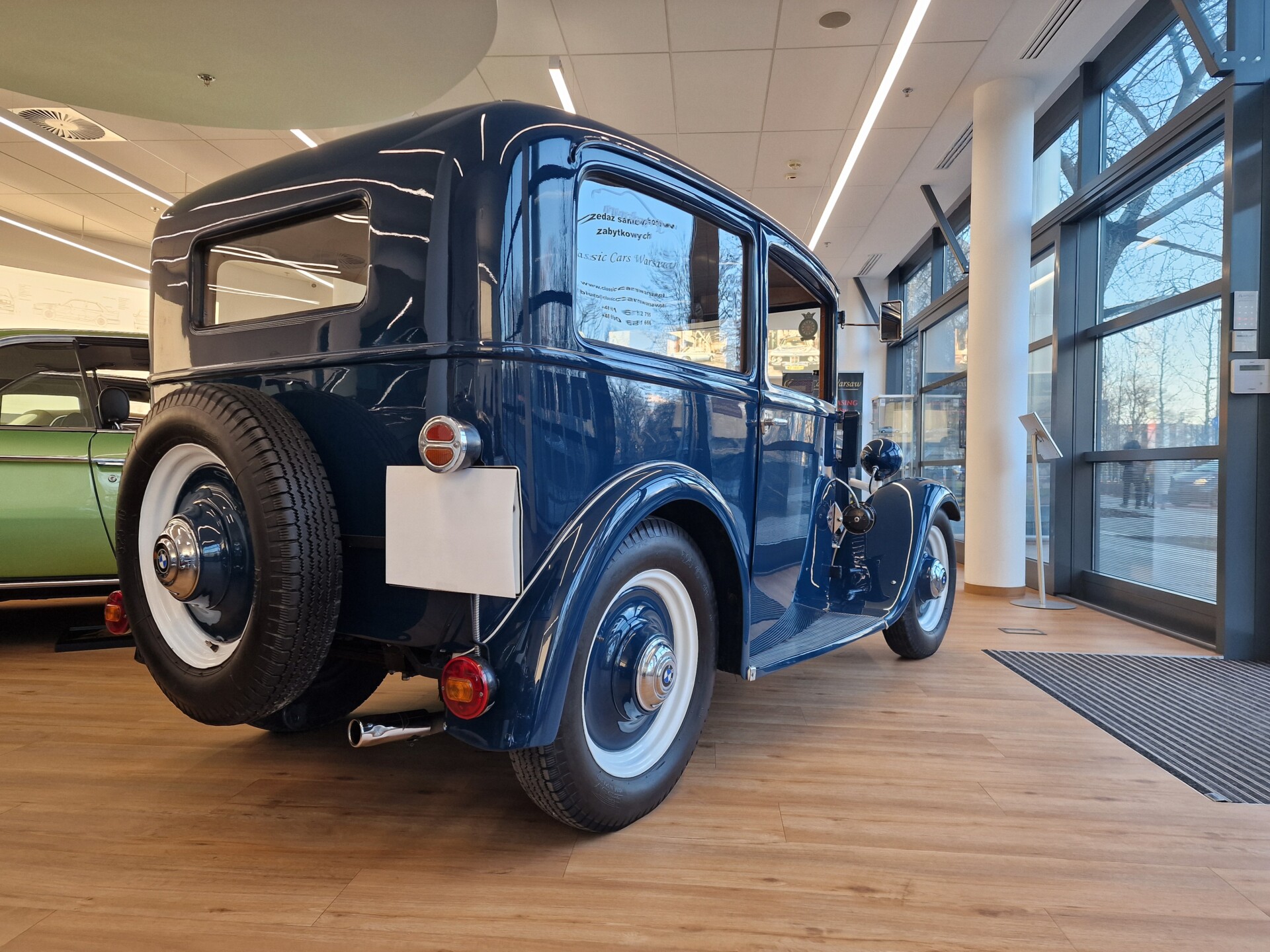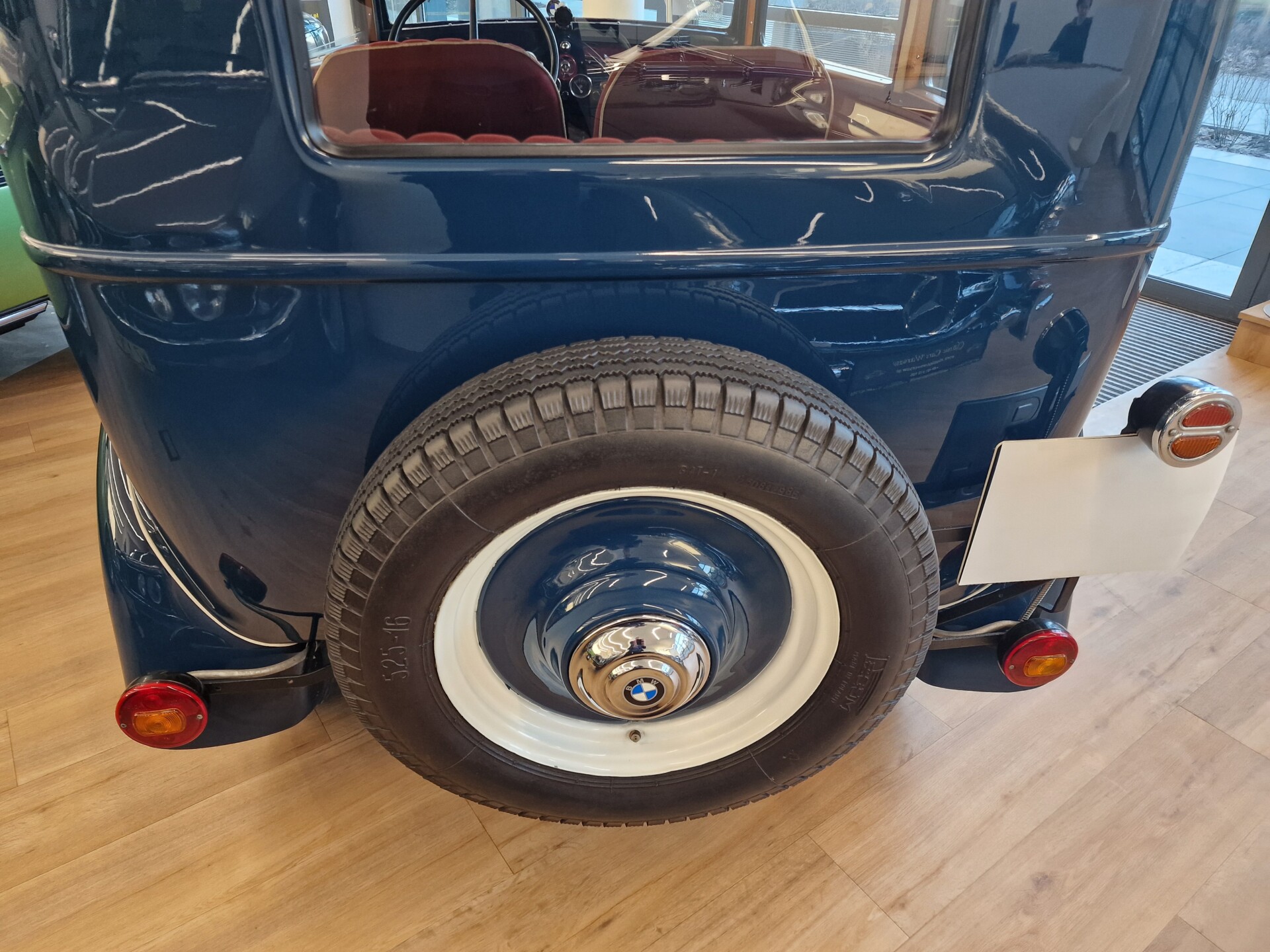 Opis: BMW 3/20 AM4 to pierwszy samochód wyprodukowany po wygaśnięciu licencji na Austina Seven. Budowa nadwozi została zlecona firmie Daimler- Benz. Z uwagi na tą nie prawdopodobną współpracę między dwoma rywalami powstała specjalna lina produkcyjna w Sindelfingen która produkowała nadwozia do modelu 3/20 które były potem uzbrajane w fabryce BMW w Eisenach. Głęboko unowocześniony silnik z modelu 3/15 rozwijał teraz 20 KM ale dalej znajdował się w trzeciej niemieckiej kategorii podatkowej stąd nazwa 3/15 a końcówka AM-4 znaczyła Automobil München. Nasz egzemplarz został wyprodukowany w 1934 roku i został dostarczony jako nowy do Koszalina. Wyprodukowano 7200 egzemplarzy modelu 3/20 w tym 5.055 wersji limousine.