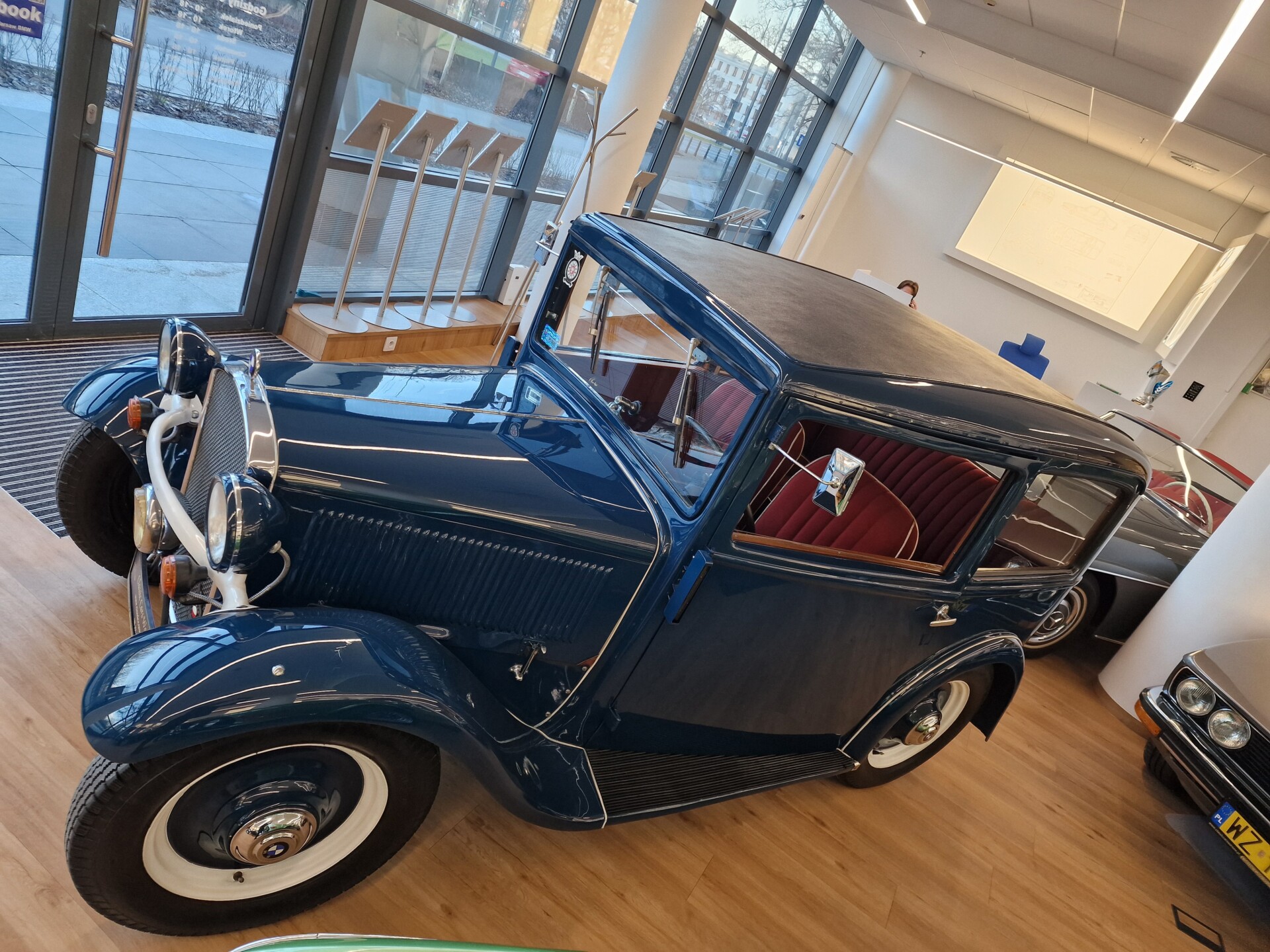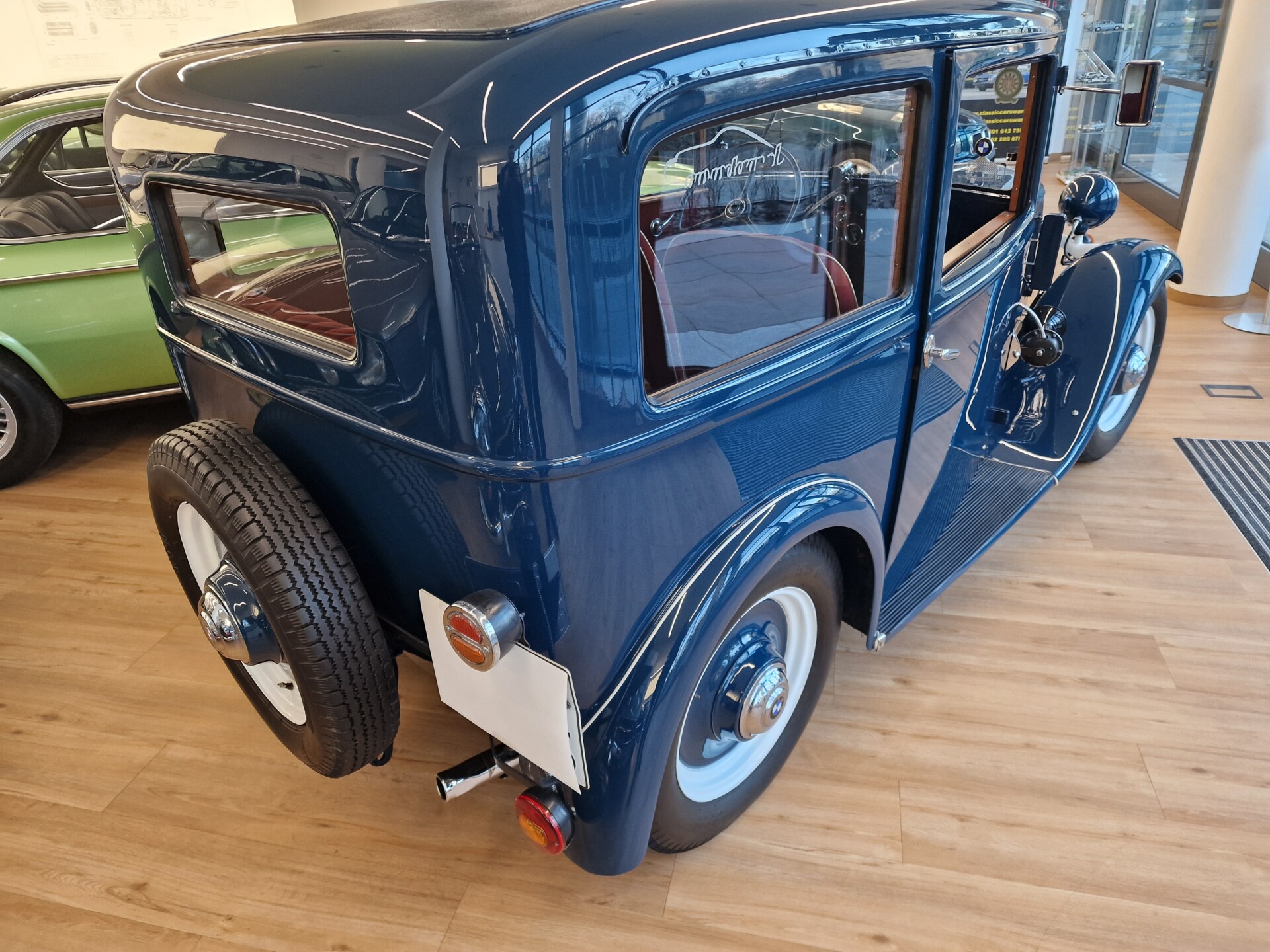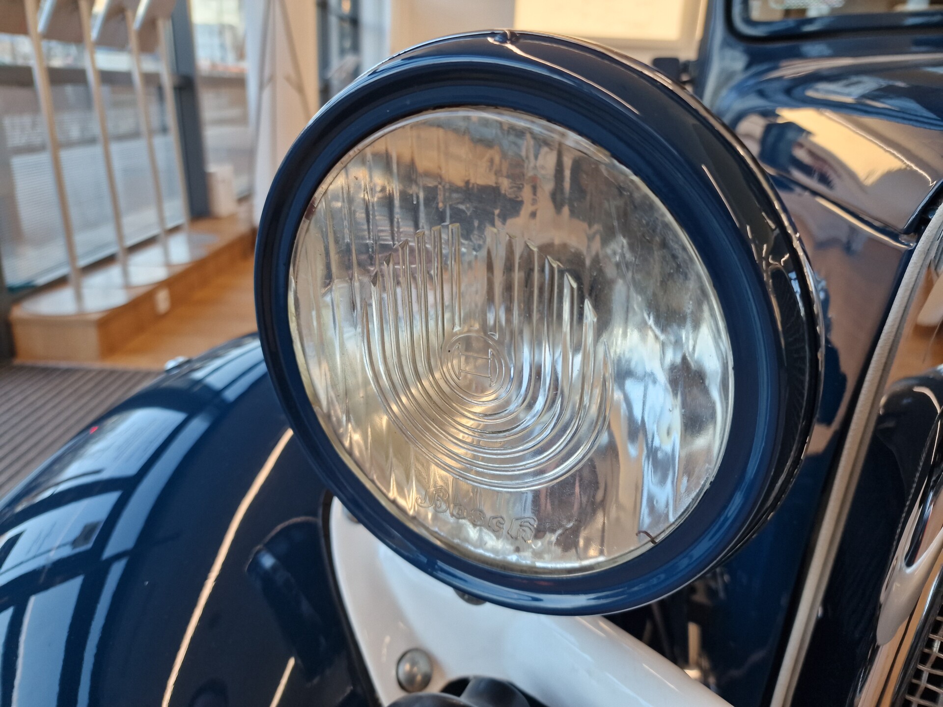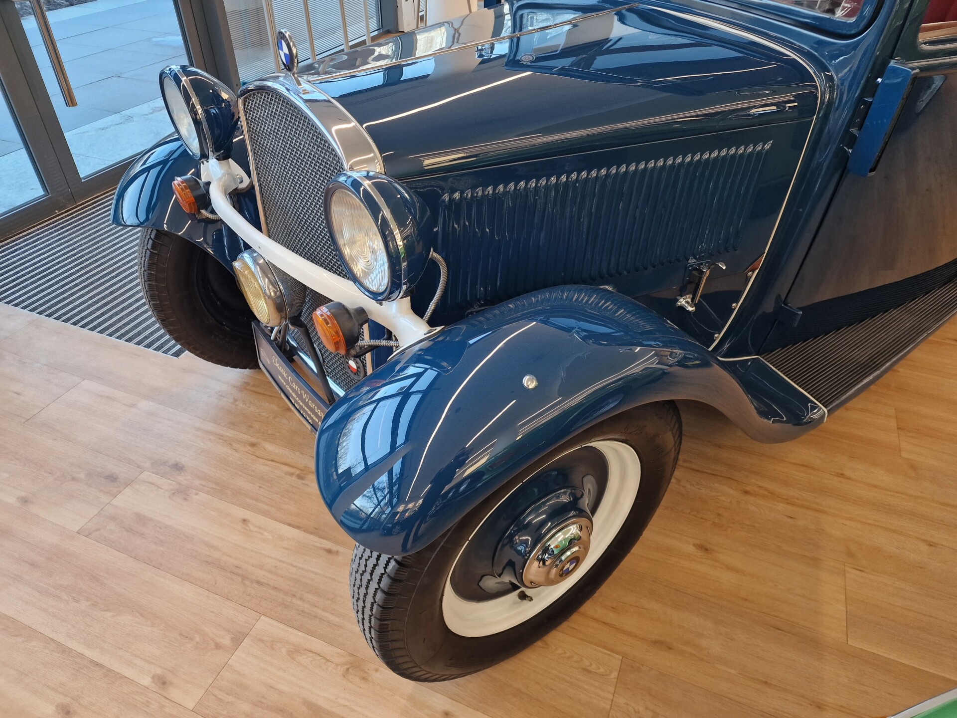Opis: BMW 3/20 AM4 to pierwszy samochód wyprodukowany po wygaśnięciu licencji na Austina Seven. Budowa nadwozi została zlecona firmie Daimler- Benz. Z uwagi na tą nie prawdopodobną współpracę między dwoma rywalami powstała specjalna lina produkcyjna w Sindelfingen która produkowała nadwozia do modelu 3/20 które były potem uzbrajane w fabryce BMW w Eisenach. Głęboko unowocześniony silnik z modelu 3/15 rozwijał teraz 20 KM ale dalej znajdował się w trzeciej niemieckiej kategorii podatkowej stąd nazwa 3/15 a końcówka AM-4 znaczyła Automobil München. Nasz egzemplarz został wyprodukowany w 1934 roku i został dostarczony jako nowy do Koszalina. Wyprodukowano 7200 egzemplarzy modelu 3/20 w tym 5.055 wersji limousine.