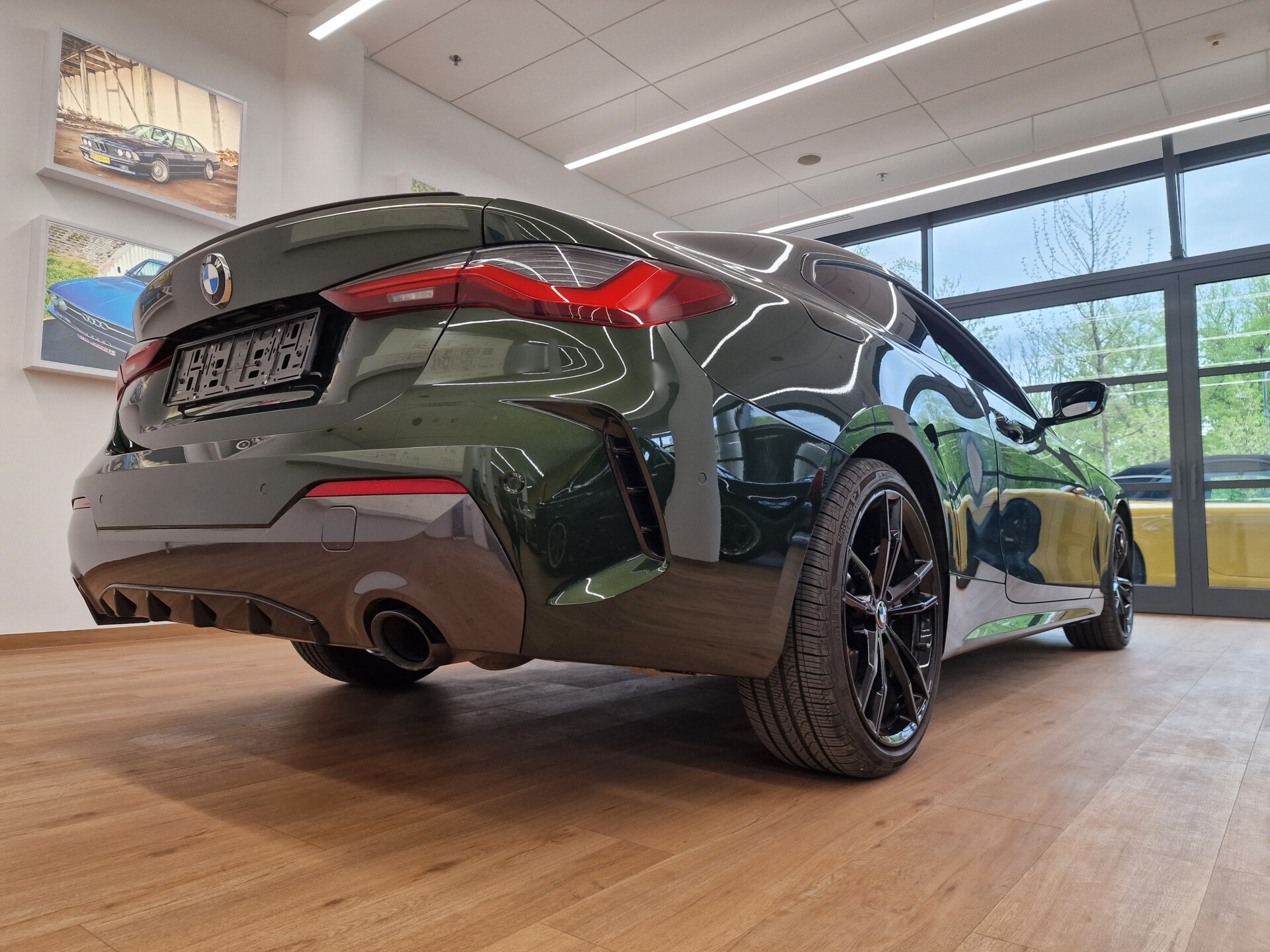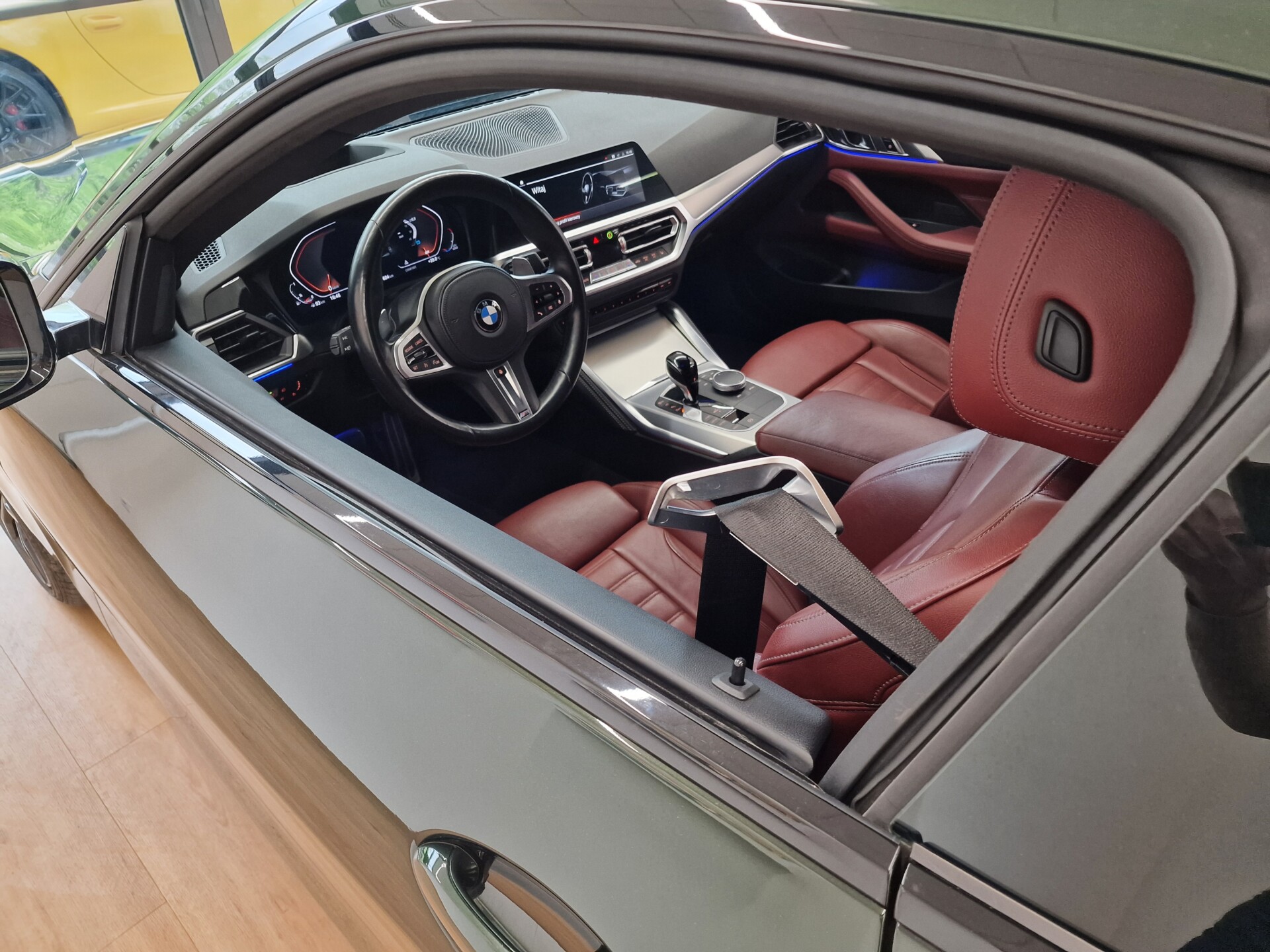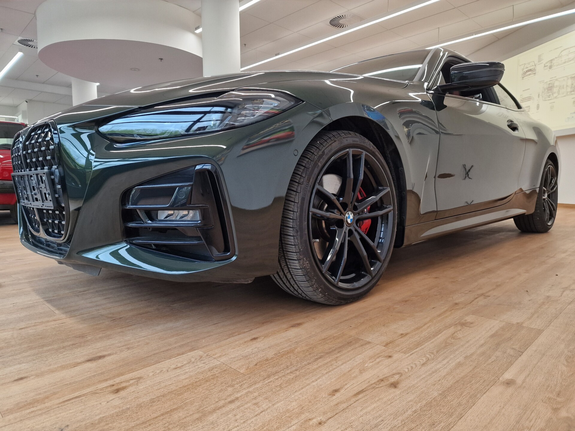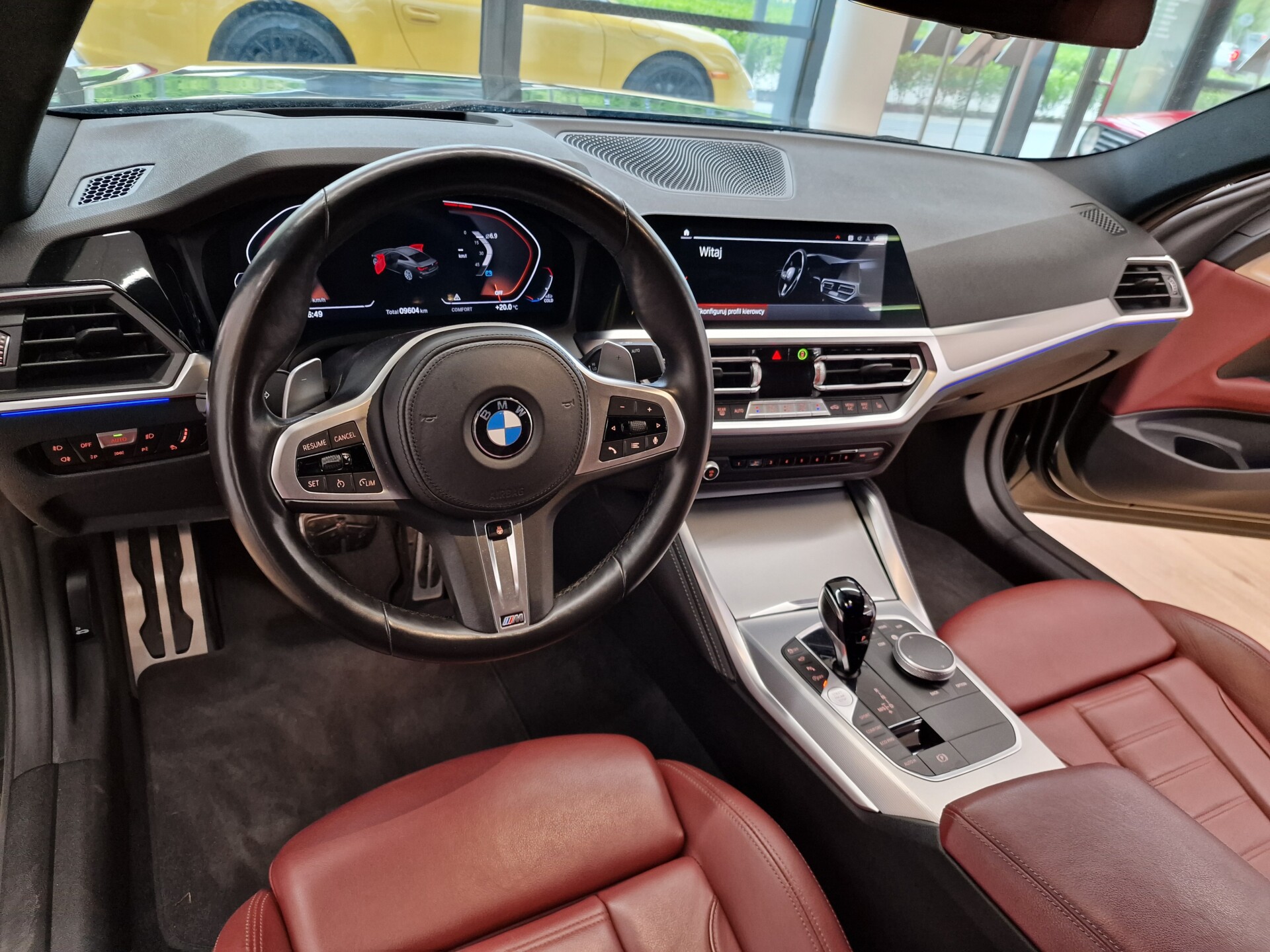 Piękne BMW Serii 4 Coupe z roku modelowego 2022 w wersji z jednostką napędową 430i xDrive. Przedstawiony model to 3 drzwiowe auto z nadwoziem typu coupe, wyposażone w silnik benzynowy dostarczający moc rzędu 258 KM. Samochód wyposażony jest w 8 biegową automatyczną skrzynię biegów.