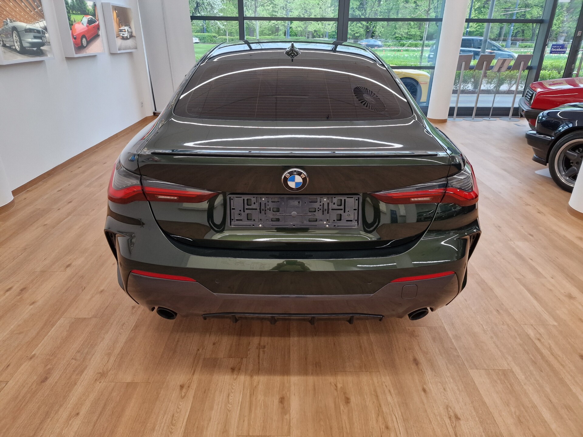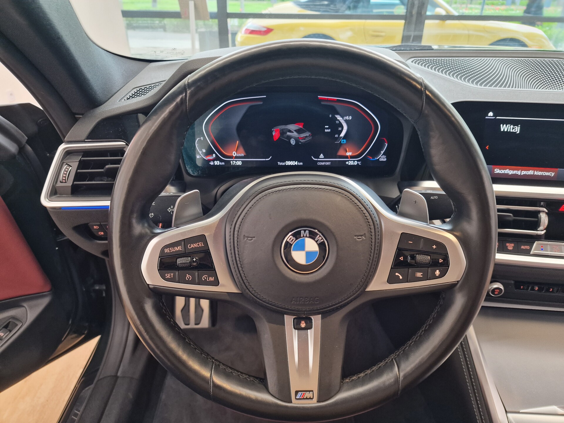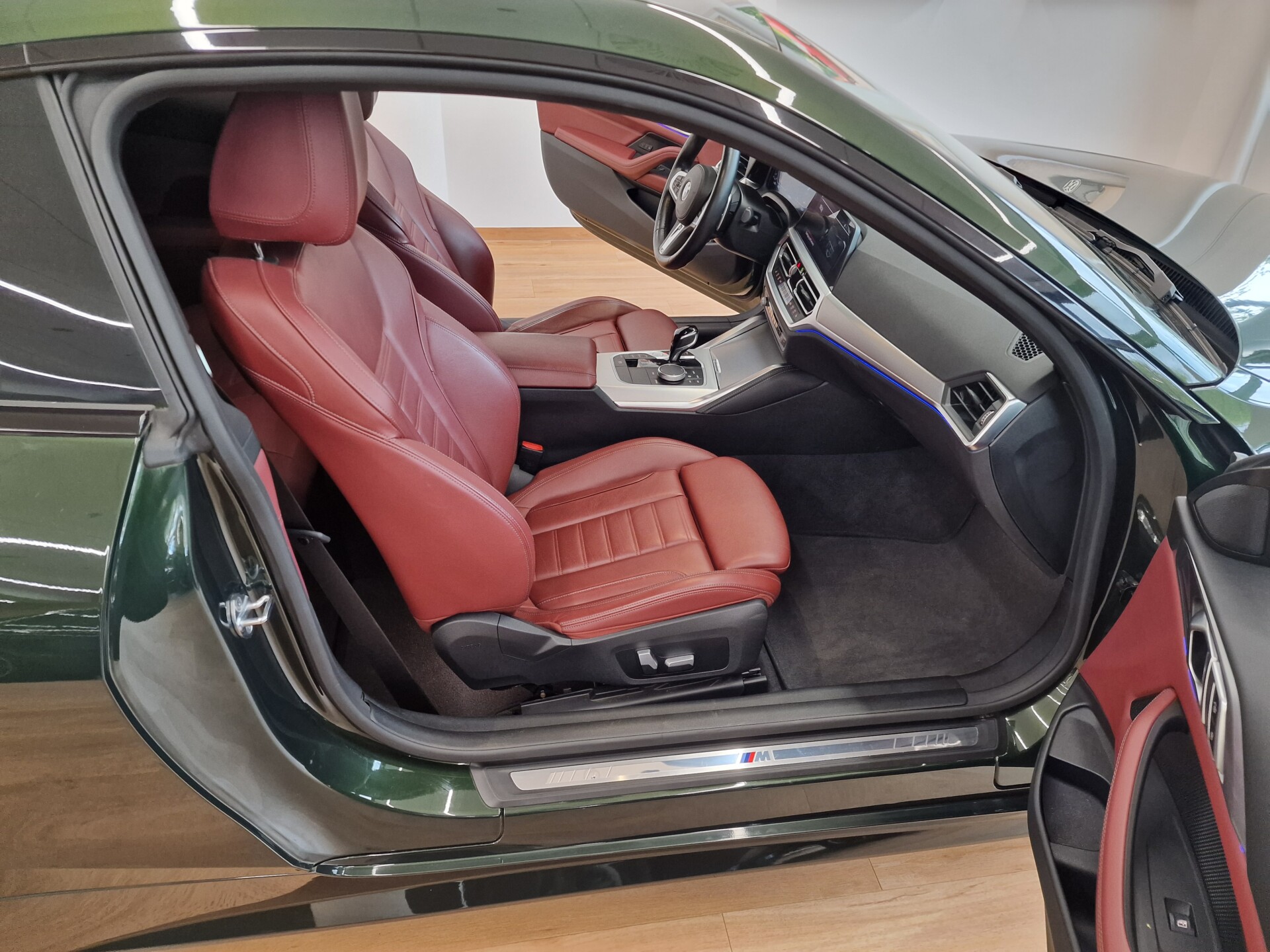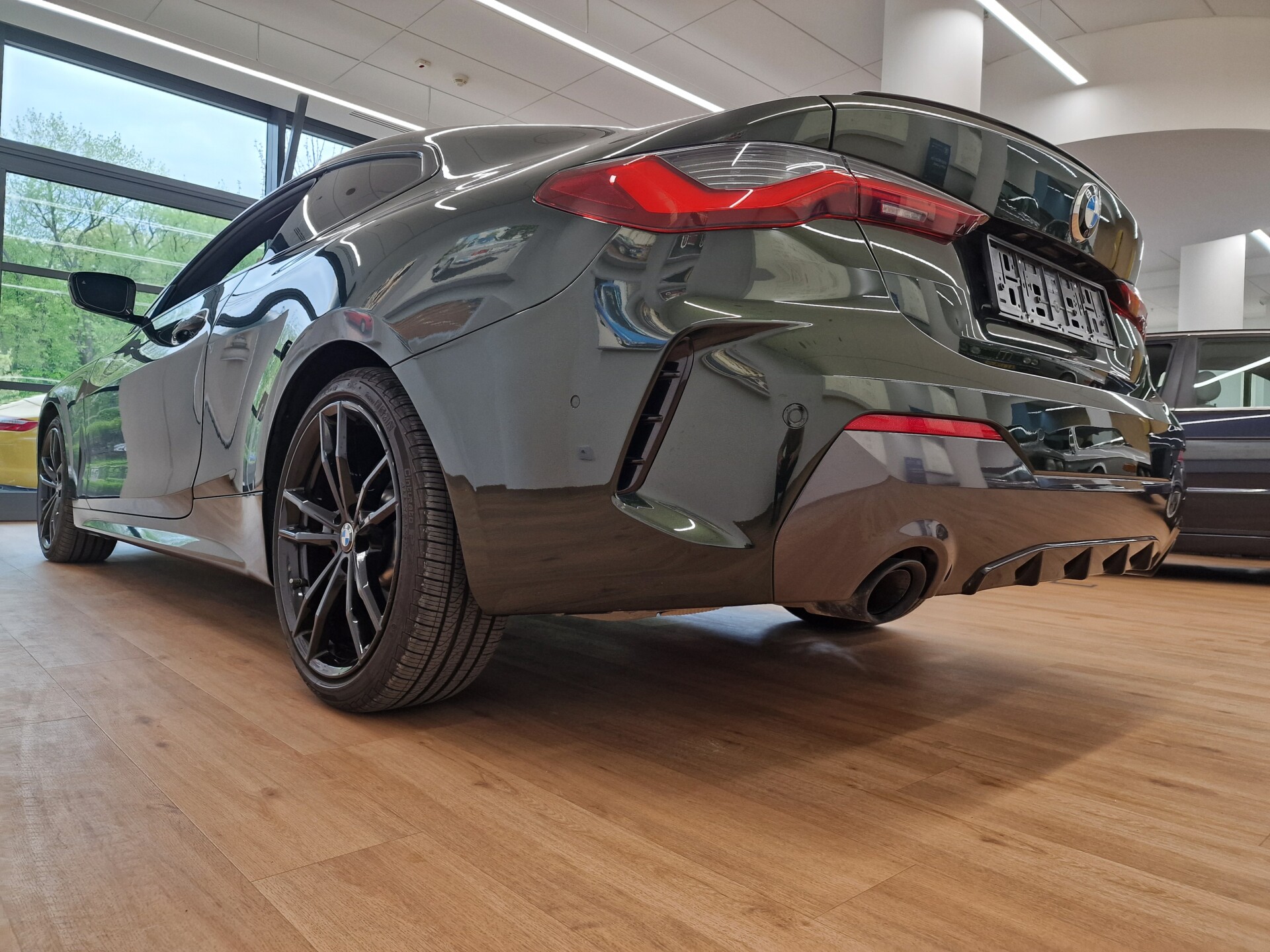 Piękne BMW Serii 4 Coupe z roku modelowego 2022 w wersji z jednostką napędową 430i xDrive. Przedstawiony model to 3 drzwiowe auto z nadwoziem typu coupe, wyposażone w silnik benzynowy dostarczający moc rzędu 258 KM. Samochód wyposażony jest w 8 biegową automatyczną skrzynię biegów.