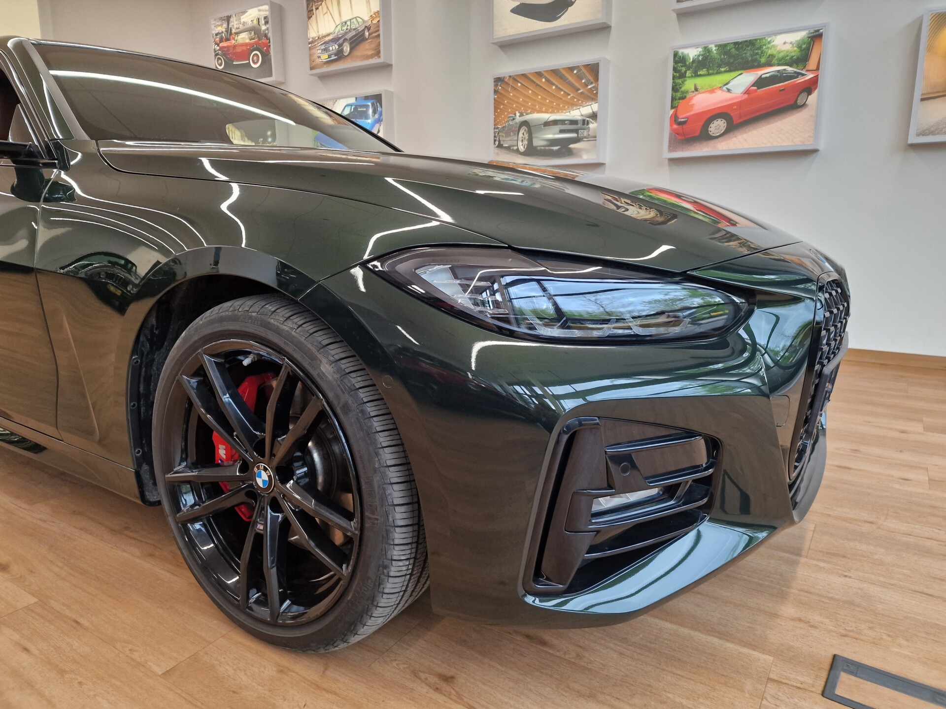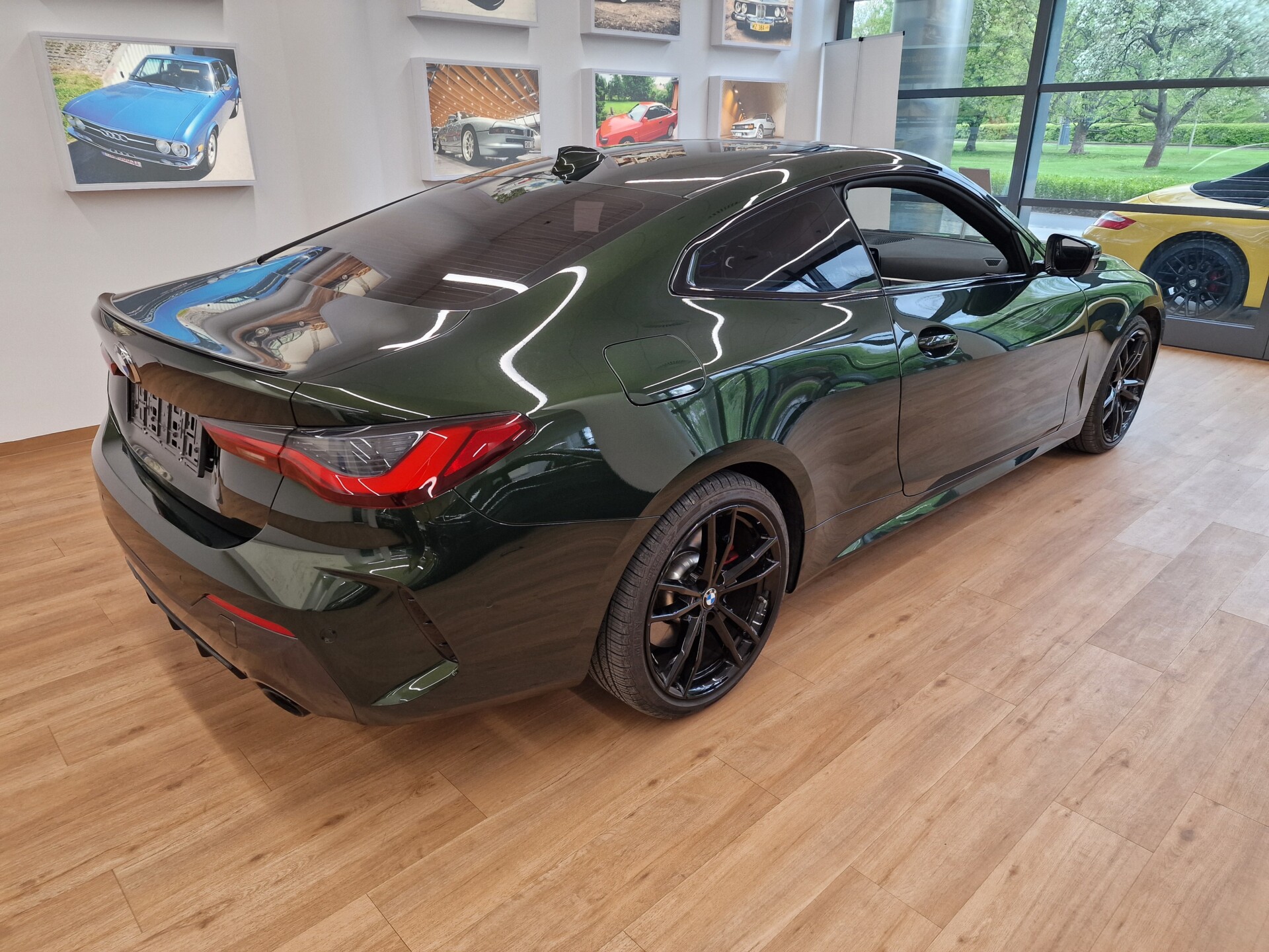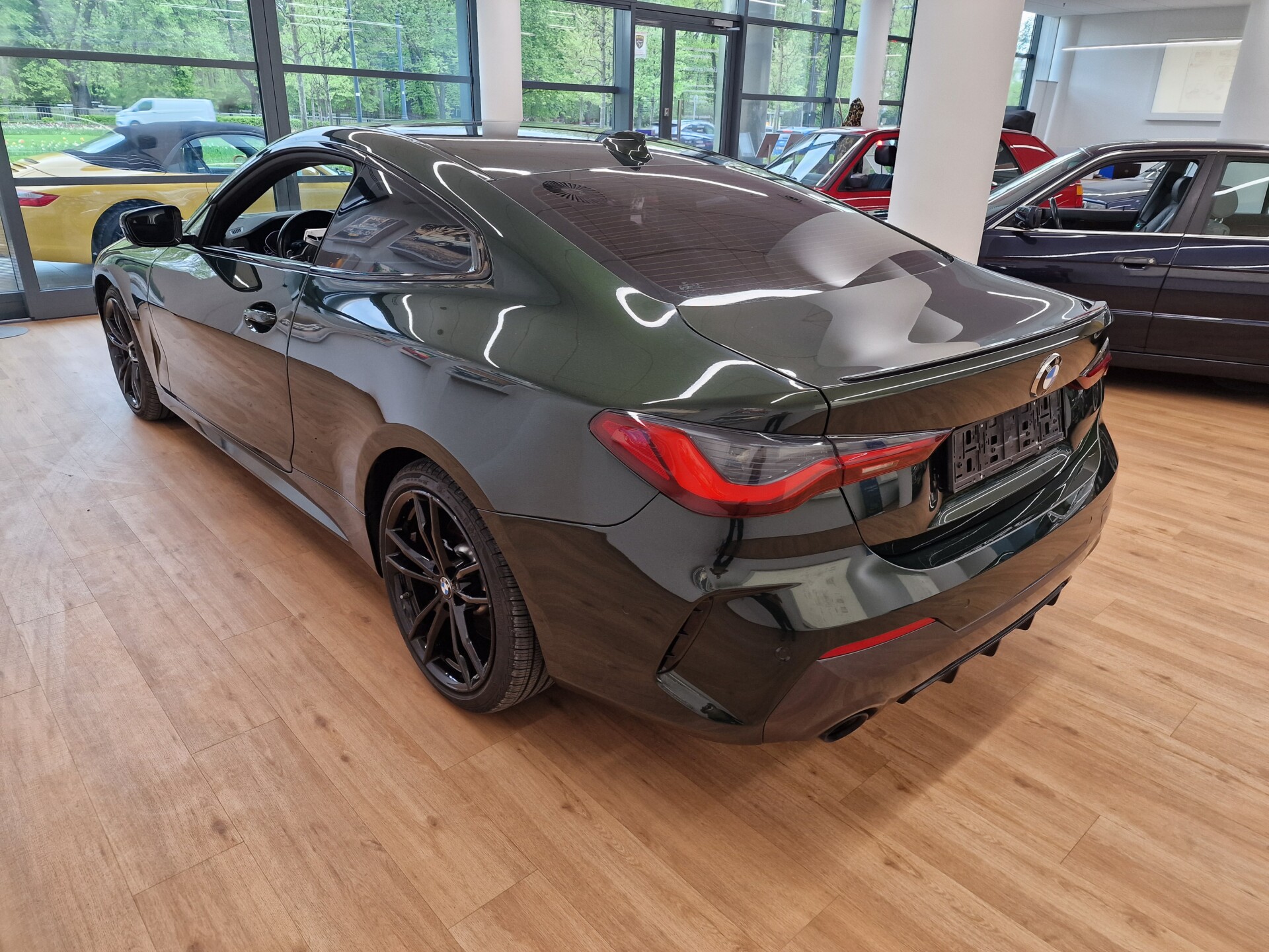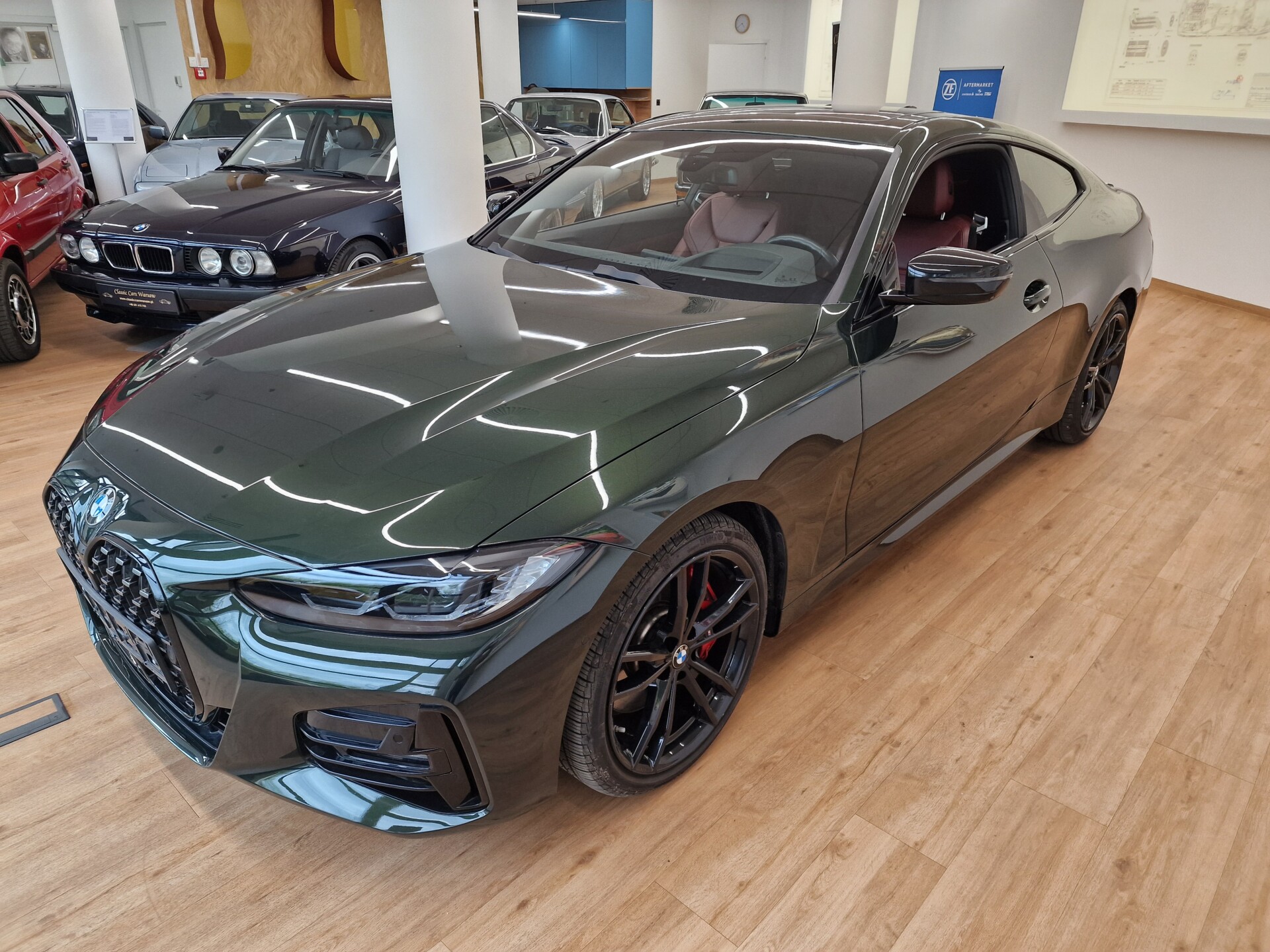 Piękne BMW Serii 4 Coupe z roku modelowego 2022 w wersji z jednostką napędową 430i xDrive. Przedstawiony model to 3 drzwiowe auto z nadwoziem typu coupe, wyposażone w silnik benzynowy dostarczający moc rzędu 258 KM. Samochód wyposażony jest w 8 biegową automatyczną skrzynię biegów.
