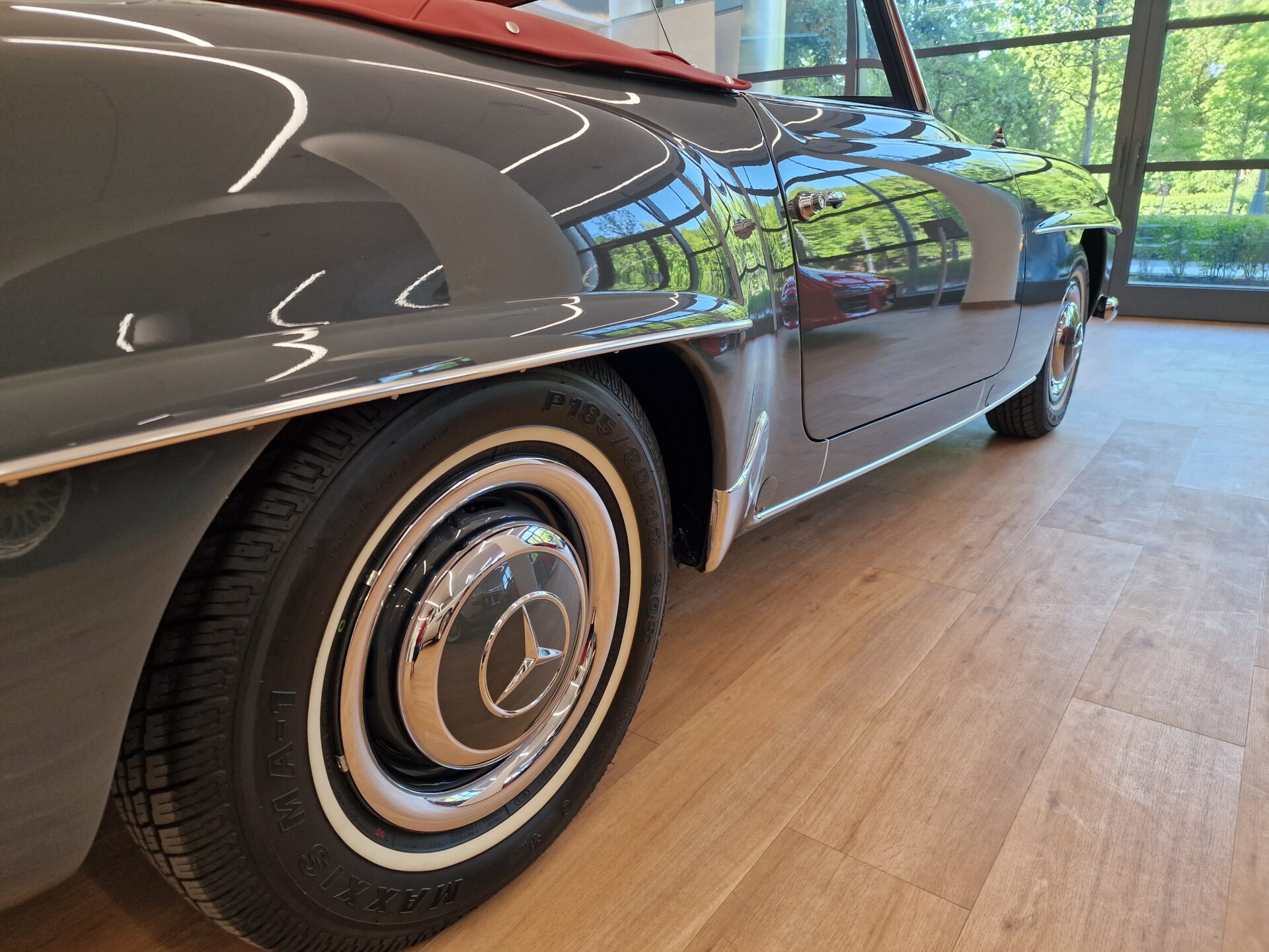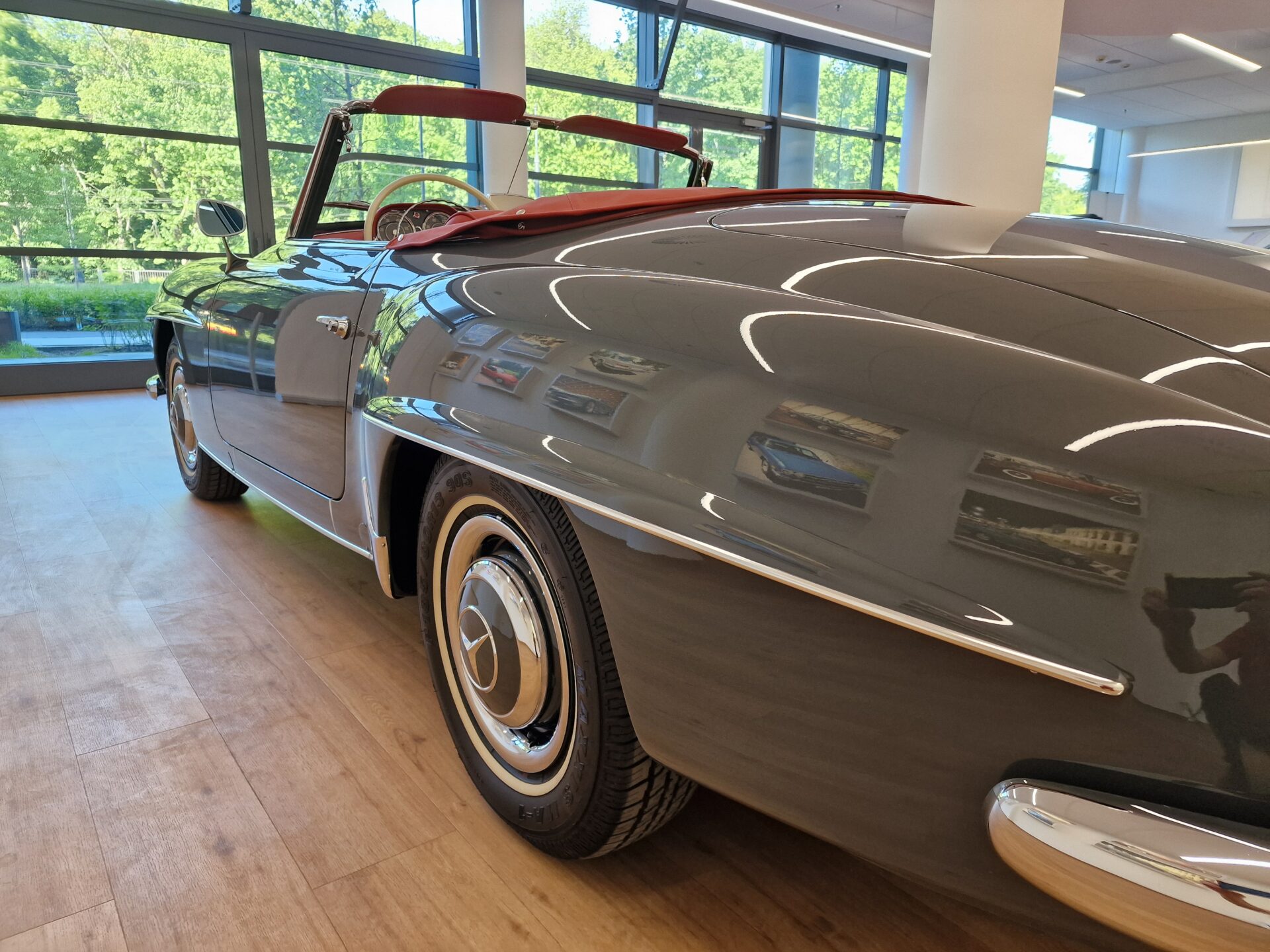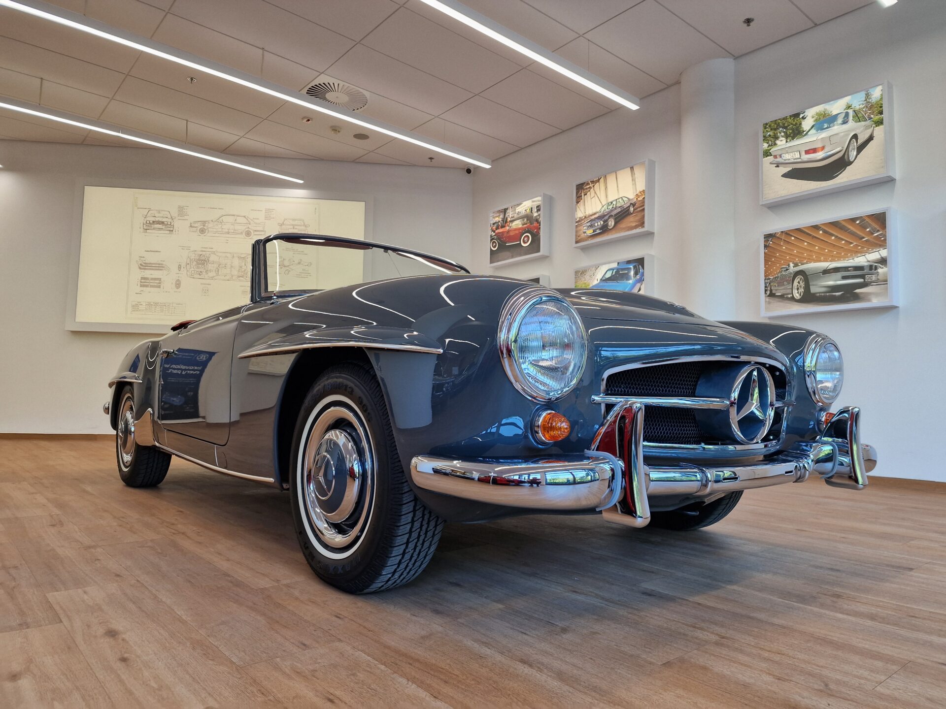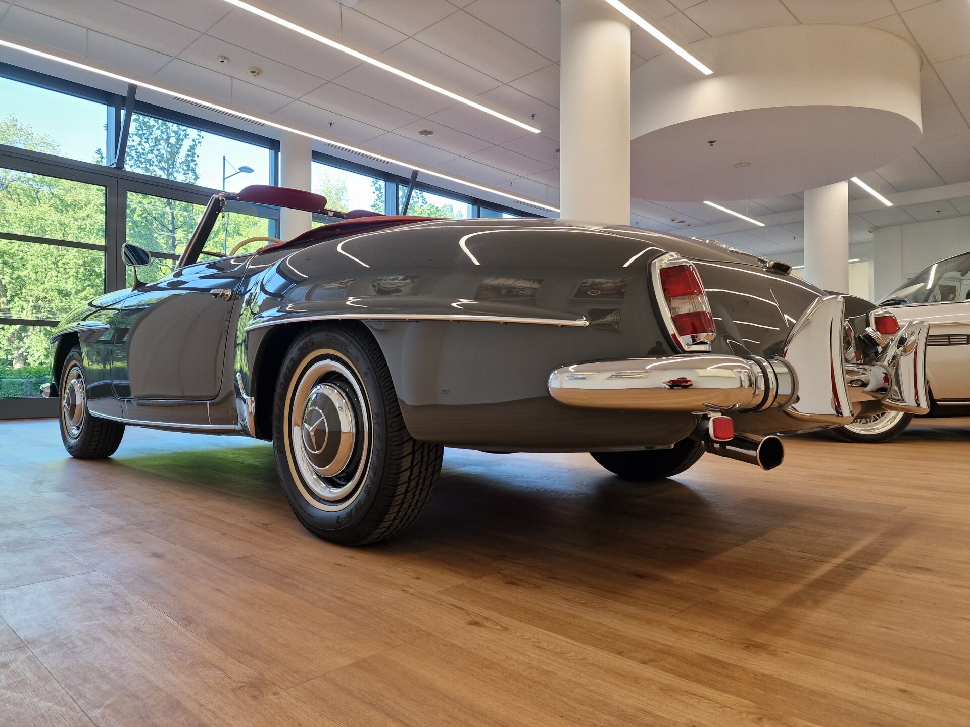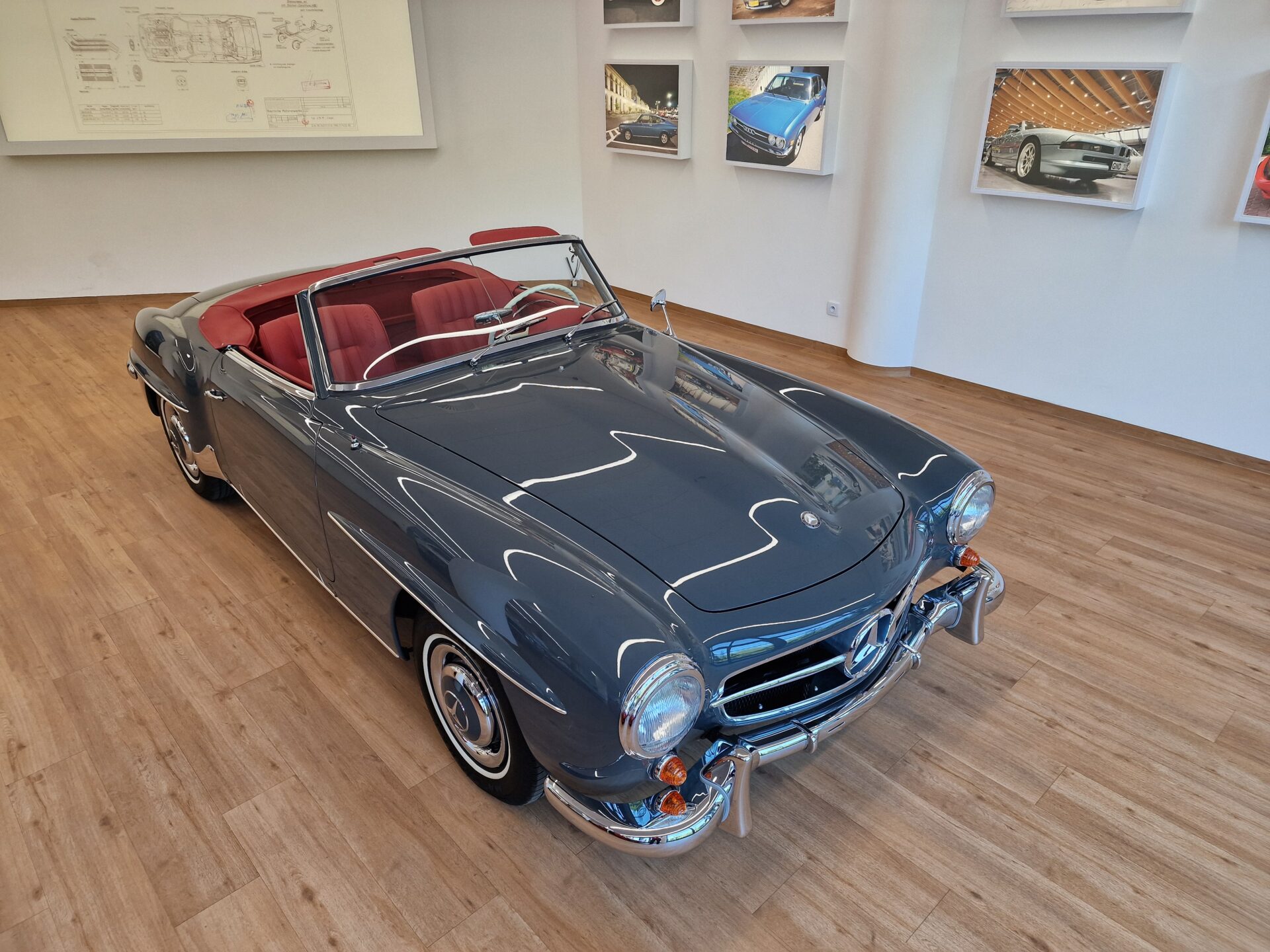 190 SL W121 zapisał się w historii jako jeden z najbardziej pożądanych modeli Mercedes-Benz. Jeździli nim m.in. Grace Kelly i Alfred Hitchcock. Można powiedzieć, że był prawdziwą gwiazdą, bo zyskał rolę w niejednej produkcji filmowej. Jego premiera miała miejsce w 1954 roku wraz z Mercedesem 300 SL zwanym “Gullwingiem” podczas Międzynarodowego Salonu Sportów Motorowych w Nowym Jorku. Rok później w zakładzie w Sindelfingen rozpoczęto produkcję tego sportowego samochodu z czterocylindrowym silnikiem. Opracowany był na podstawie trzybryłowego Mercedesa serii W120, ale produkowany był od początku jako roadster. Otrzymał nadwozie zaprojektowane przez Karla Wilferta i Waltera Häckera, którzy wzorowali się na 300 SL. Ten dwumiejscowy kabriolet posiadał składany miękki dach, a później, opcjonalnie, dostępny był także z hardtopem. Mały sportowy roadster Mercedes-Benz 190 SL W121 obecnie jest jednym z najpopularniejszych wyborów wśród kolekcjonerów samochodów zabytkowych. Jego stylistyka czaruje, podobieństwo do większego brata 300 SL jest uderzające.