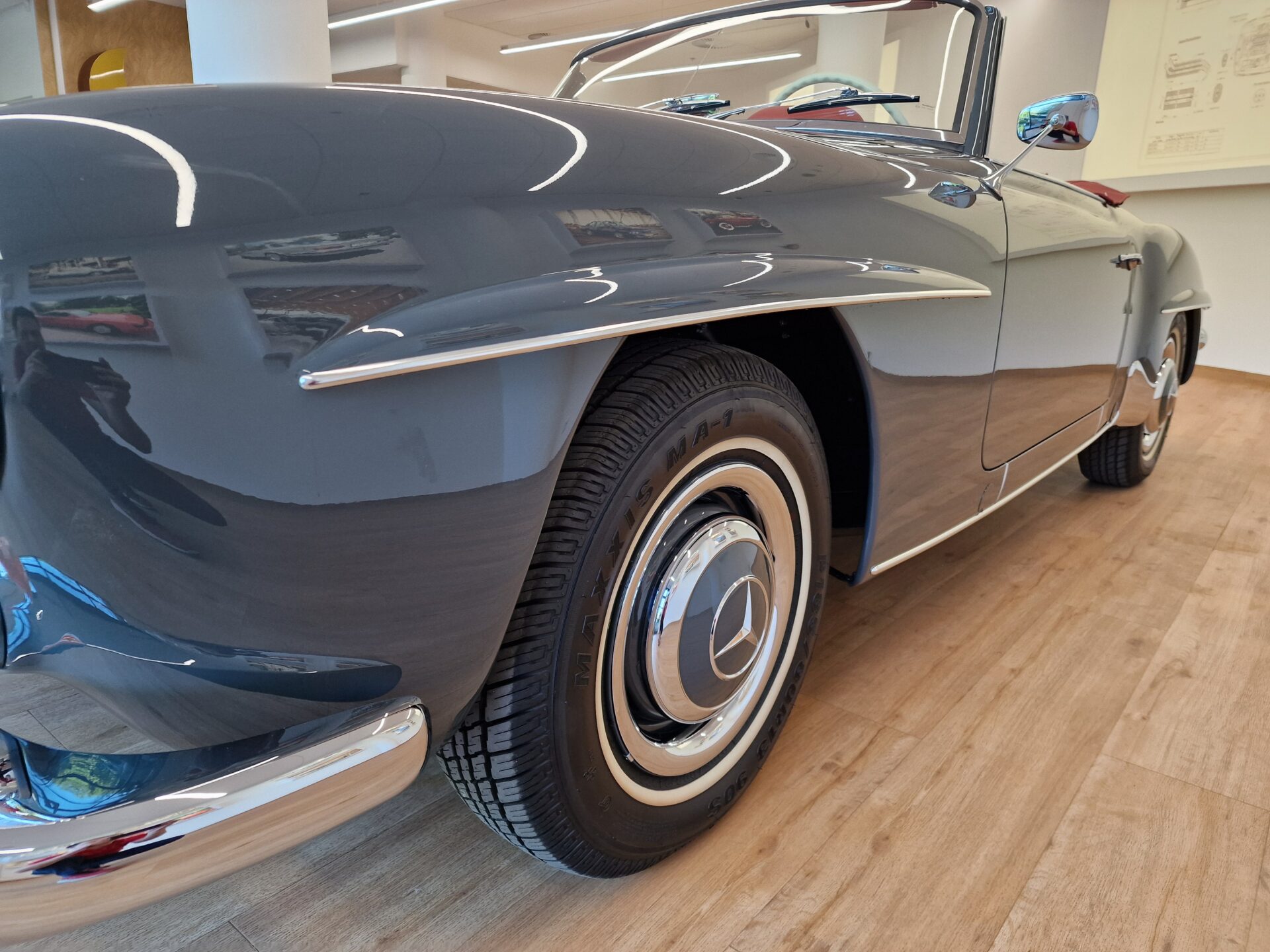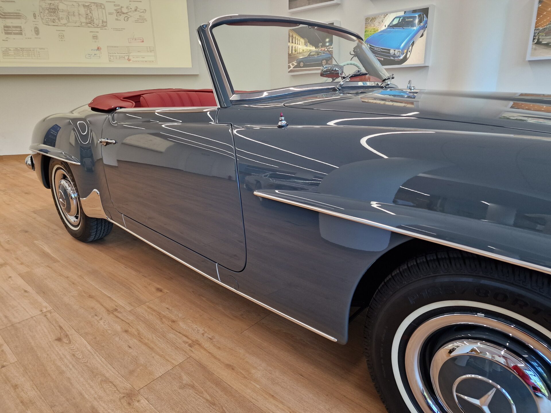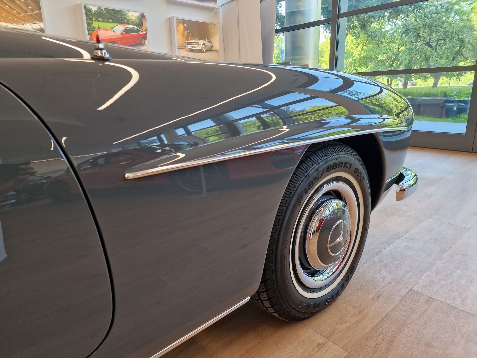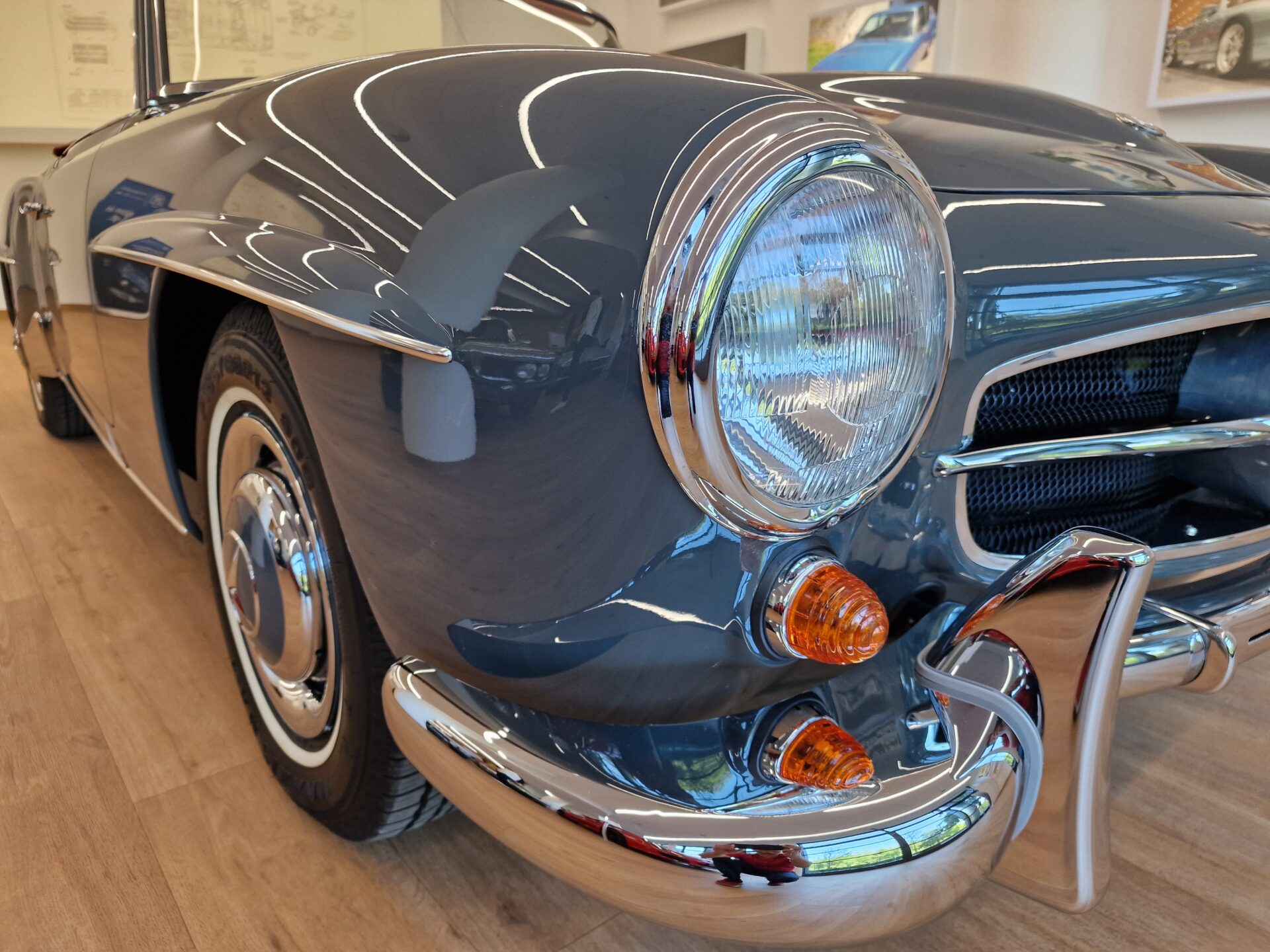 190 SL W121 zapisał się w historii jako jeden z najbardziej pożądanych modeli Mercedes-Benz. Jeździli nim m.in. Grace Kelly i Alfred Hitchcock. Można powiedzieć, że był prawdziwą gwiazdą, bo zyskał rolę w niejednej produkcji filmowej. Jego premiera miała miejsce w 1954 roku wraz z Mercedesem 300 SL zwanym “Gullwingiem” podczas Międzynarodowego Salonu Sportów Motorowych w Nowym Jorku. Rok później w zakładzie w Sindelfingen rozpoczęto produkcję tego sportowego samochodu z czterocylindrowym silnikiem. Opracowany był na podstawie trzybryłowego Mercedesa serii W120, ale produkowany był od początku jako roadster. Otrzymał nadwozie zaprojektowane przez Karla Wilferta i Waltera Häckera, którzy wzorowali się na 300 SL. Ten dwumiejscowy kabriolet posiadał składany miękki dach, a później, opcjonalnie, dostępny był także z hardtopem. Mały sportowy roadster Mercedes-Benz 190 SL W121 obecnie jest jednym z najpopularniejszych wyborów wśród kolekcjonerów samochodów zabytkowych. Jego stylistyka czaruje, podobieństwo do większego brata 300 SL jest uderzające.