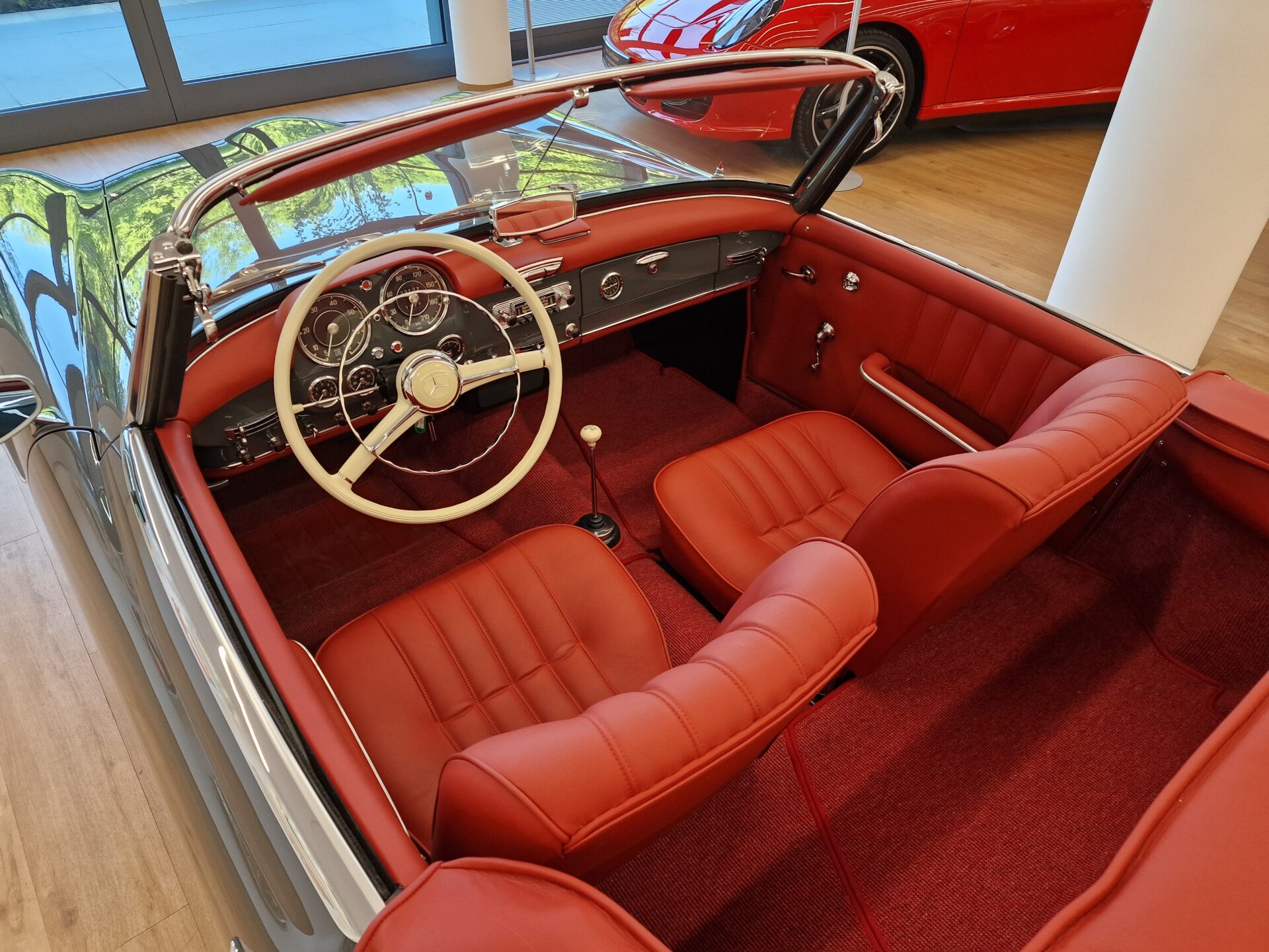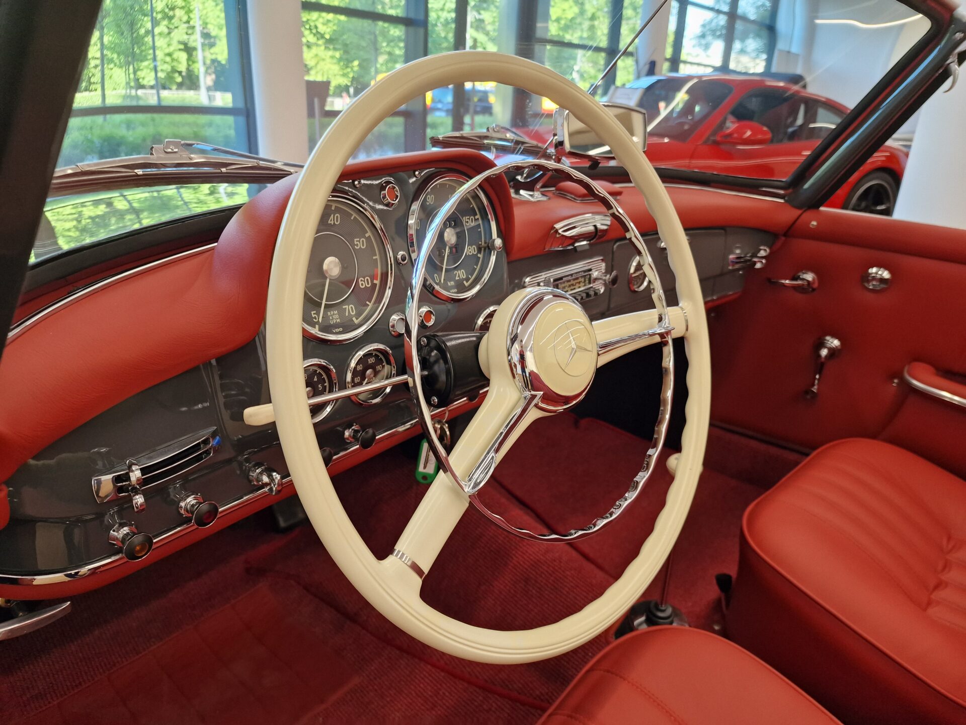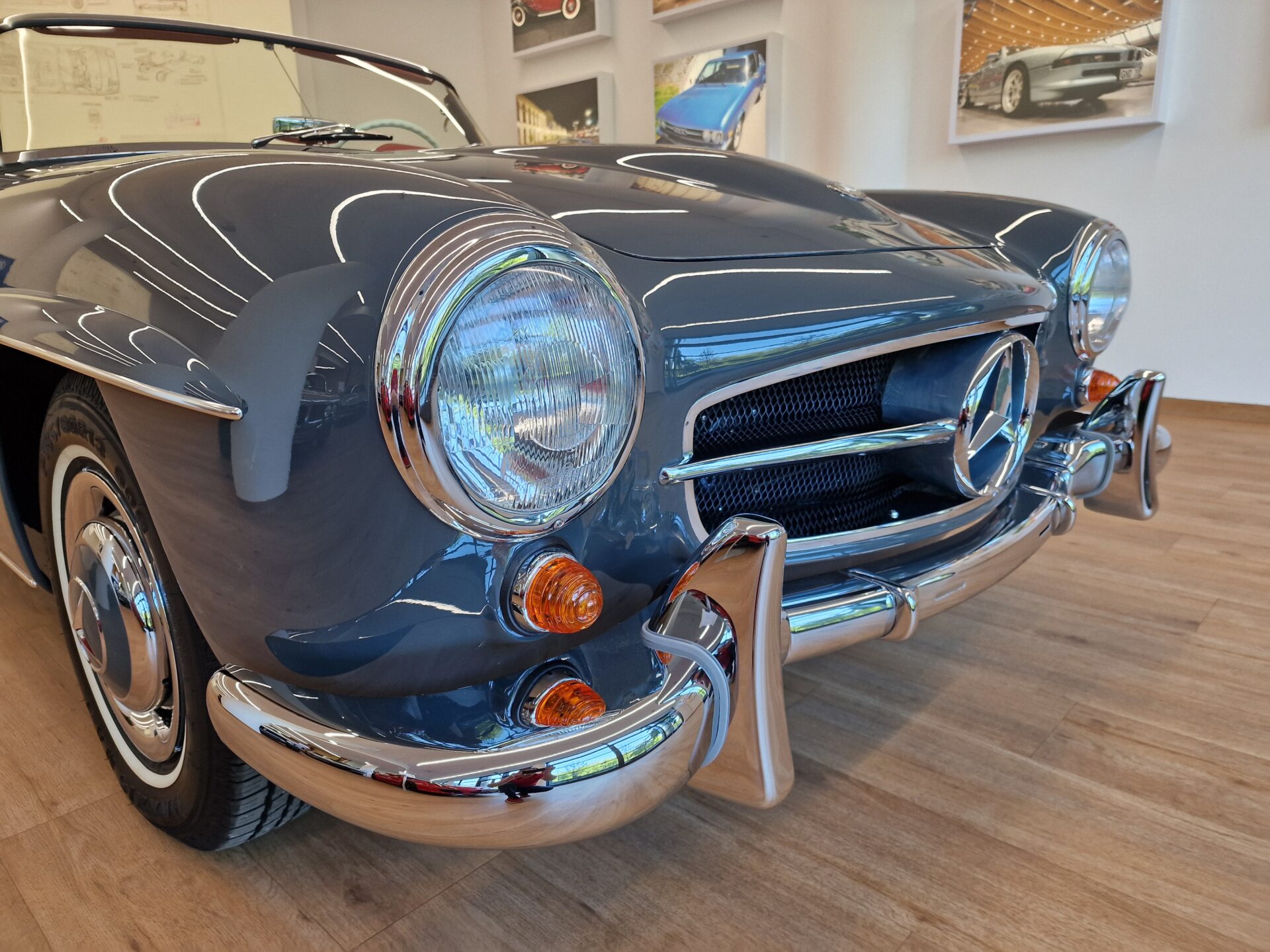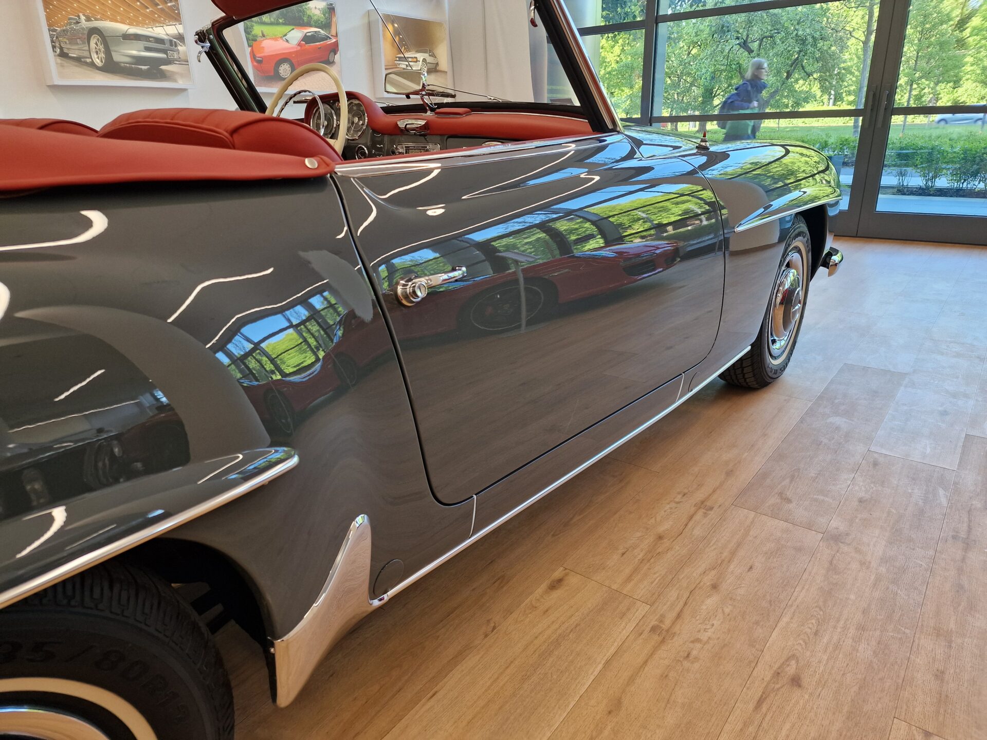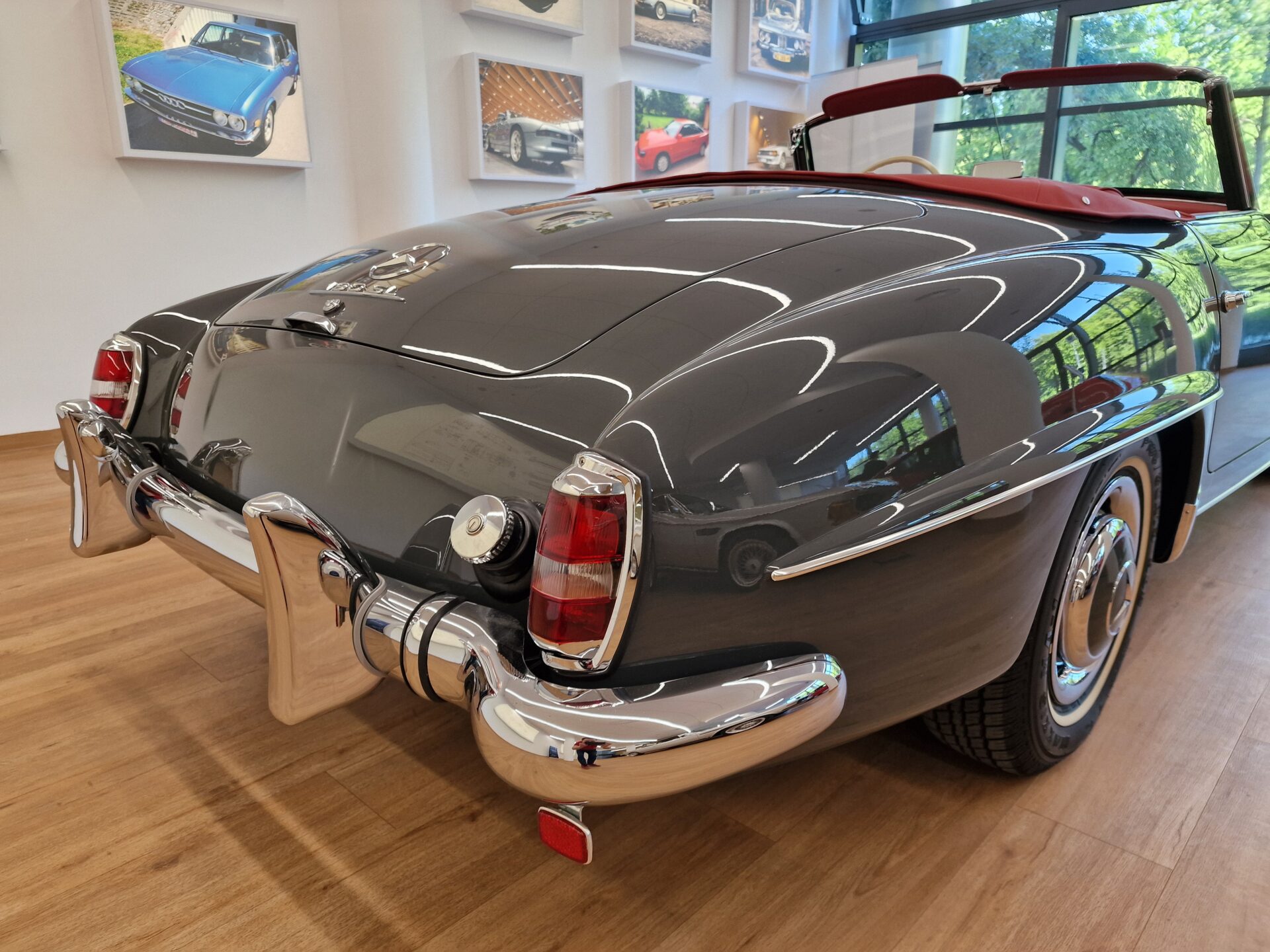 190 SL W121 zapisał się w historii jako jeden z najbardziej pożądanych modeli Mercedes-Benz. Jeździli nim m.in. Grace Kelly i Alfred Hitchcock. Można powiedzieć, że był prawdziwą gwiazdą, bo zyskał rolę w niejednej produkcji filmowej. Jego premiera miała miejsce w 1954 roku wraz z Mercedesem 300 SL zwanym “Gullwingiem” podczas Międzynarodowego Salonu Sportów Motorowych w Nowym Jorku. Rok później w zakładzie w Sindelfingen rozpoczęto produkcję tego sportowego samochodu z czterocylindrowym silnikiem. Opracowany był na podstawie trzybryłowego Mercedesa serii W120, ale produkowany był od początku jako roadster. Otrzymał nadwozie zaprojektowane przez Karla Wilferta i Waltera Häckera, którzy wzorowali się na 300 SL. Ten dwumiejscowy kabriolet posiadał składany miękki dach, a później, opcjonalnie, dostępny był także z hardtopem. Mały sportowy roadster Mercedes-Benz 190 SL W121 obecnie jest jednym z najpopularniejszych wyborów wśród kolekcjonerów samochodów zabytkowych. Jego stylistyka czaruje, podobieństwo do większego brata 300 SL jest uderzające.