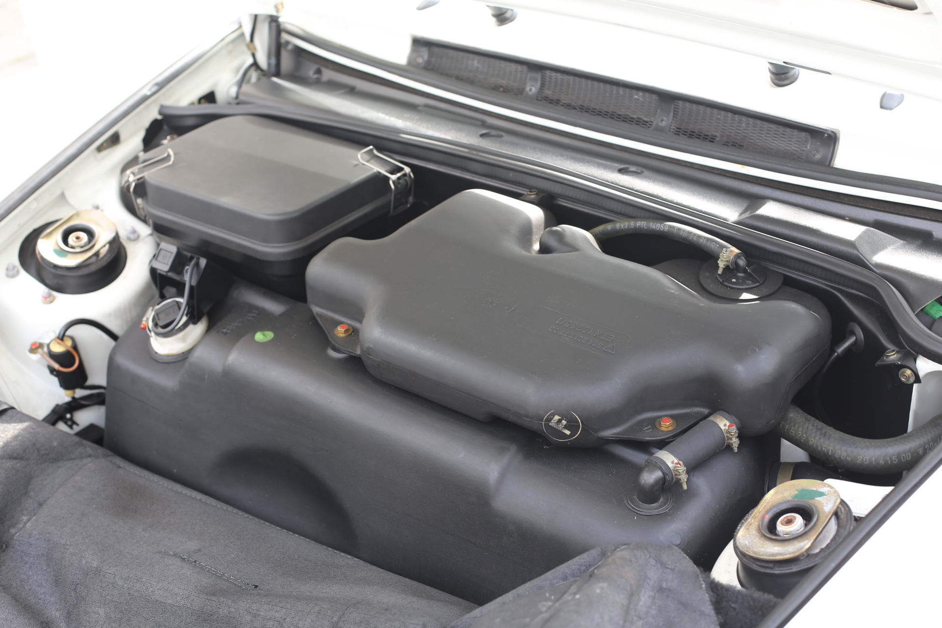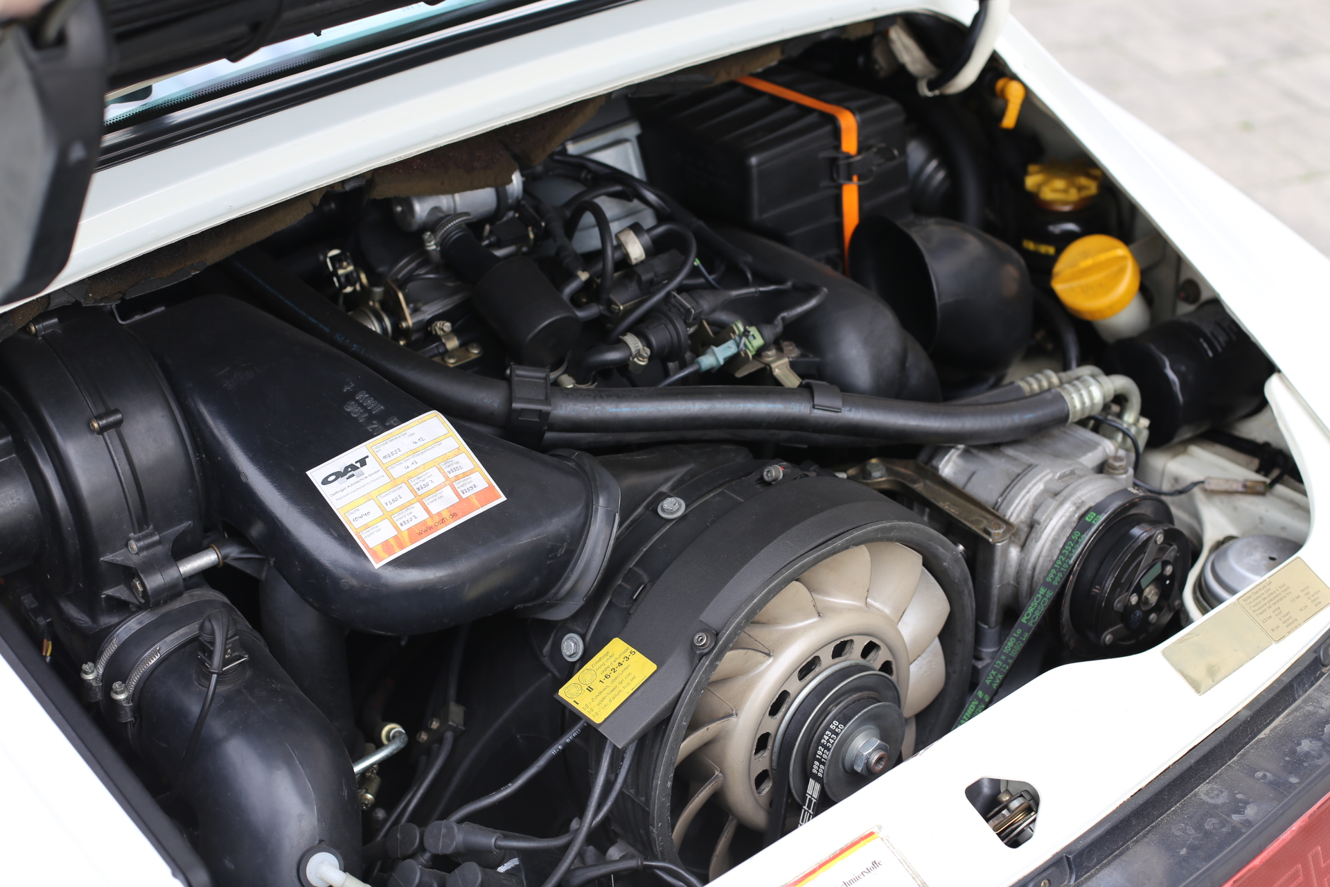 Modele Porsche 964 napędzane są nowo wprowadzonym wolnossącym silnikiem chłodzonym powietrzem, znanym jako M64. Ta płaska szóstka może pochwalić się solidną pojemnością skokową 3,6 litra, a jej osiągi są po prostu ekscytujące. Samochód bez wysiłku osiąga prędkość maksymalną 260 km/h. Od 0 do 100 km/h rozpędza się w mniej niż 6 sekund, prezentując imponujące przyspieszenie. Ten konkretny model, wyposażony w 4-biegową automatyczną skrzynię biegów Tiptronic, zapewnia potężną moc 250 KM (184 kW). Jego historia serwisowa jest bardzo bogata, a ostatni poważny przegląd przeprowadzono przy 88 908 kilometrach, przy inwestycji prawie 16 000 euro. Ta skrupulatna dbałość o konserwację zapewnia, że samochód jest prezentowany w całkowicie sprawnym stanie. Dodatkowy spokój ducha zapewnia kolejny specjalistyczny serwis.