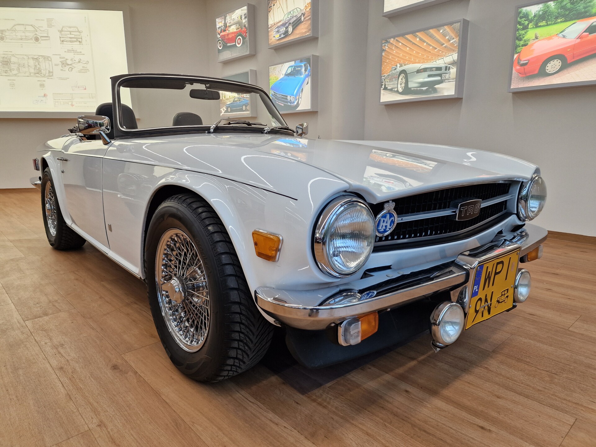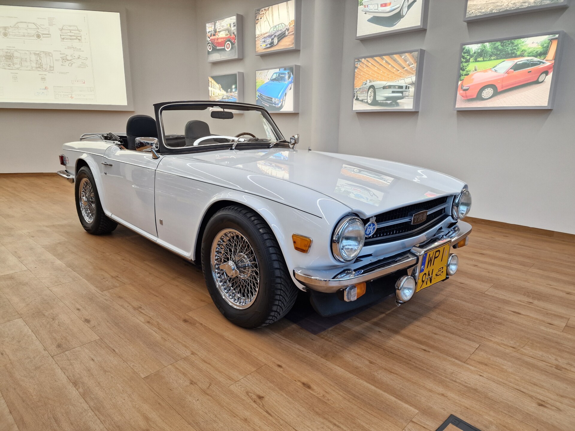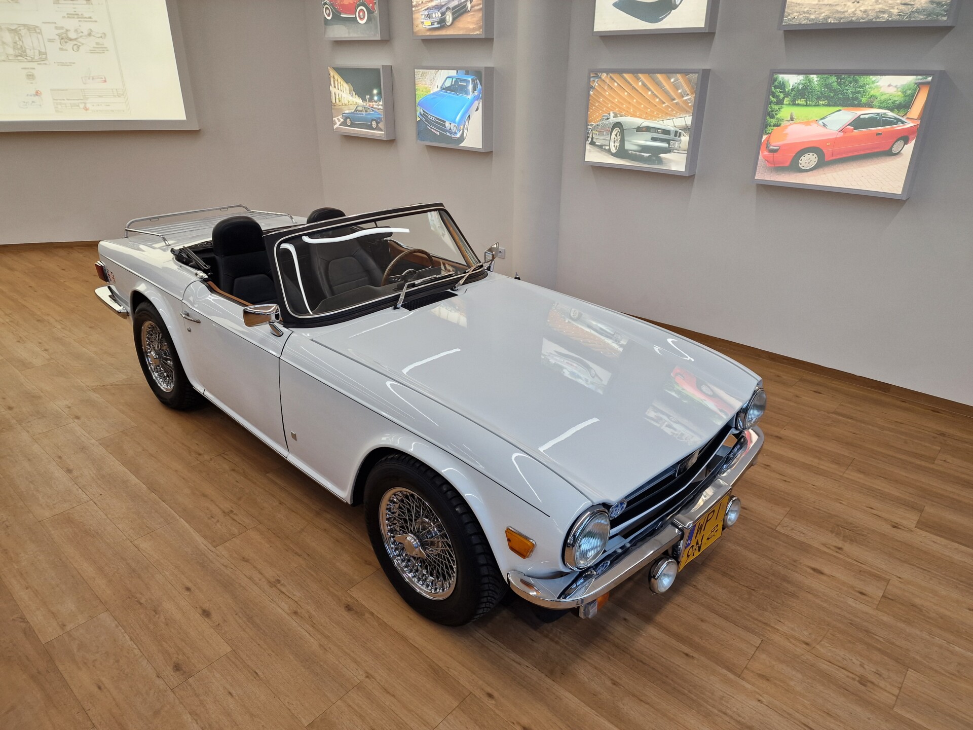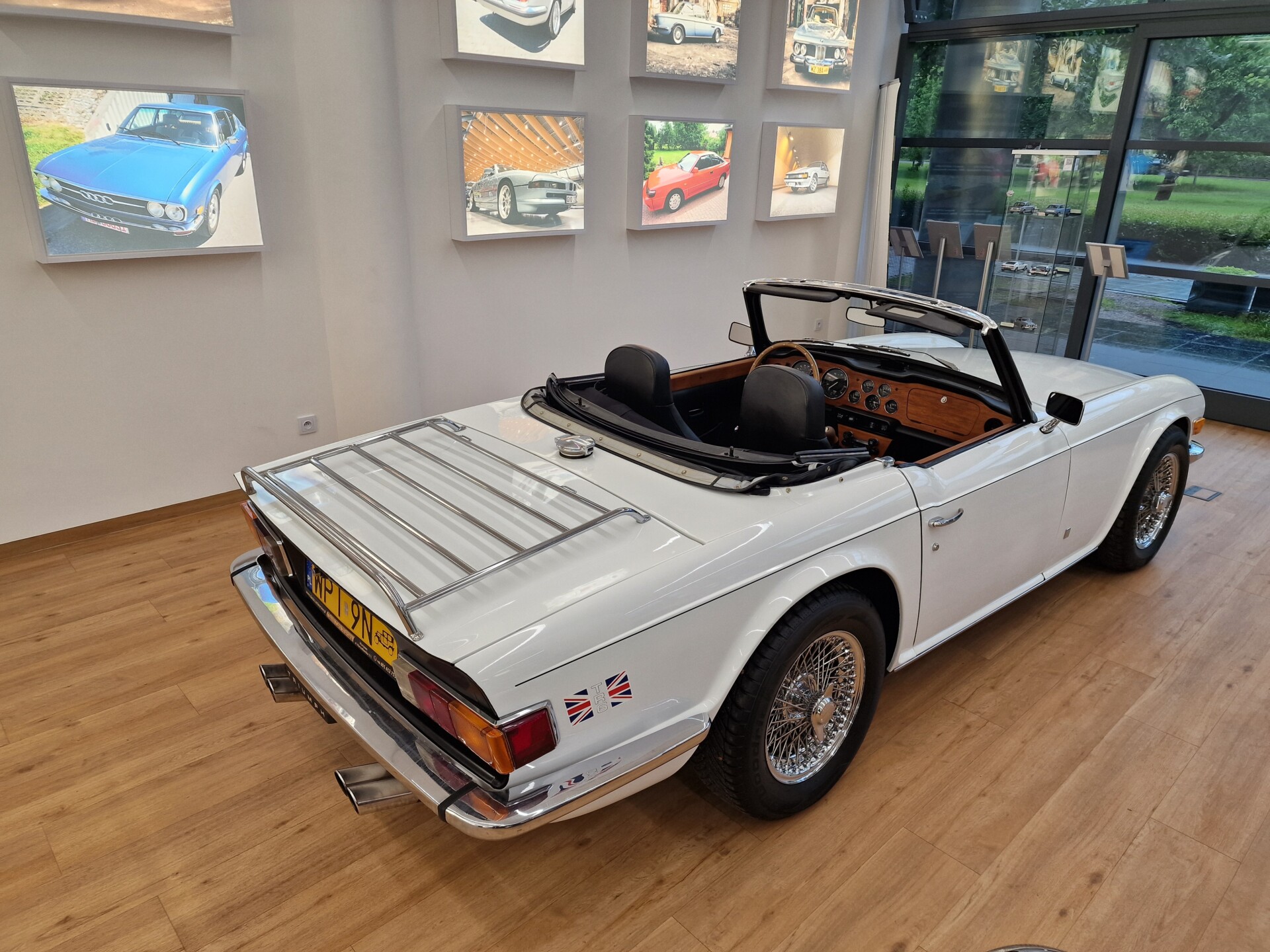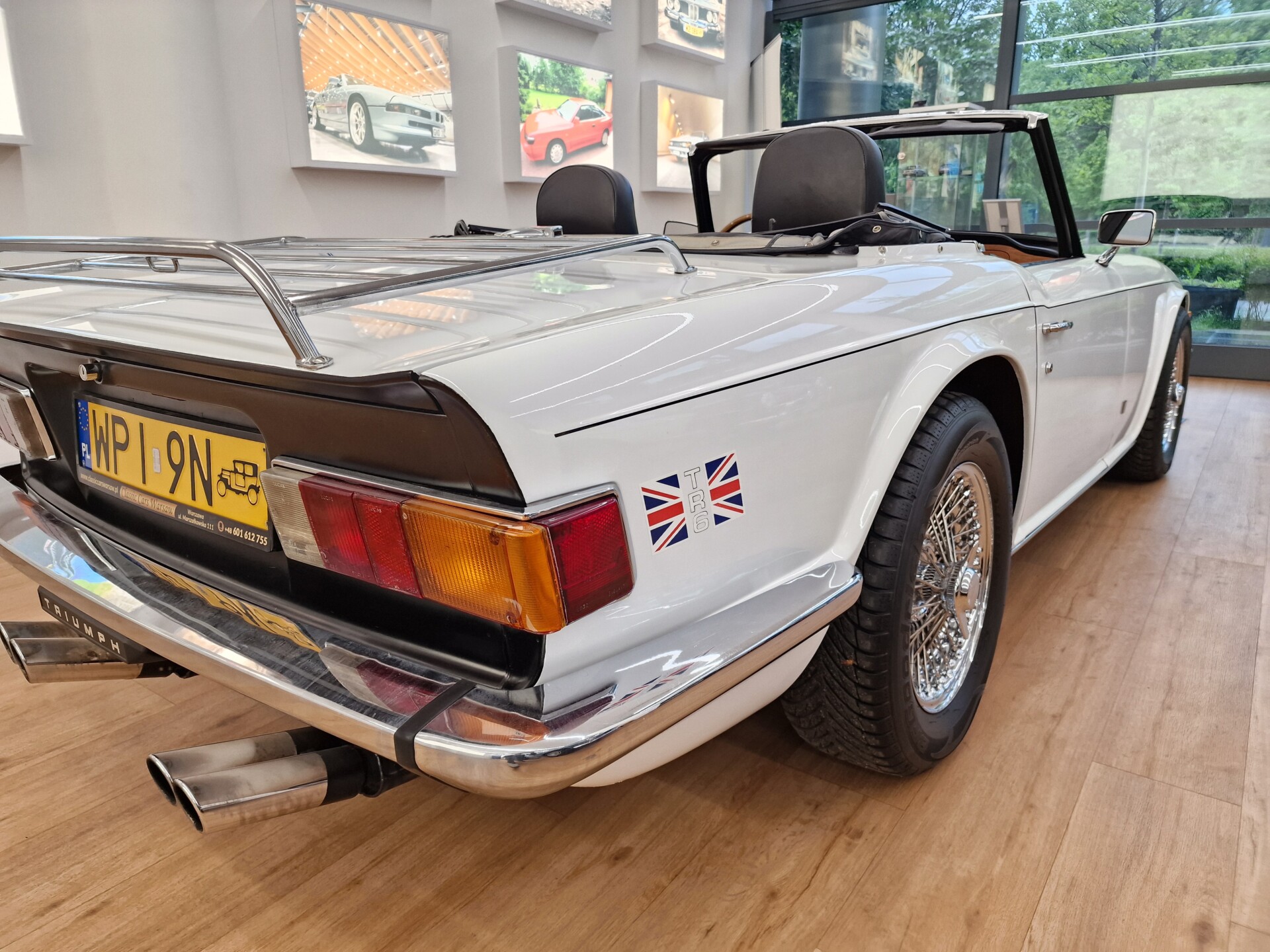 Nasz Egzemplarz – To Samochód który nadaje się w równym stopniu na relaksującą przejażdżkę po bulwarze jak i na wyścig typu hillclimb albo na dynamiczną przejazd przez szkocką przełęcz. Model z którym mamy do czynienia to wersja amerykańska z 2,5 litrową rzędową szóstką z wtryskiem Lucasa. Lecz nasz Triumph nie jest zwykłą TR6ką. Ten egzemplarz został przez poprzedniego właściciela zgodnie ze sztuką wzbogacony o kompresor, aluminiowe nakładki na pedały, sportową bardziej wydajna chłodnice i wentylowane tarczę hamulcowe. Wszystkie te akcesoria zostały zakupione w renomowanej firmie Moss Motors w Wielkiej Brytanii do tego zamontowano Sportowy filtr powietrza K&N i drewnianą kierownicę Moto – Lita, i dla bezproblemowych startów każdego dnia zapłon 123ignition. Dodatkowo do samochodu dodajemy opcjonalny twardy dach. Wszystkie te modyfikacje poskutkowały tym że samochód oferuje niesamowicie analogowe wrażenia z jazdy o które ciężko w jakimkolwiek innym samochodzie. Drogą przypomnienia ten samochód waży 1043 kg i ma 185 koni mechanicznych. Jest to idealna propozycja dla kierowców pasjonatów którzy biorą jeżdżenie samochodem na poważnie. Samochód jest po wymianie olejów w silniku, skrzyni biegów i moście a także filtrów i świec. Termostat został naprawiony i zrobiliśmy co w takim samochodzie bardzo ważne przegląd elektryki. Samochód został kompleksowo przygotowany do sezonu pozostało nim tylko jeździć i jeździć.