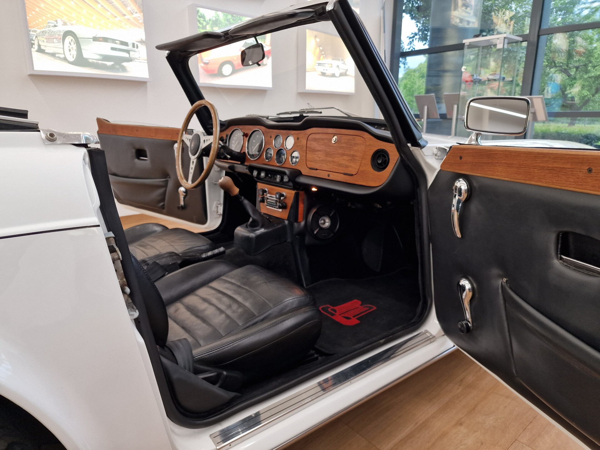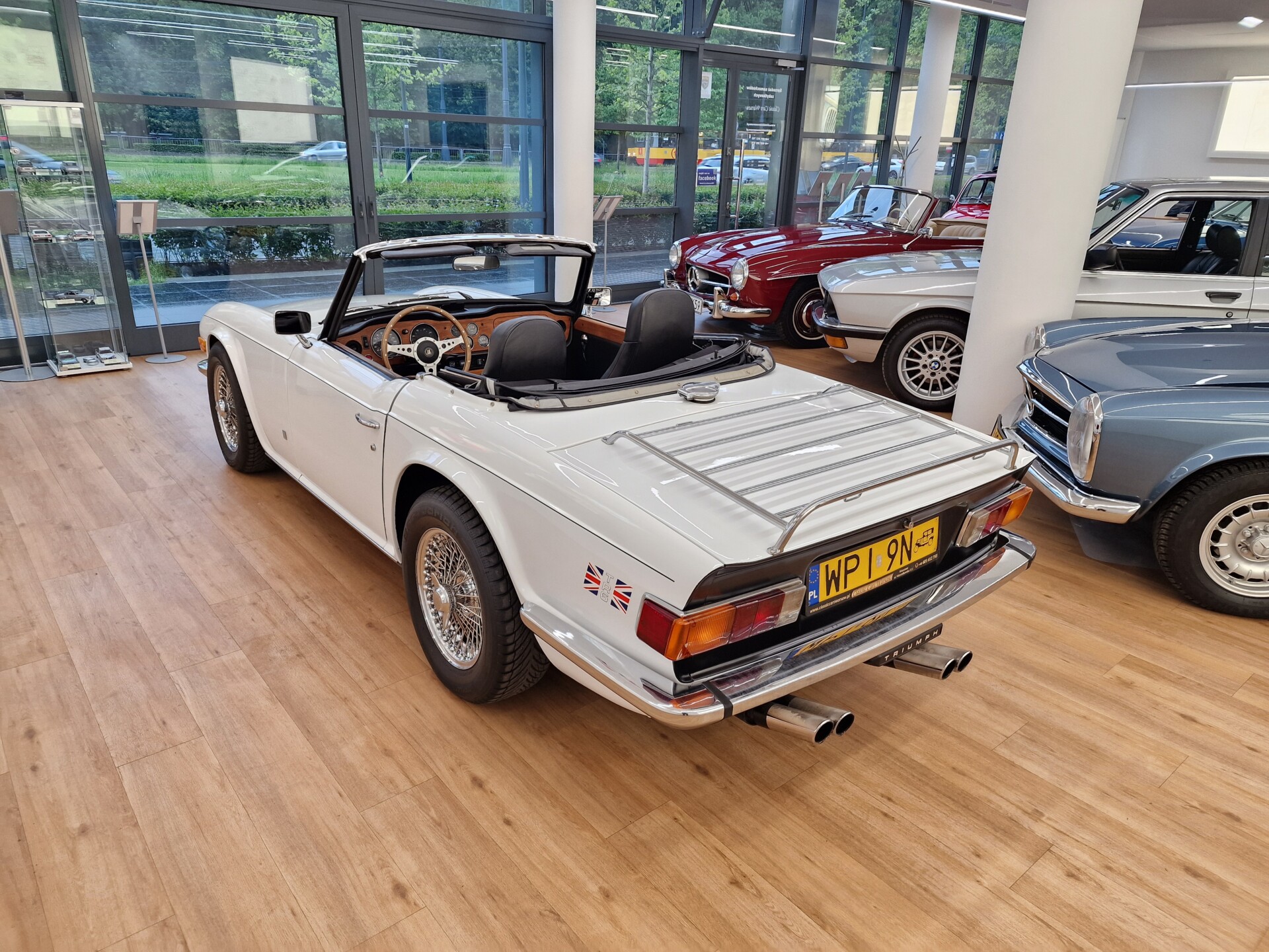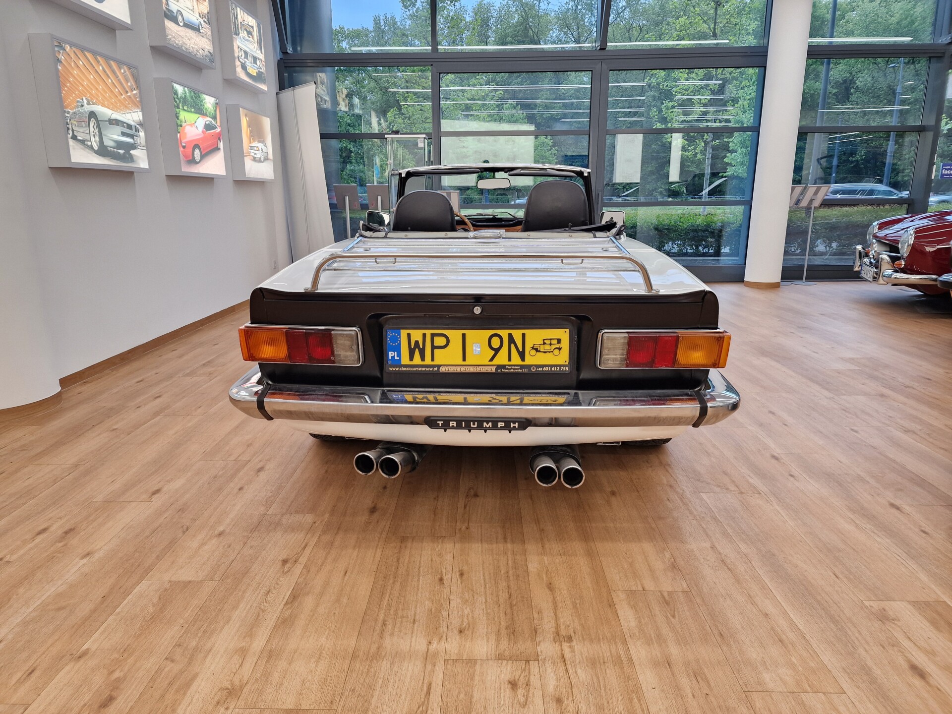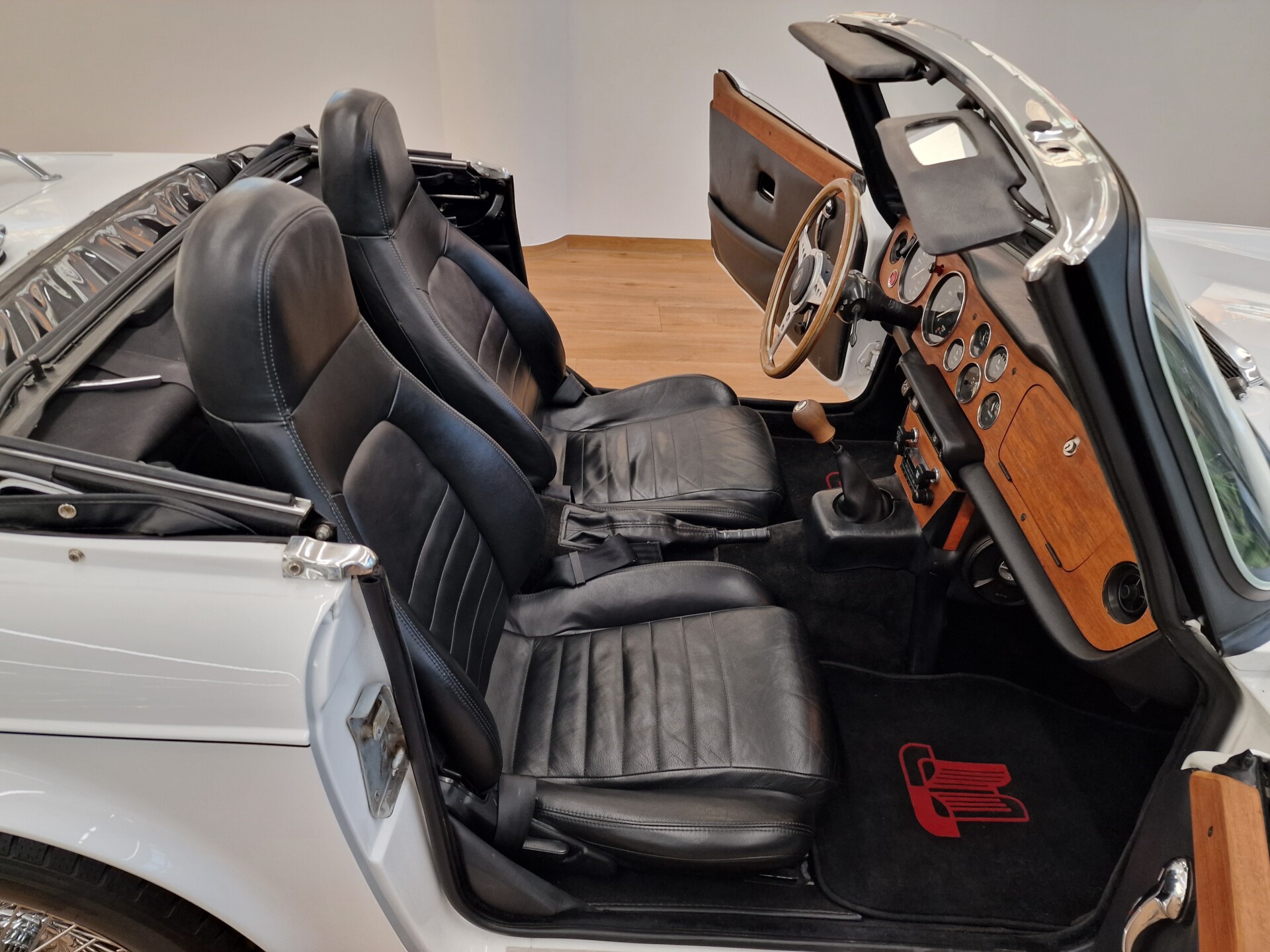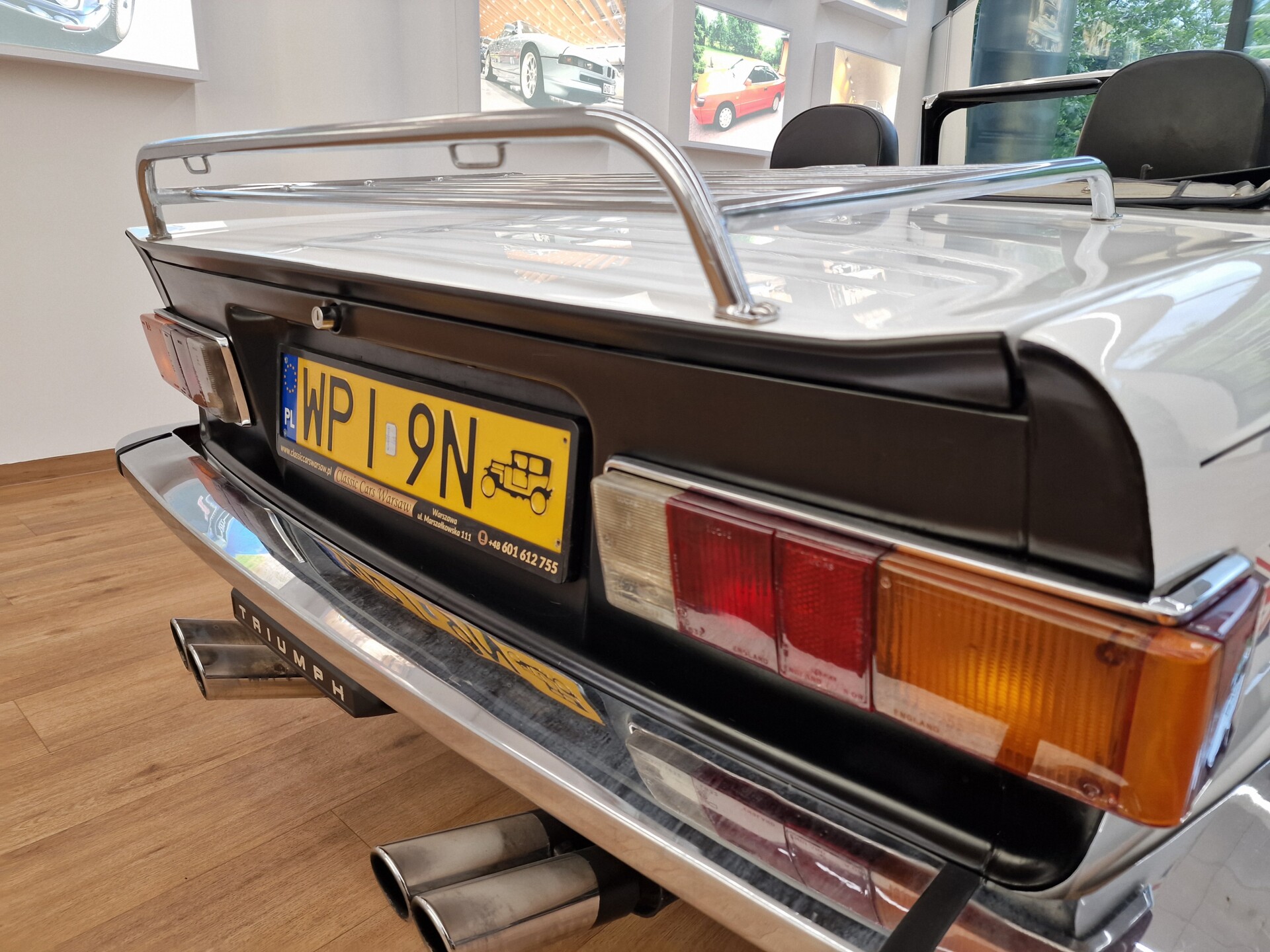 Nasz Egzemplarz – To Samochód który nadaje się w równym stopniu na relaksującą przejażdżkę po bulwarze jak i na wyścig typu hillclimb albo na dynamiczną przejazd przez szkocką przełęcz. Model z którym mamy do czynienia to wersja amerykańska z 2,5 litrową rzędową szóstką z wtryskiem Lucasa. Lecz nasz Triumph nie jest zwykłą TR6ką. Ten egzemplarz został przez poprzedniego właściciela zgodnie ze sztuką wzbogacony o kompresor, aluminiowe nakładki na pedały, sportową bardziej wydajna chłodnice i wentylowane tarczę hamulcowe. Wszystkie te akcesoria zostały zakupione w renomowanej firmie Moss Motors w Wielkiej Brytanii do tego zamontowano Sportowy filtr powietrza K&N i drewnianą kierownicę Moto – Lita, i dla bezproblemowych startów każdego dnia zapłon 123ignition. Dodatkowo do samochodu dodajemy opcjonalny twardy dach. Wszystkie te modyfikacje poskutkowały tym że samochód oferuje niesamowicie analogowe wrażenia z jazdy o które ciężko w jakimkolwiek innym samochodzie. Drogą przypomnienia ten samochód waży 1043 kg i ma 185 koni mechanicznych. Jest to idealna propozycja dla kierowców pasjonatów którzy biorą jeżdżenie samochodem na poważnie. Samochód jest po wymianie olejów w silniku, skrzyni biegów i moście a także filtrów i świec. Termostat został naprawiony i zrobiliśmy co w takim samochodzie bardzo ważne przegląd elektryki. Samochód został kompleksowo przygotowany do sezonu pozostało nim tylko jeździć i jeździć.