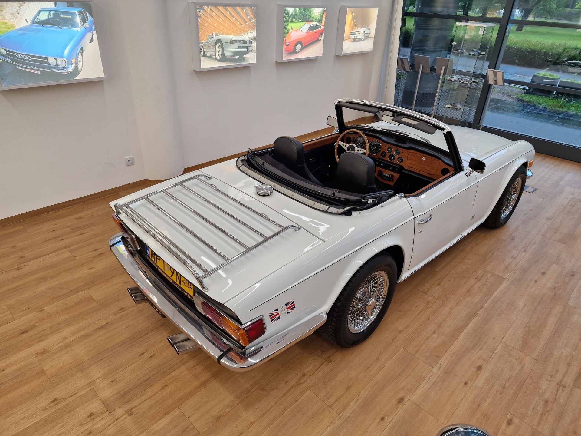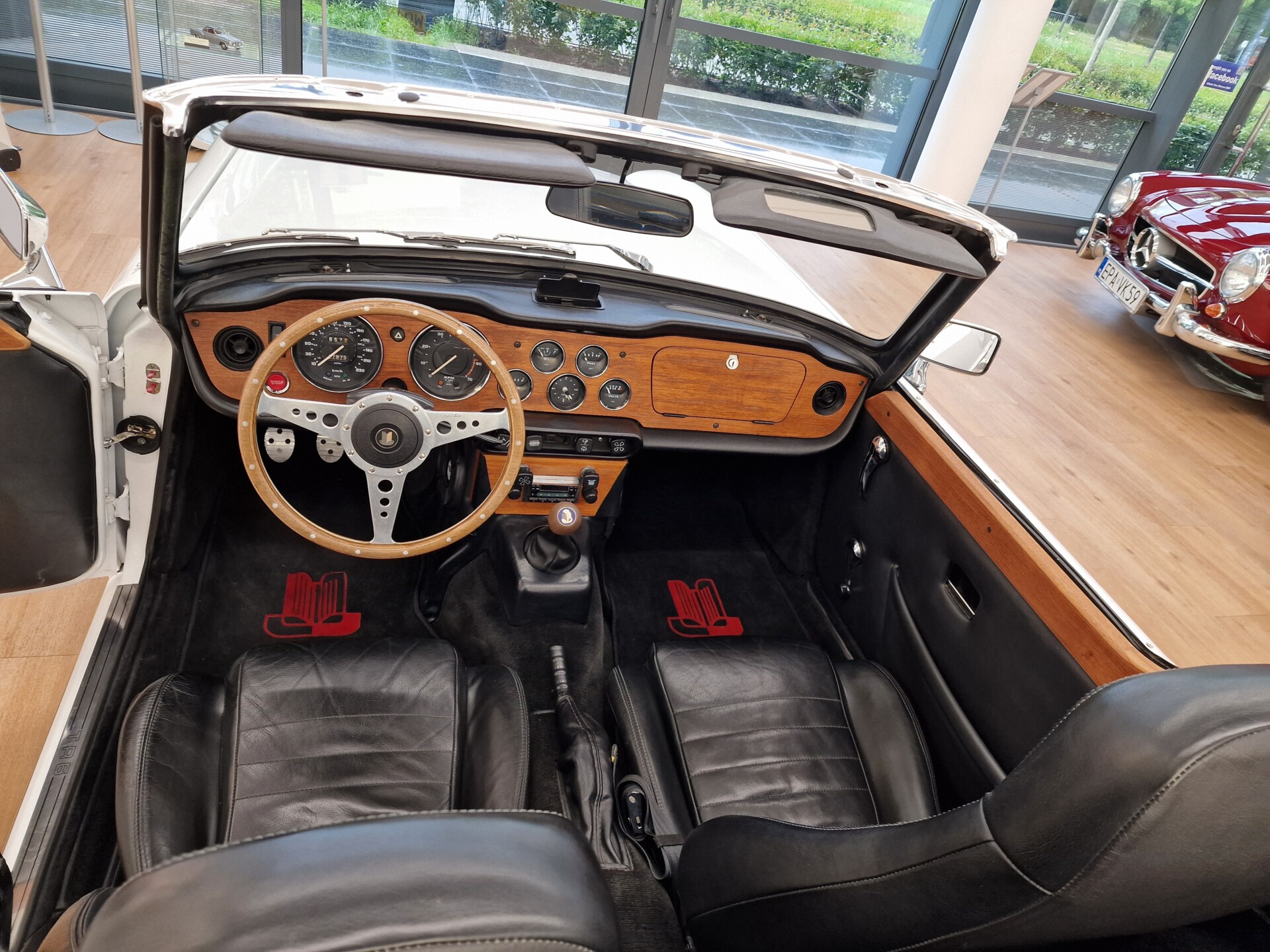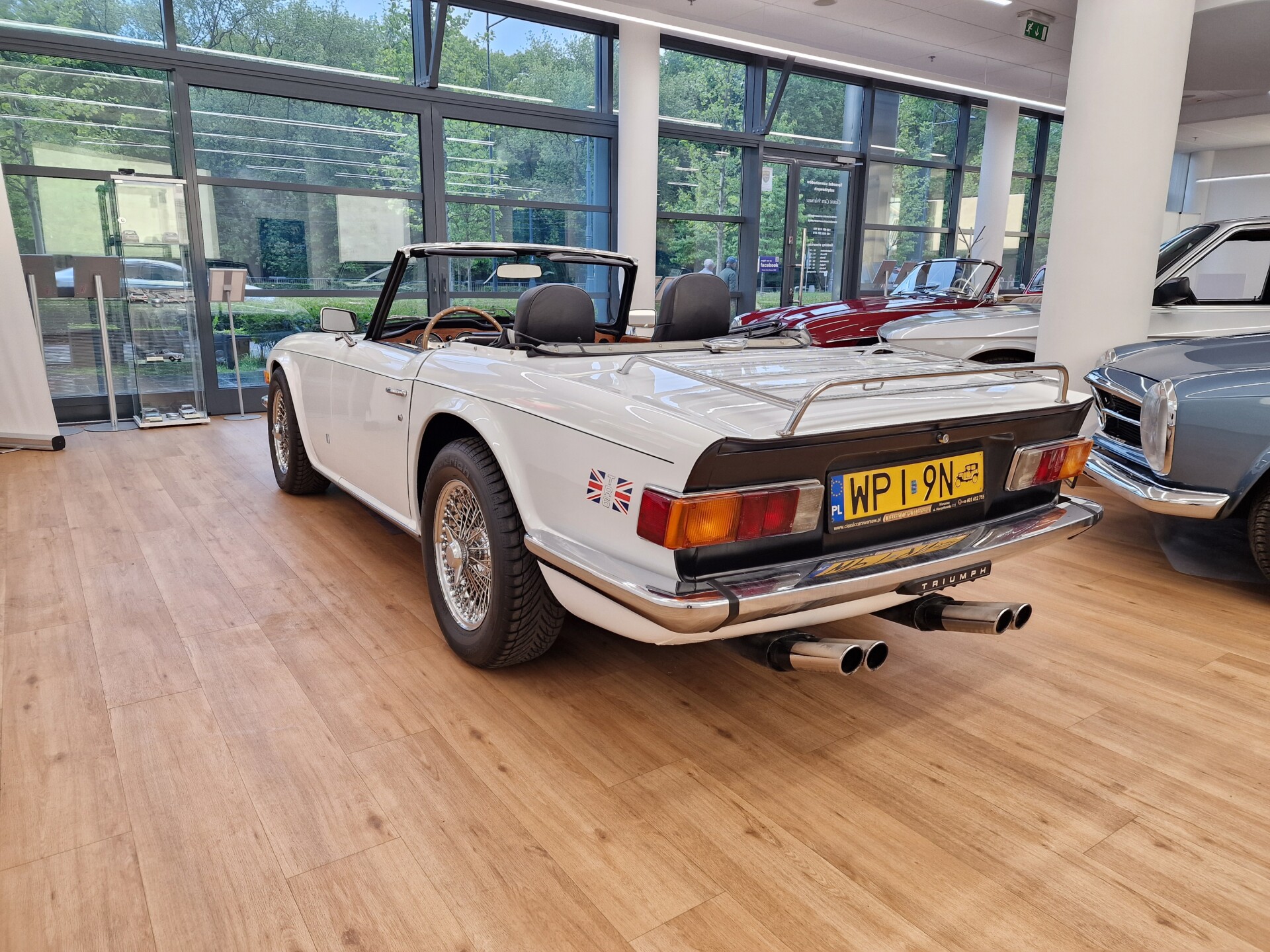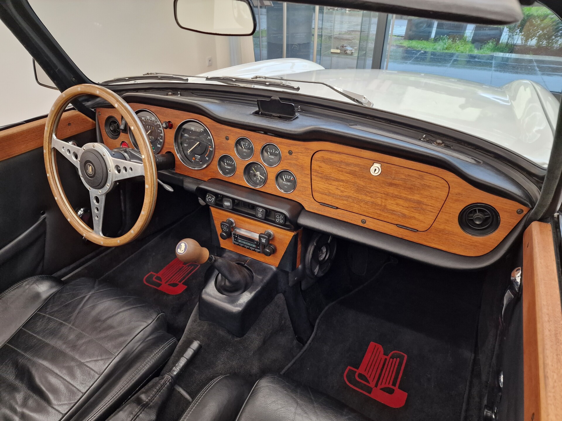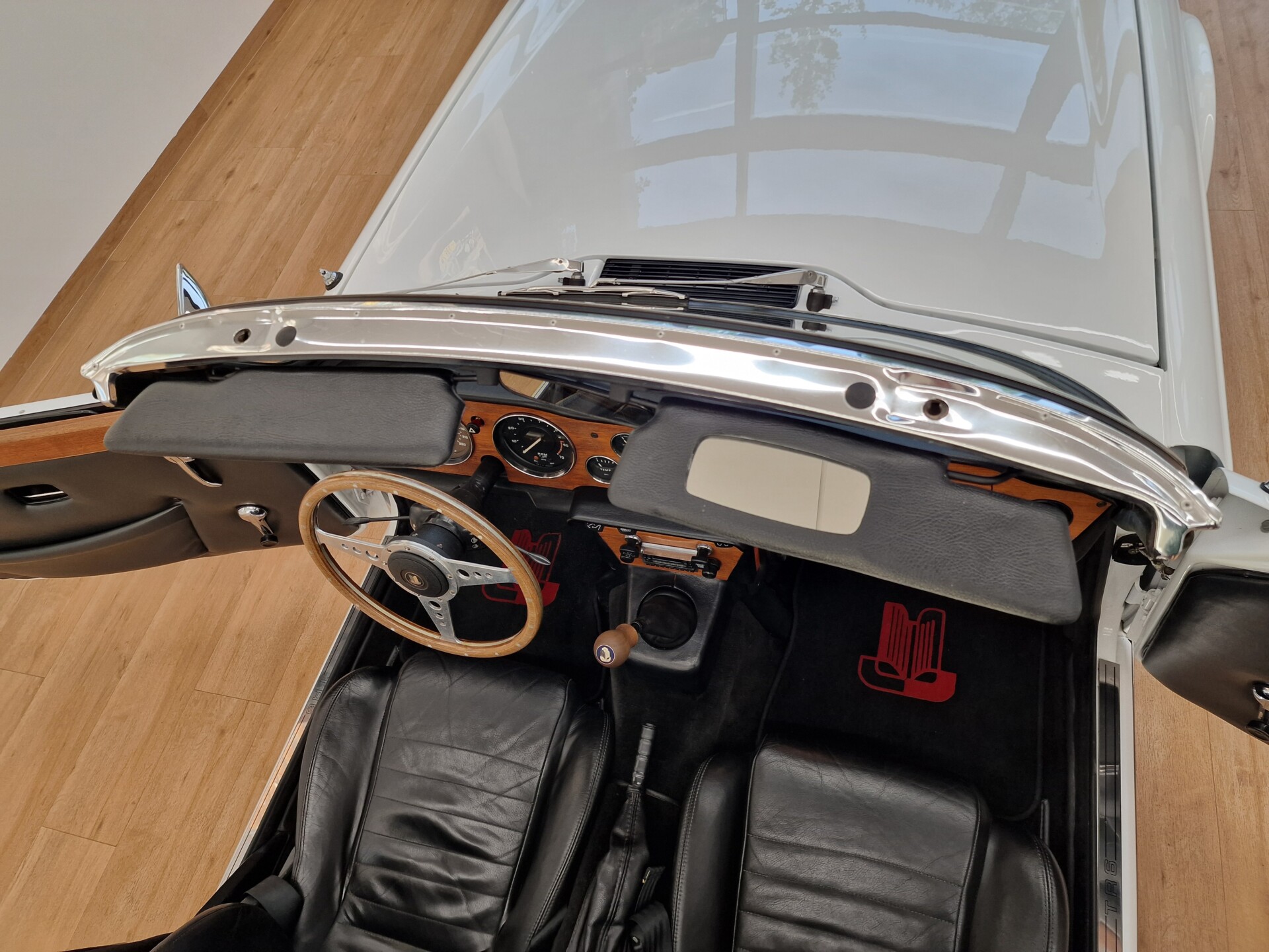 Nasz Egzemplarz – To Samochód który nadaje się w równym stopniu na relaksującą przejażdżkę po bulwarze jak i na wyścig typu hillclimb albo na dynamiczną przejazd przez szkocką przełęcz. Model z którym mamy do czynienia to wersja amerykańska z 2,5 litrową rzędową szóstką z wtryskiem Lucasa. Lecz nasz Triumph nie jest zwykłą TR6ką. Ten egzemplarz został przez poprzedniego właściciela zgodnie ze sztuką wzbogacony o kompresor, aluminiowe nakładki na pedały, sportową bardziej wydajna chłodnice i wentylowane tarczę hamulcowe. Wszystkie te akcesoria zostały zakupione w renomowanej firmie Moss Motors w Wielkiej Brytanii do tego zamontowano Sportowy filtr powietrza K&N i drewnianą kierownicę Moto – Lita, i dla bezproblemowych startów każdego dnia zapłon 123ignition. Dodatkowo do samochodu dodajemy opcjonalny twardy dach. Wszystkie te modyfikacje poskutkowały tym że samochód oferuje niesamowicie analogowe wrażenia z jazdy o które ciężko w jakimkolwiek innym samochodzie. Drogą przypomnienia ten samochód waży 1043 kg i ma 185 koni mechanicznych. Jest to idealna propozycja dla kierowców pasjonatów którzy biorą jeżdżenie samochodem na poważnie. Samochód jest po wymianie olejów w silniku, skrzyni biegów i moście a także filtrów i świec. Termostat został naprawiony i zrobiliśmy co w takim samochodzie bardzo ważne przegląd elektryki. Samochód został kompleksowo przygotowany do sezonu pozostało nim tylko jeździć i jeździć.