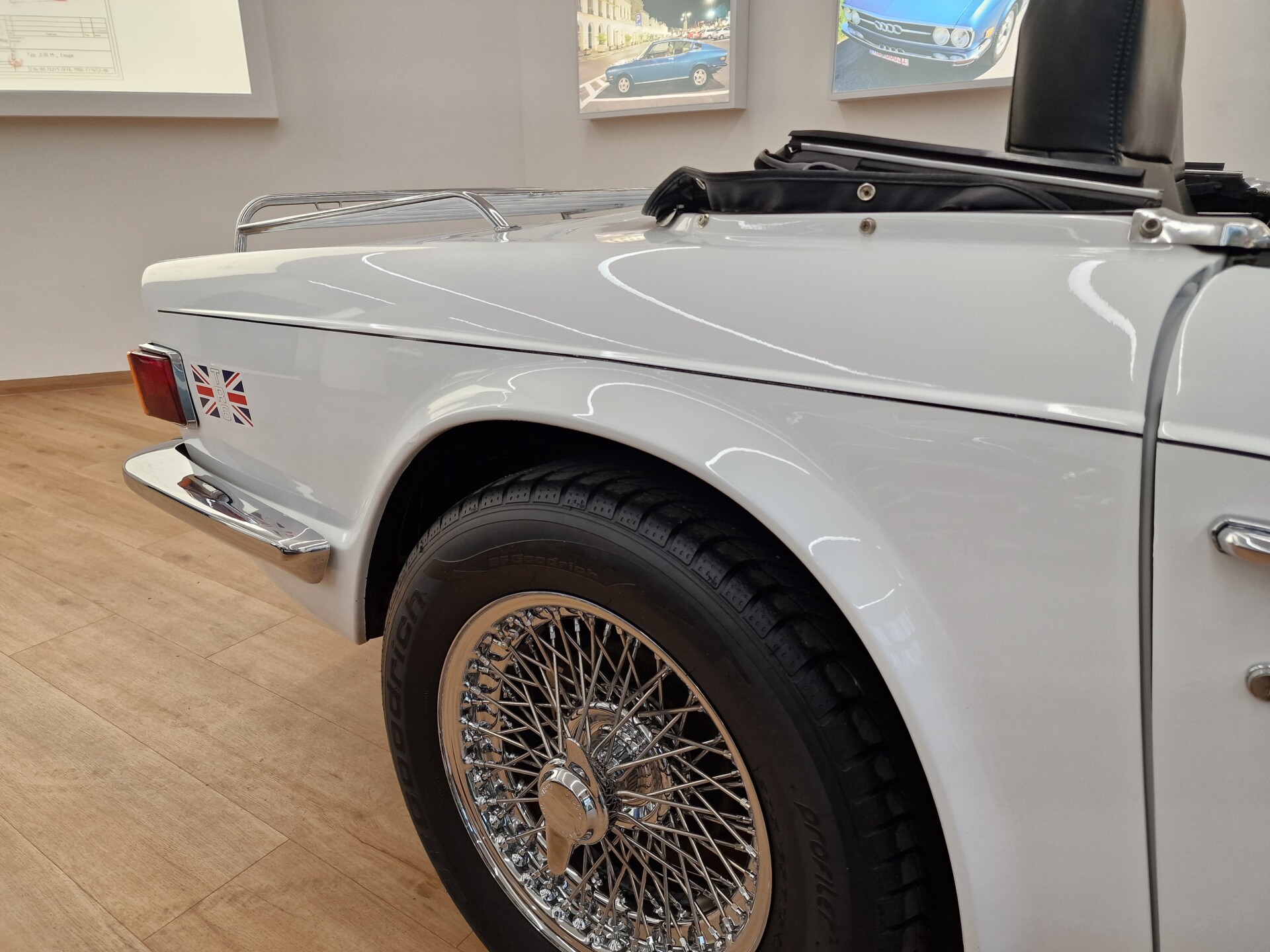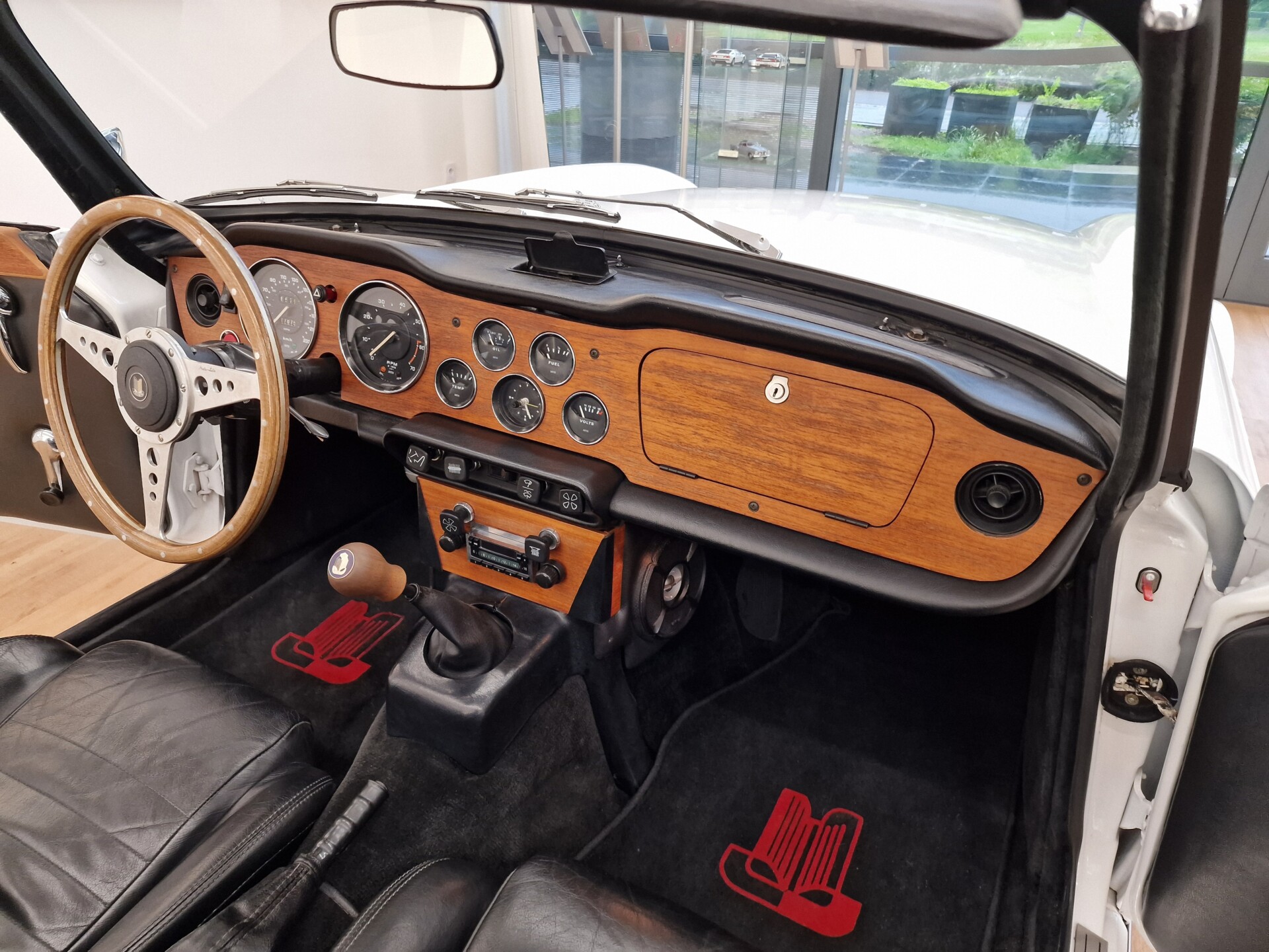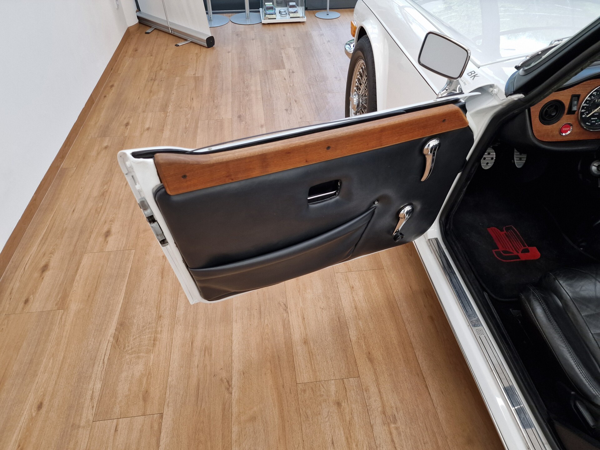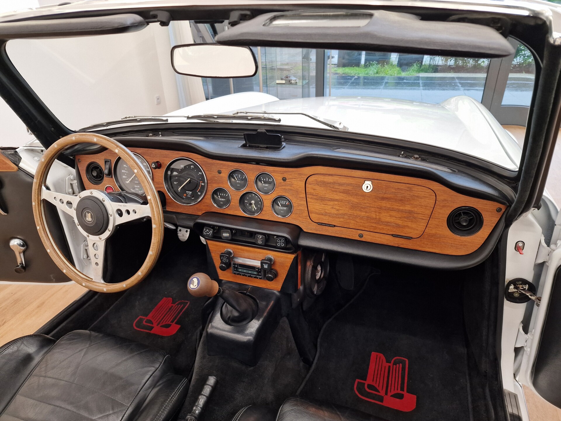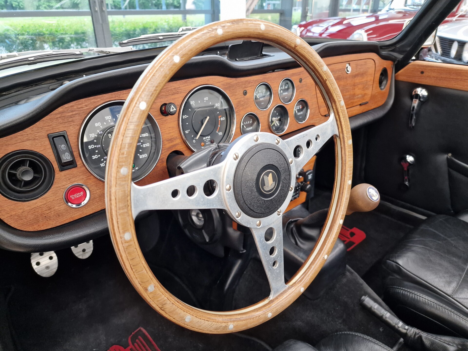 Nasz Egzemplarz – To Samochód który nadaje się w równym stopniu na relaksującą przejażdżkę po bulwarze jak i na wyścig typu hillclimb albo na dynamiczną przejazd przez szkocką przełęcz. Model z którym mamy do czynienia to wersja amerykańska z 2,5 litrową rzędową szóstką z wtryskiem Lucasa. Lecz nasz Triumph nie jest zwykłą TR6ką. Ten egzemplarz został przez poprzedniego właściciela zgodnie ze sztuką wzbogacony o kompresor, aluminiowe nakładki na pedały, sportową bardziej wydajna chłodnice i wentylowane tarczę hamulcowe. Wszystkie te akcesoria zostały zakupione w renomowanej firmie Moss Motors w Wielkiej Brytanii do tego zamontowano Sportowy filtr powietrza K&N i drewnianą kierownicę Moto – Lita, i dla bezproblemowych startów każdego dnia zapłon 123ignition. Dodatkowo do samochodu dodajemy opcjonalny twardy dach. Wszystkie te modyfikacje poskutkowały tym że samochód oferuje niesamowicie analogowe wrażenia z jazdy o które ciężko w jakimkolwiek innym samochodzie. Drogą przypomnienia ten samochód waży 1043 kg i ma 185 koni mechanicznych. Jest to idealna propozycja dla kierowców pasjonatów którzy biorą jeżdżenie samochodem na poważnie. Samochód jest po wymianie olejów w silniku, skrzyni biegów i moście a także filtrów i świec. Termostat został naprawiony i zrobiliśmy co w takim samochodzie bardzo ważne przegląd elektryki. Samochód został kompleksowo przygotowany do sezonu pozostało nim tylko jeździć i jeździć.