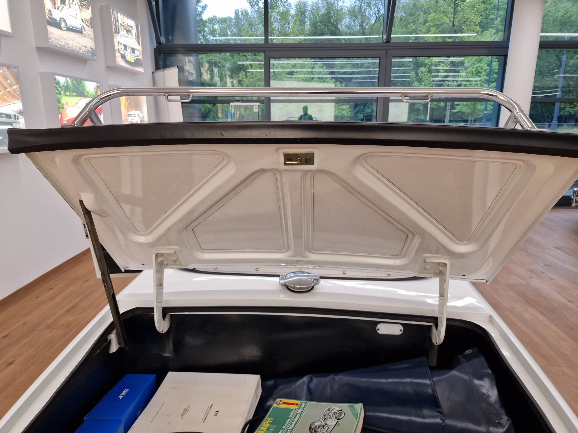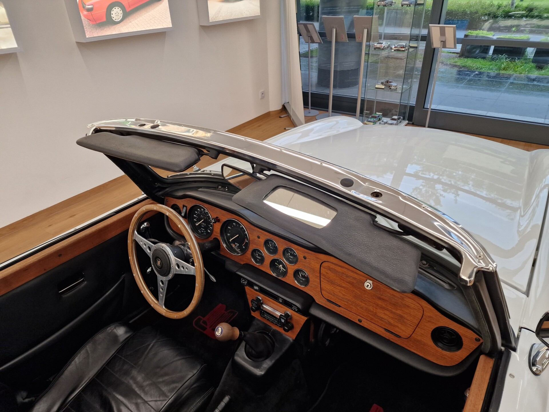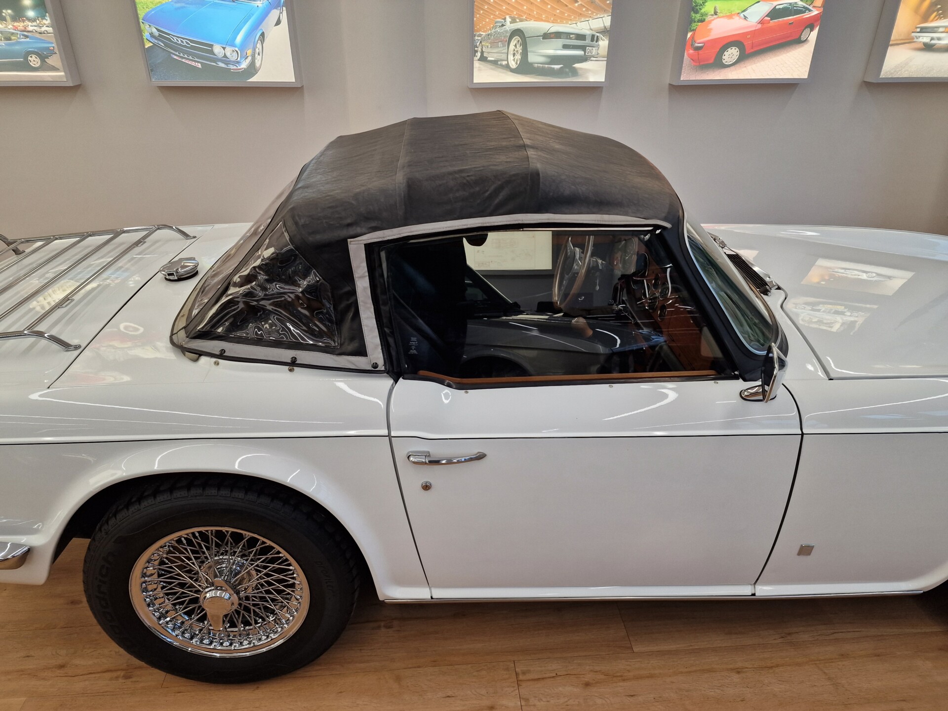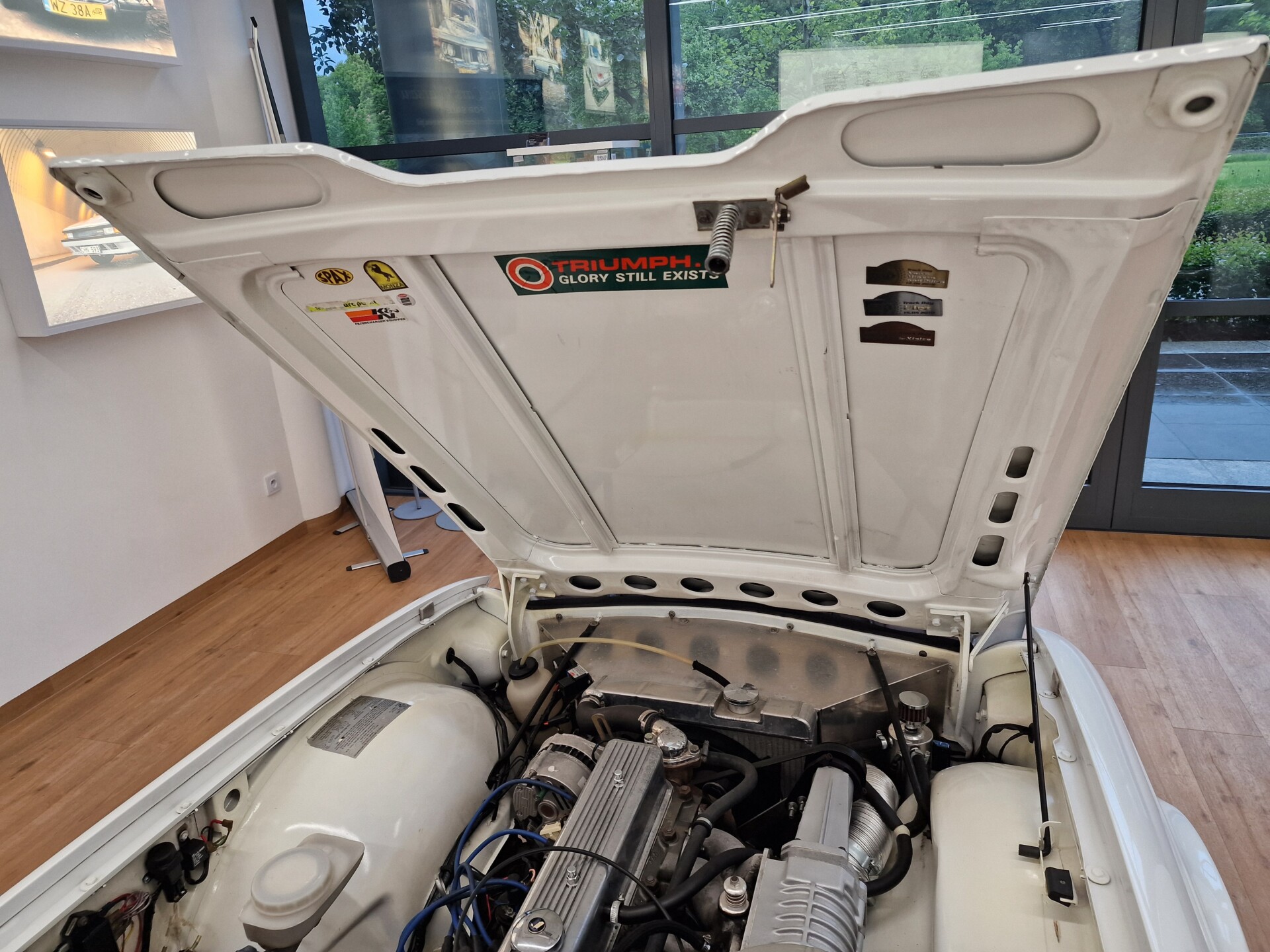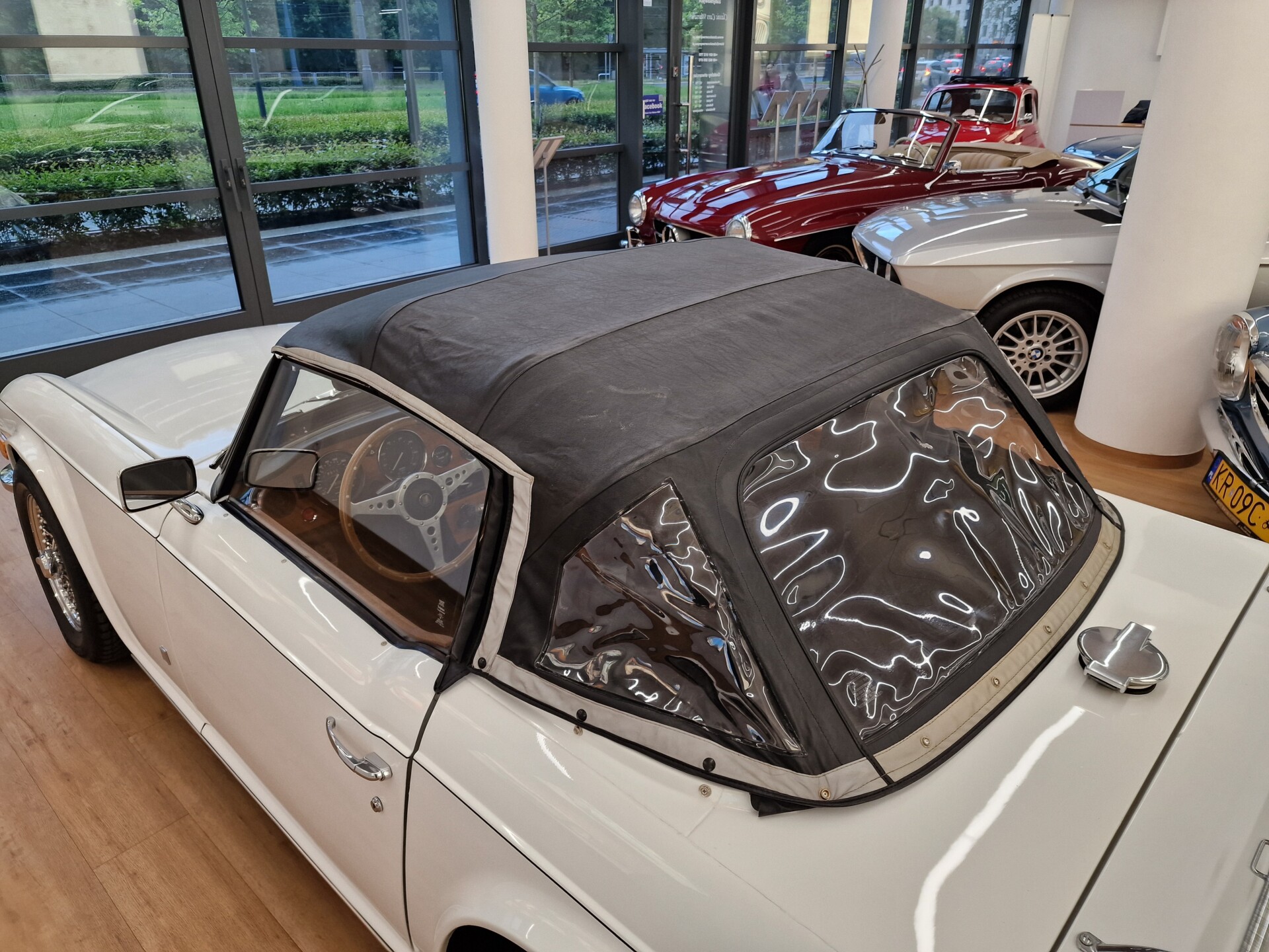 Nasz Egzemplarz – To Samochód który nadaje się w równym stopniu na relaksującą przejażdżkę po bulwarze jak i na wyścig typu hillclimb albo na dynamiczną przejazd przez szkocką przełęcz. Model z którym mamy do czynienia to wersja amerykańska z 2,5 litrową rzędową szóstką z wtryskiem Lucasa. Lecz nasz Triumph nie jest zwykłą TR6ką. Ten egzemplarz został przez poprzedniego właściciela zgodnie ze sztuką wzbogacony o kompresor, aluminiowe nakładki na pedały, sportową bardziej wydajna chłodnice i wentylowane tarczę hamulcowe. Wszystkie te akcesoria zostały zakupione w renomowanej firmie Moss Motors w Wielkiej Brytanii do tego zamontowano Sportowy filtr powietrza K&N i drewnianą kierownicę Moto – Lita, i dla bezproblemowych startów każdego dnia zapłon 123ignition. Dodatkowo do samochodu dodajemy opcjonalny twardy dach. Wszystkie te modyfikacje poskutkowały tym że samochód oferuje niesamowicie analogowe wrażenia z jazdy o które ciężko w jakimkolwiek innym samochodzie. Drogą przypomnienia ten samochód waży 1043 kg i ma 185 koni mechanicznych. Jest to idealna propozycja dla kierowców pasjonatów którzy biorą jeżdżenie samochodem na poważnie. Samochód jest po wymianie olejów w silniku, skrzyni biegów i moście a także filtrów i świec. Termostat został naprawiony i zrobiliśmy co w takim samochodzie bardzo ważne przegląd elektryki. Samochód został kompleksowo przygotowany do sezonu pozostało nim tylko jeździć i jeździć.