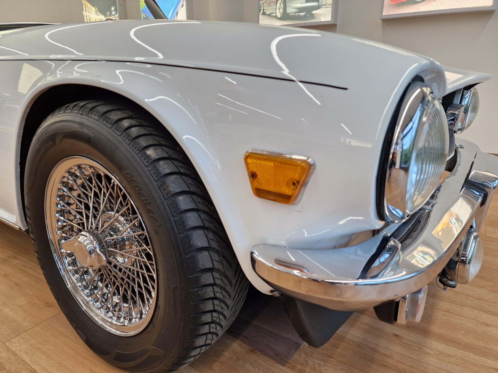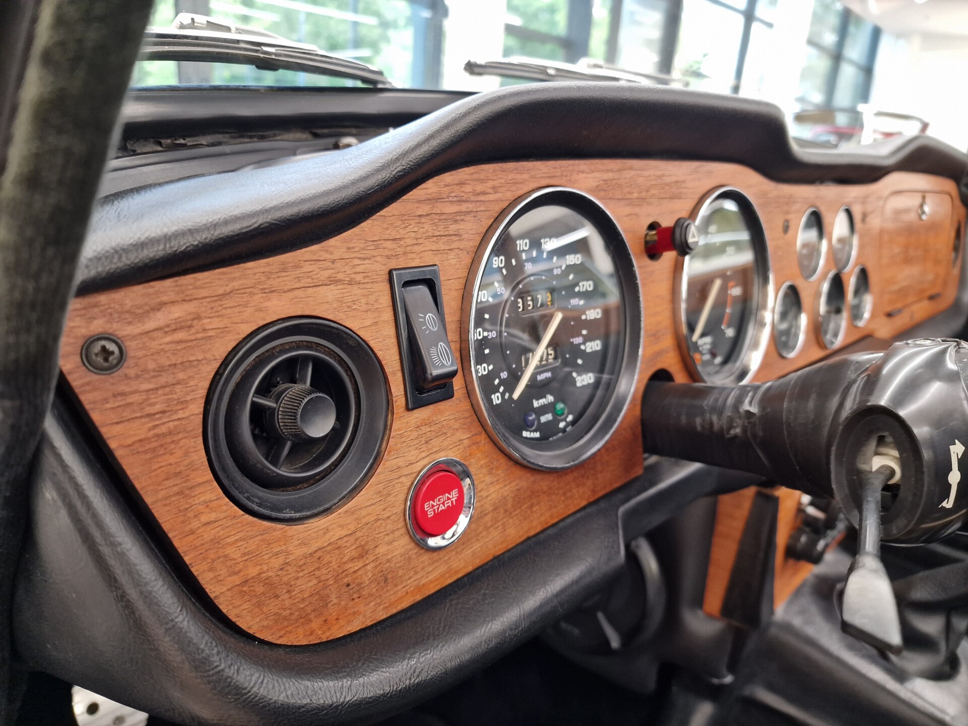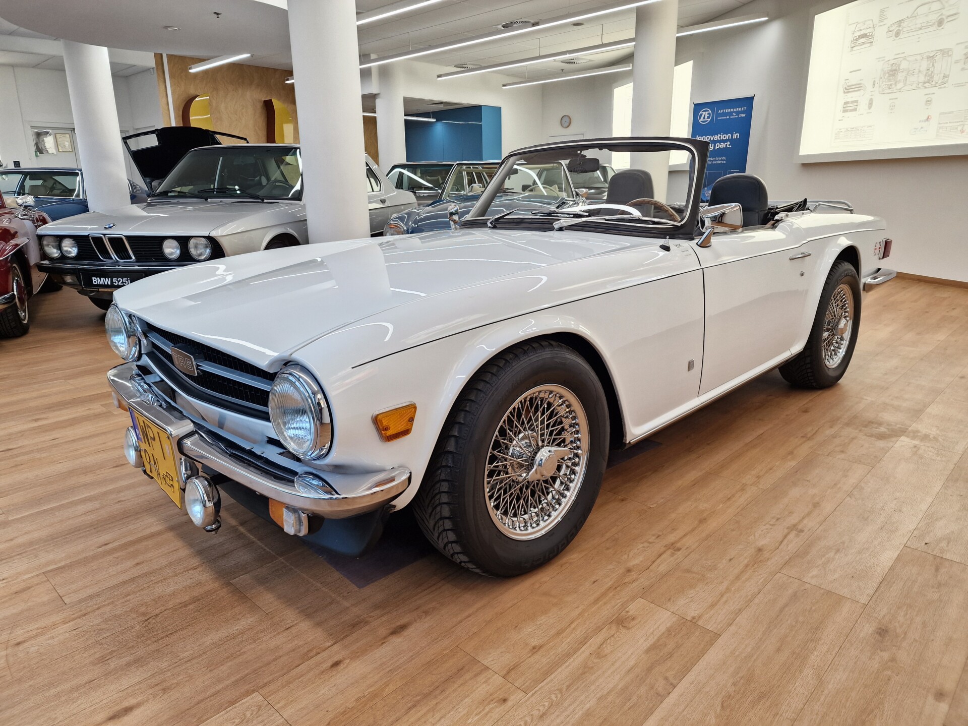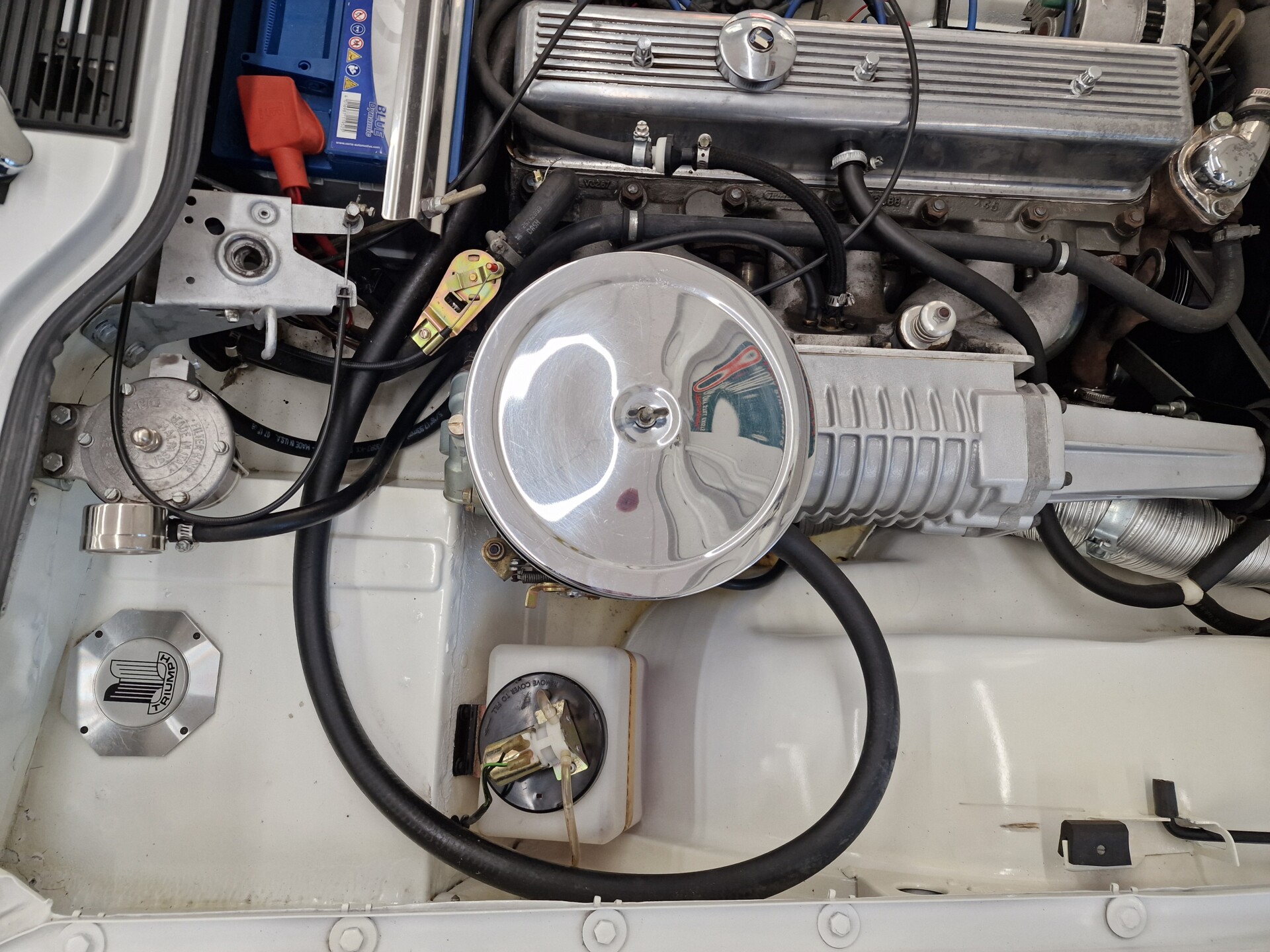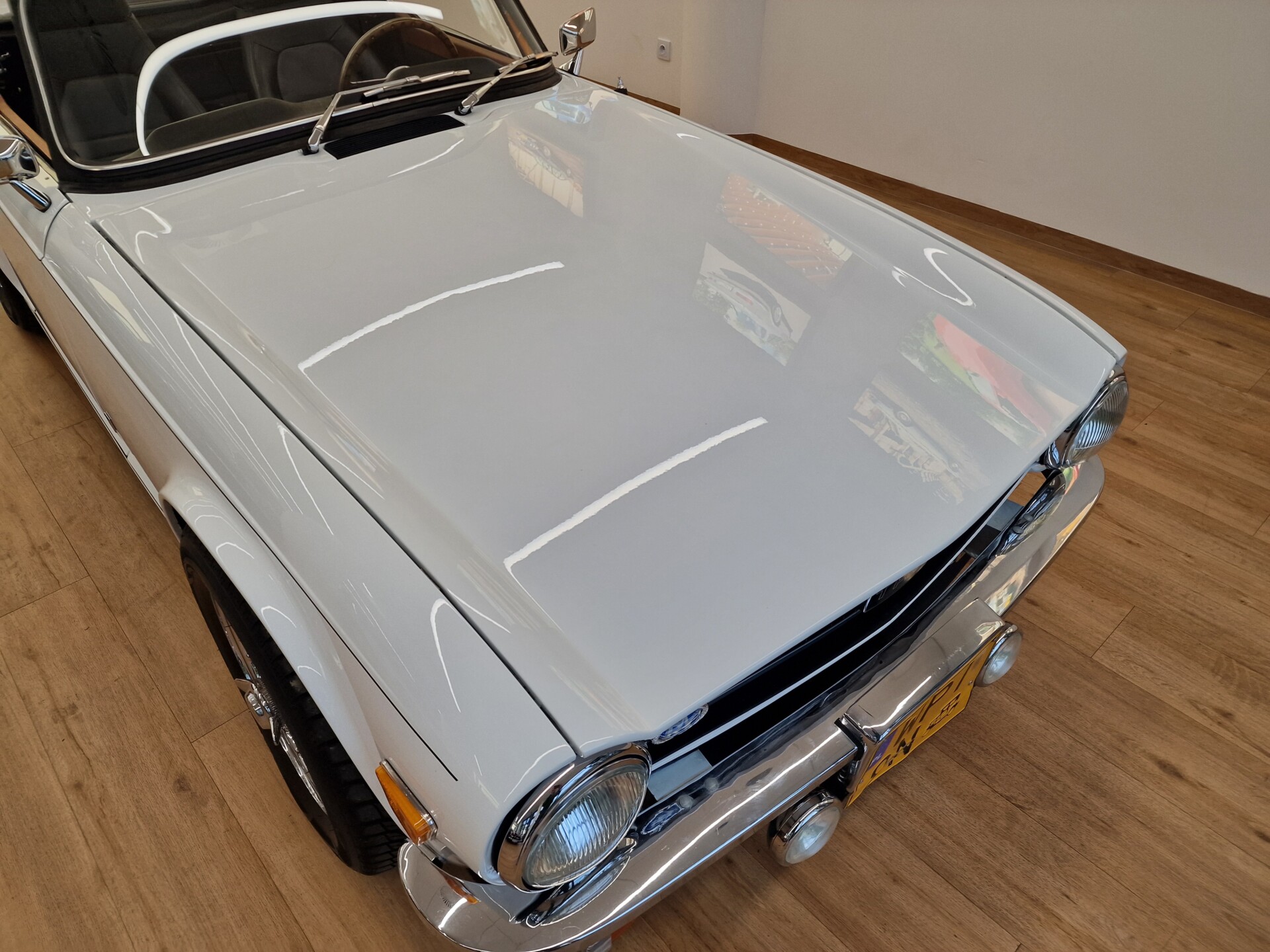 Nasz Egzemplarz – To Samochód który nadaje się w równym stopniu na relaksującą przejażdżkę po bulwarze jak i na wyścig typu hillclimb albo na dynamiczną przejazd przez szkocką przełęcz. Model z którym mamy do czynienia to wersja amerykańska z 2,5 litrową rzędową szóstką z wtryskiem Lucasa. Lecz nasz Triumph nie jest zwykłą TR6ką. Ten egzemplarz został przez poprzedniego właściciela zgodnie ze sztuką wzbogacony o kompresor, aluminiowe nakładki na pedały, sportową bardziej wydajna chłodnice i wentylowane tarczę hamulcowe. Wszystkie te akcesoria zostały zakupione w renomowanej firmie Moss Motors w Wielkiej Brytanii do tego zamontowano Sportowy filtr powietrza K&N i drewnianą kierownicę Moto – Lita, i dla bezproblemowych startów każdego dnia zapłon 123ignition. Dodatkowo do samochodu dodajemy opcjonalny twardy dach. Wszystkie te modyfikacje poskutkowały tym że samochód oferuje niesamowicie analogowe wrażenia z jazdy o które ciężko w jakimkolwiek innym samochodzie. Drogą przypomnienia ten samochód waży 1043 kg i ma 185 koni mechanicznych. Jest to idealna propozycja dla kierowców pasjonatów którzy biorą jeżdżenie samochodem na poważnie. Samochód jest po wymianie olejów w silniku, skrzyni biegów i moście a także filtrów i świec. Termostat został naprawiony i zrobiliśmy co w takim samochodzie bardzo ważne przegląd elektryki. Samochód został kompleksowo przygotowany do sezonu pozostało nim tylko jeździć i jeździć.