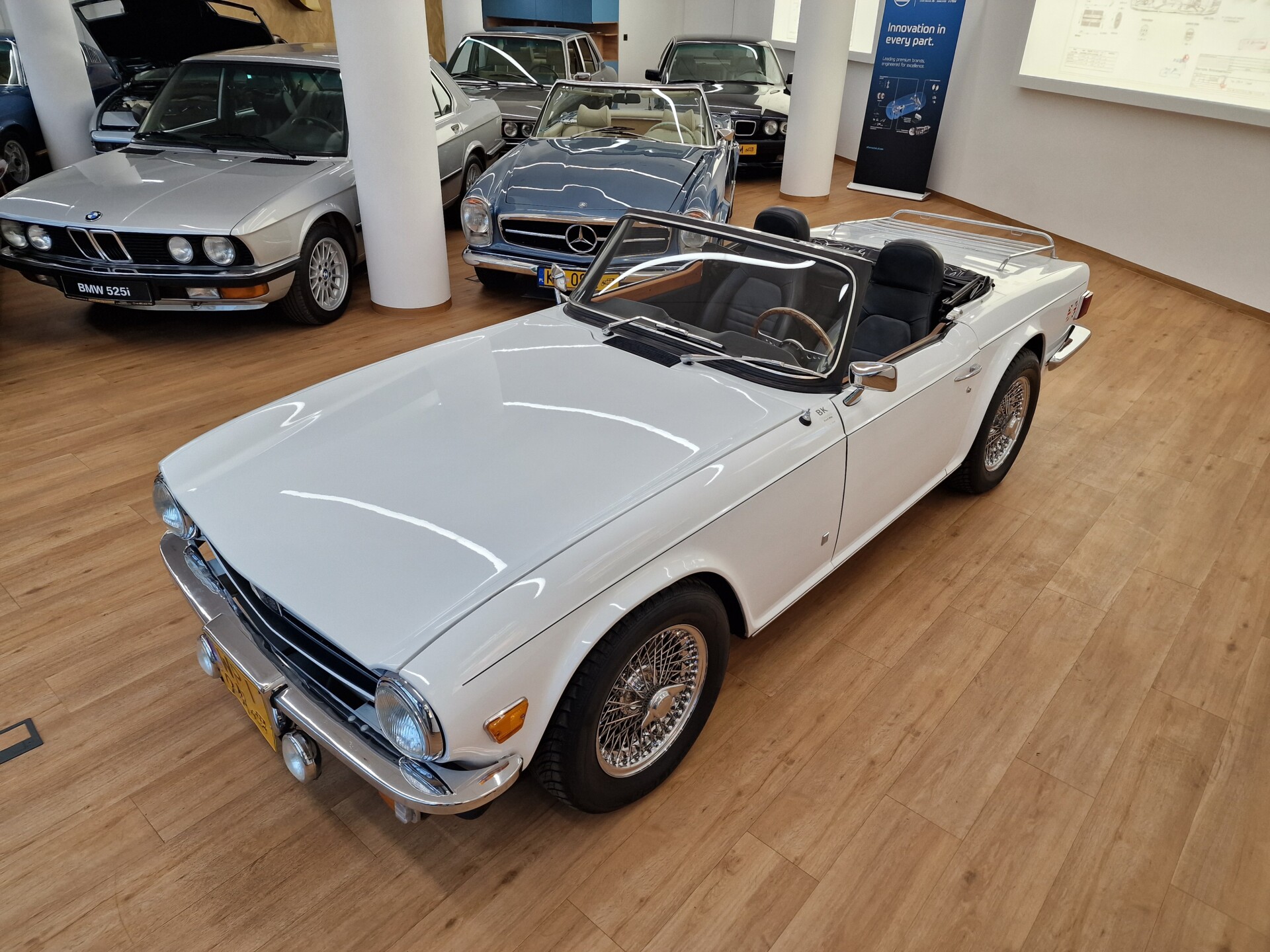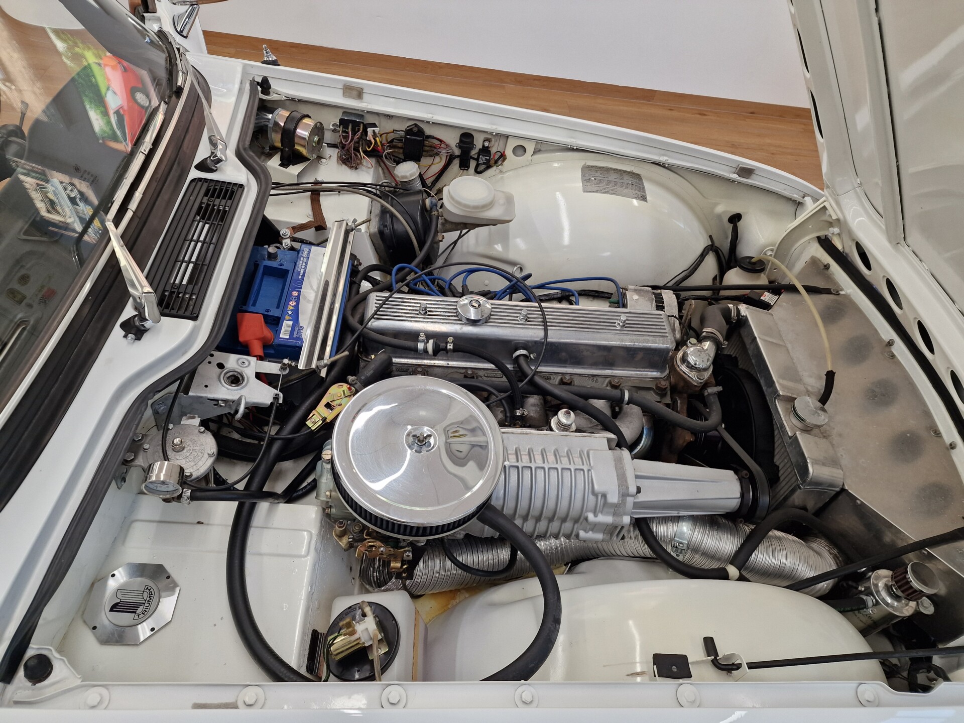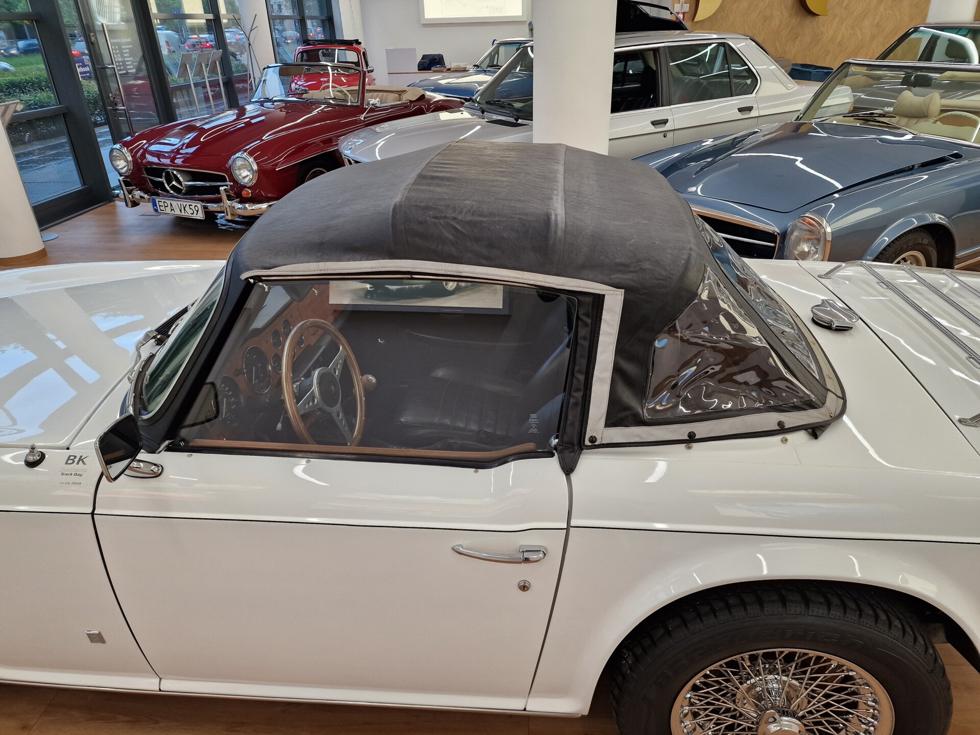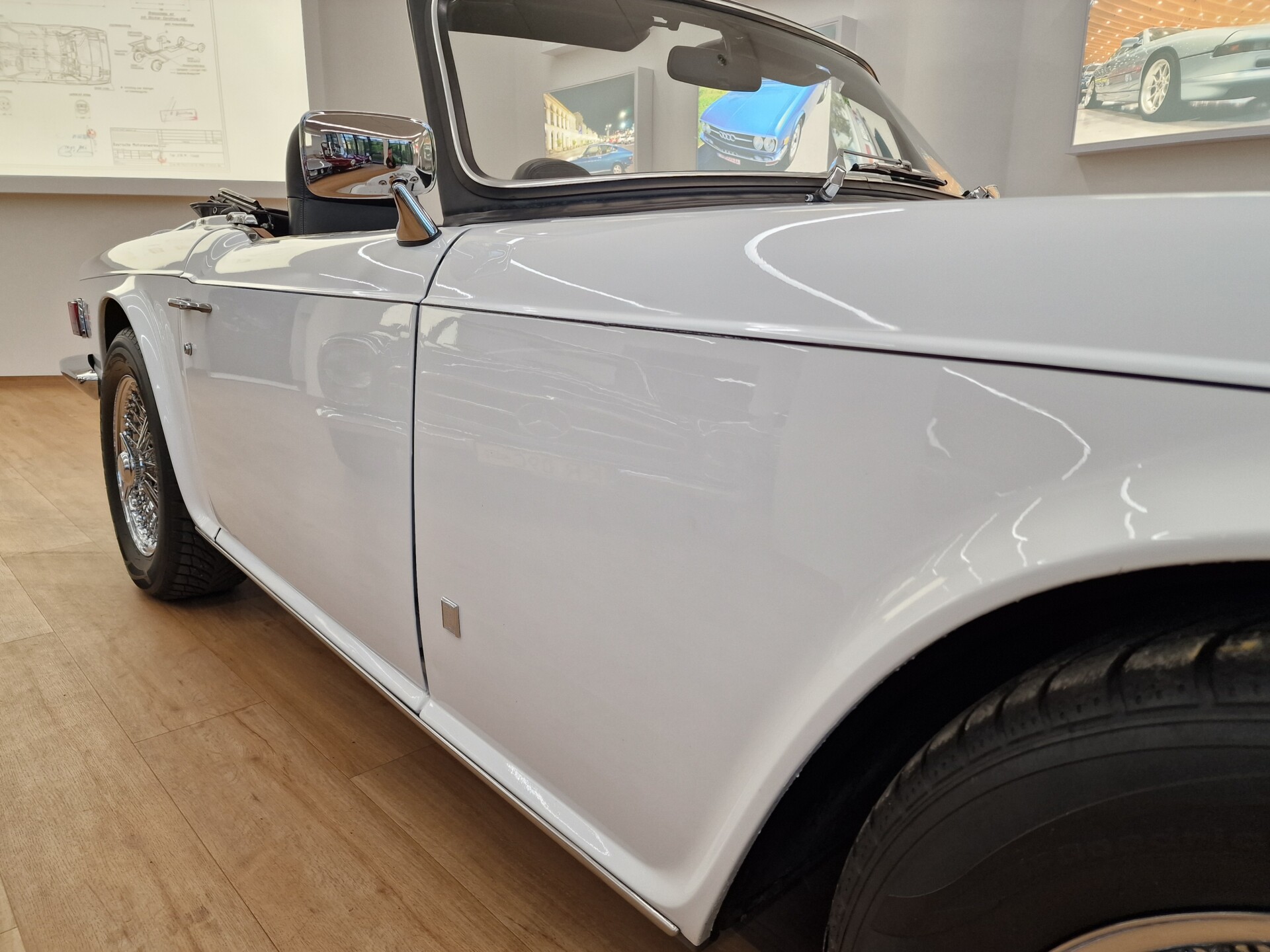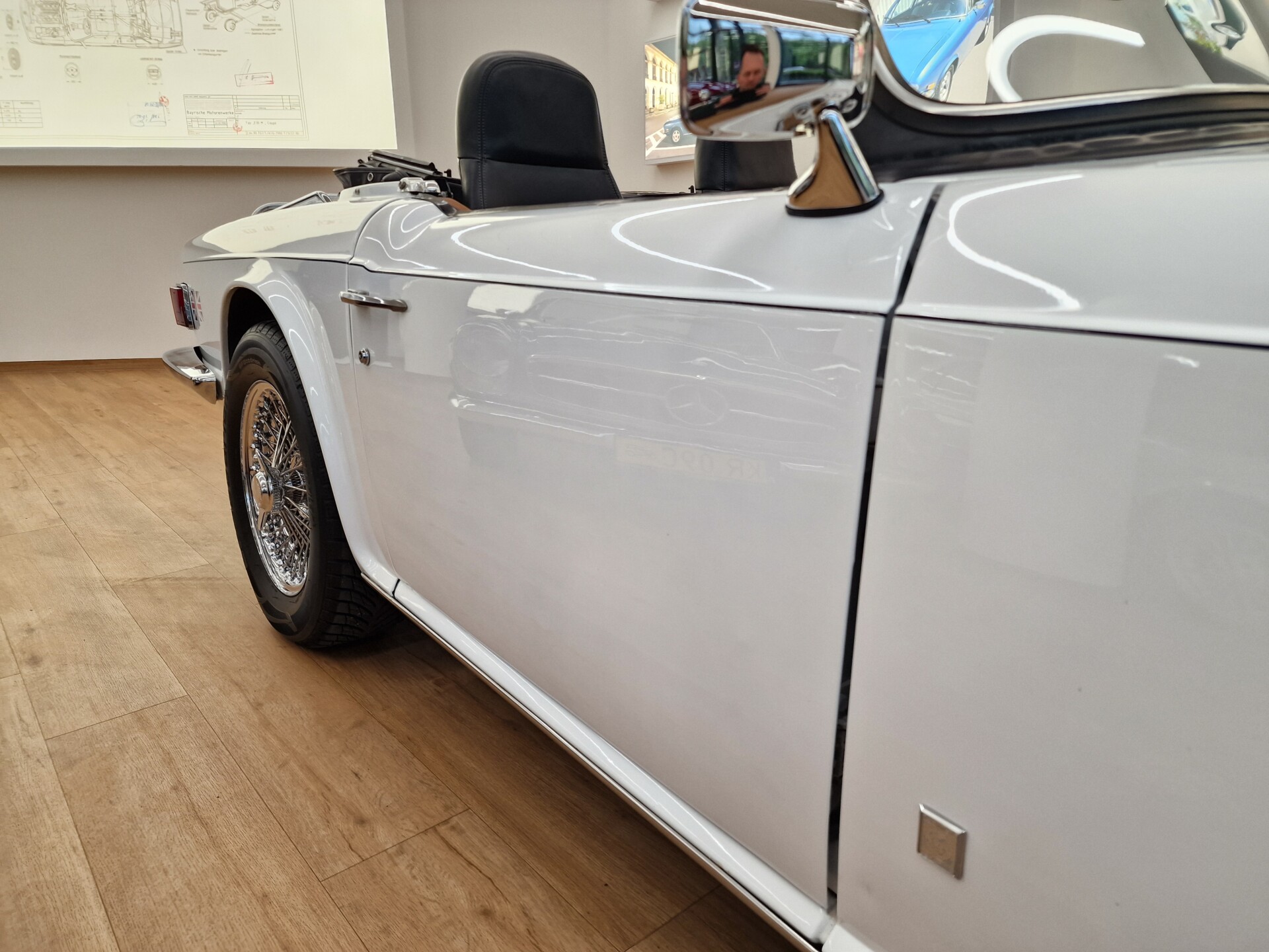 Nasz Egzemplarz – To Samochód który nadaje się w równym stopniu na relaksującą przejażdżkę po bulwarze jak i na wyścig typu hillclimb albo na dynamiczną przejazd przez szkocką przełęcz. Model z którym mamy do czynienia to wersja amerykańska z 2,5 litrową rzędową szóstką z wtryskiem Lucasa. Lecz nasz Triumph nie jest zwykłą TR6ką. Ten egzemplarz został przez poprzedniego właściciela zgodnie ze sztuką wzbogacony o kompresor, aluminiowe nakładki na pedały, sportową bardziej wydajna chłodnice i wentylowane tarczę hamulcowe. Wszystkie te akcesoria zostały zakupione w renomowanej firmie Moss Motors w Wielkiej Brytanii do tego zamontowano Sportowy filtr powietrza K&N i drewnianą kierownicę Moto – Lita, i dla bezproblemowych startów każdego dnia zapłon 123ignition. Dodatkowo do samochodu dodajemy opcjonalny twardy dach. Wszystkie te modyfikacje poskutkowały tym że samochód oferuje niesamowicie analogowe wrażenia z jazdy o które ciężko w jakimkolwiek innym samochodzie. Drogą przypomnienia ten samochód waży 1043 kg i ma 185 koni mechanicznych. Jest to idealna propozycja dla kierowców pasjonatów którzy biorą jeżdżenie samochodem na poważnie. Samochód jest po wymianie olejów w silniku, skrzyni biegów i moście a także filtrów i świec. Termostat został naprawiony i zrobiliśmy co w takim samochodzie bardzo ważne przegląd elektryki. Samochód został kompleksowo przygotowany do sezonu pozostało nim tylko jeździć i jeździć.
