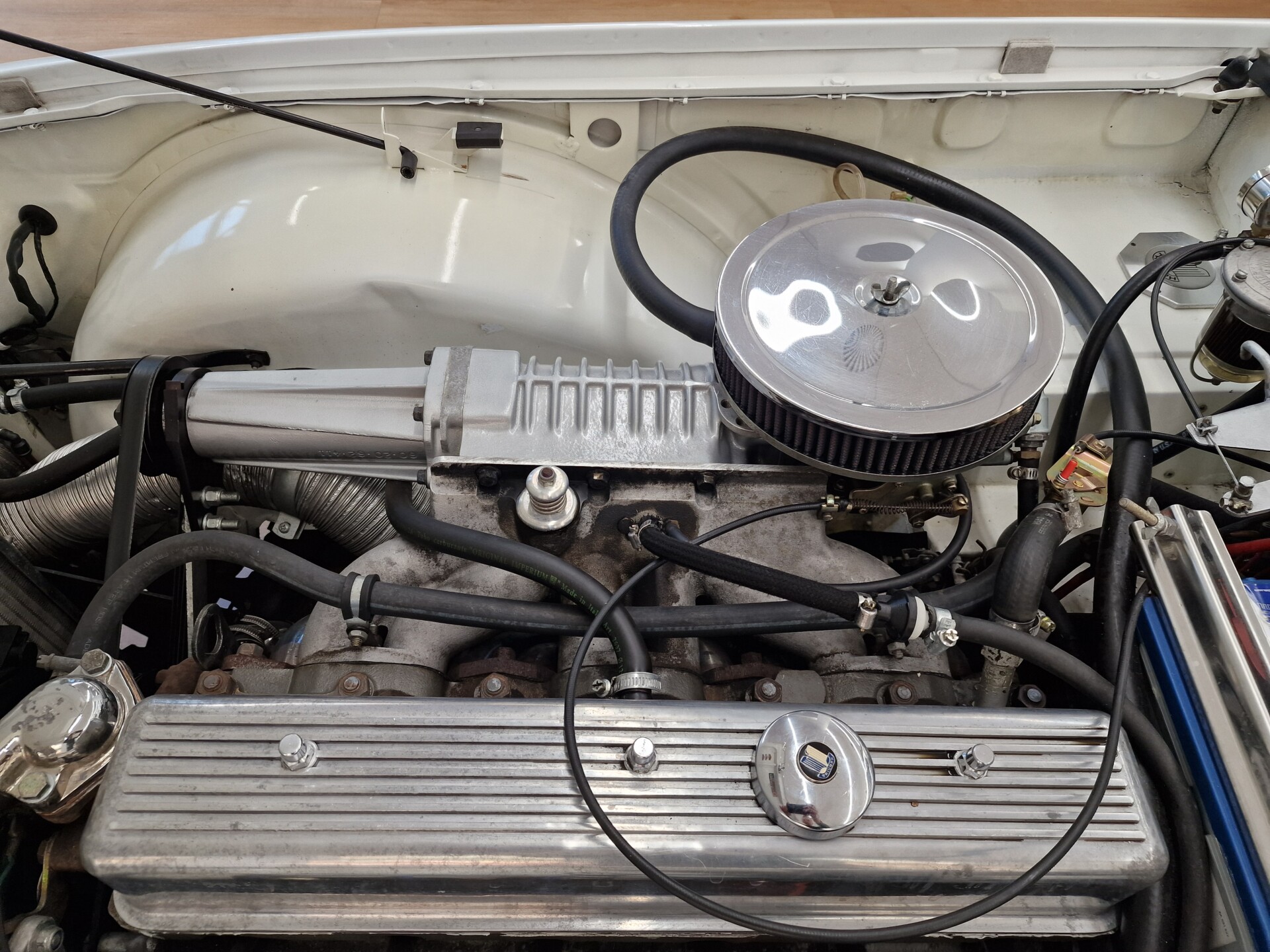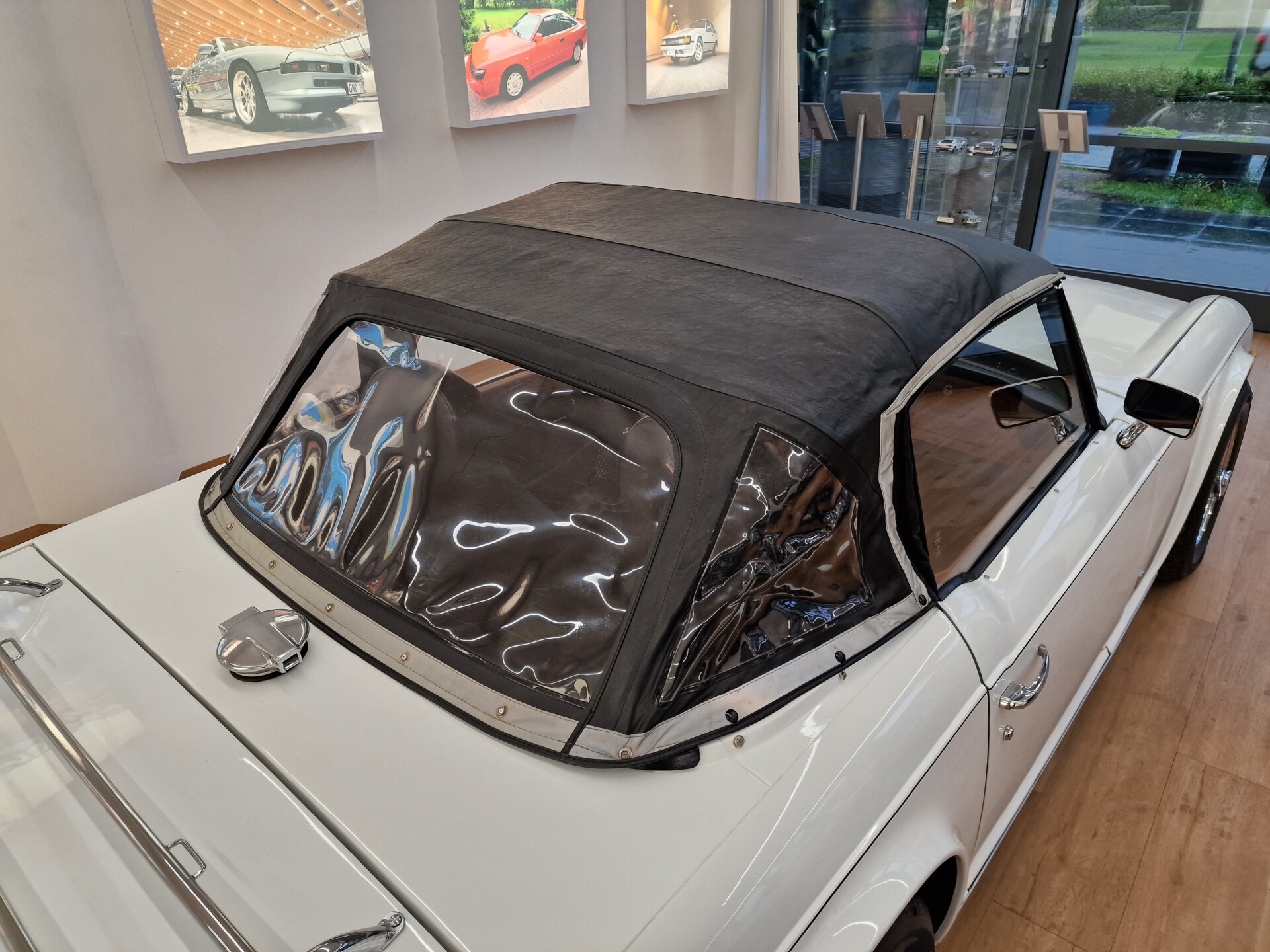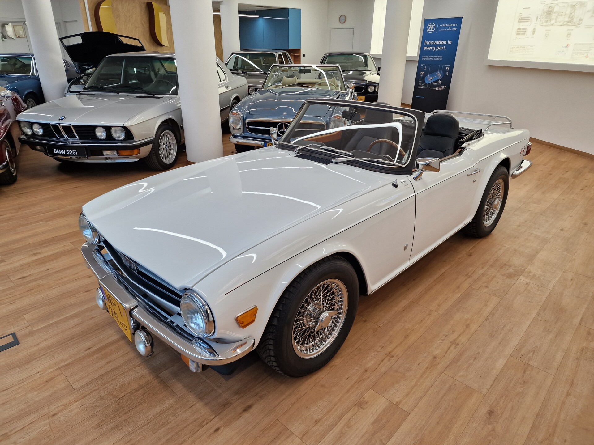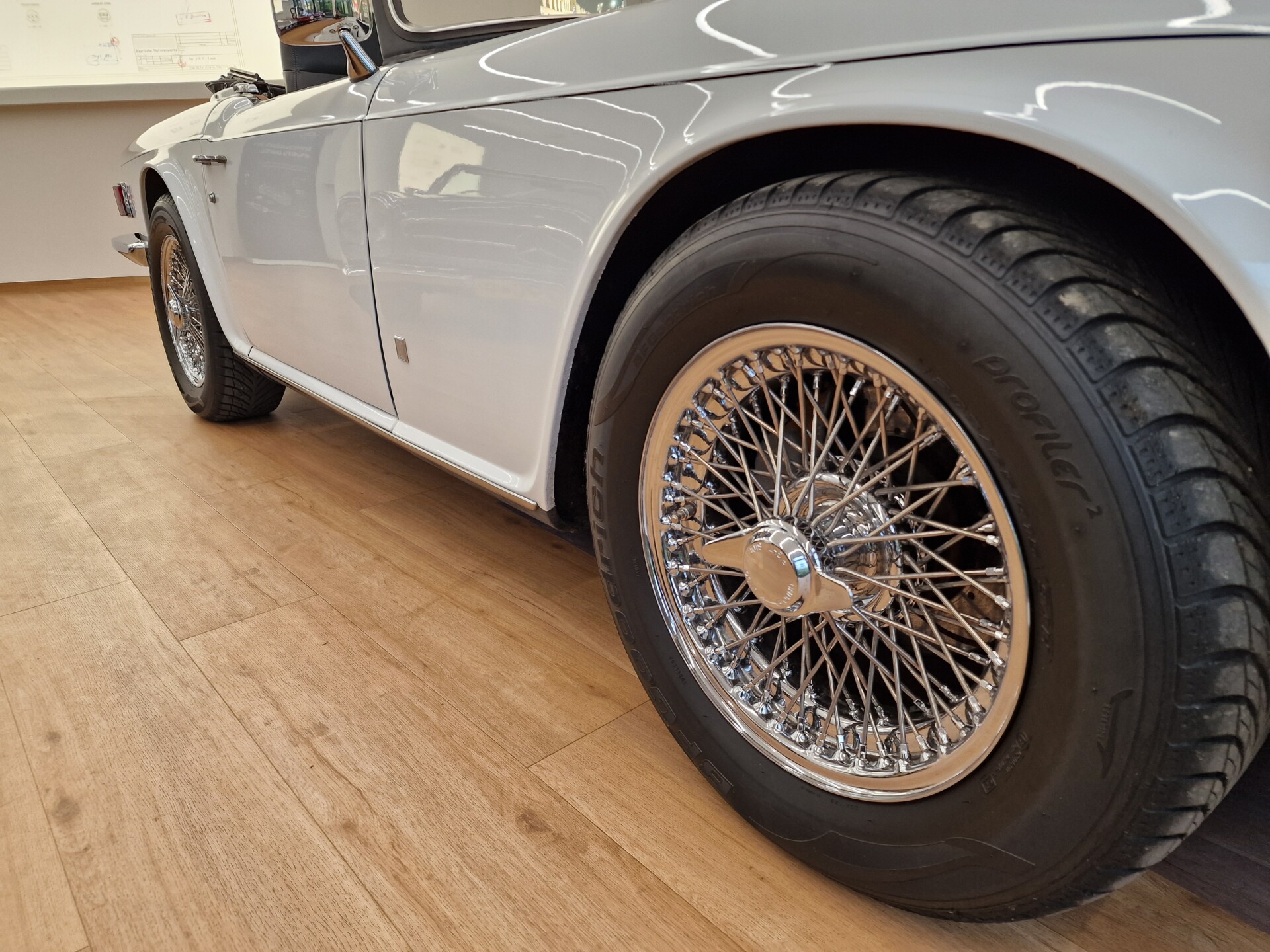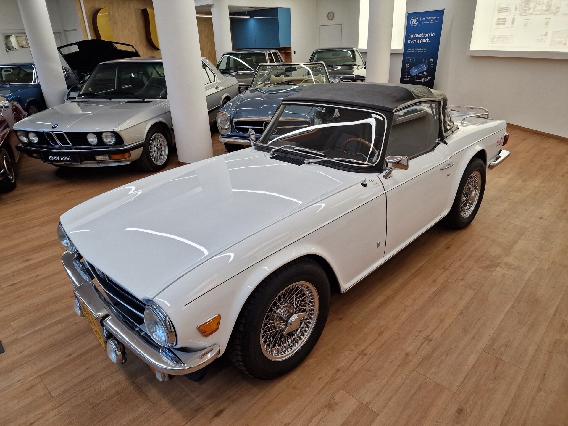 Nasz Egzemplarz – To Samochód który nadaje się w równym stopniu na relaksującą przejażdżkę po bulwarze jak i na wyścig typu hillclimb albo na dynamiczną przejazd przez szkocką przełęcz. Model z którym mamy do czynienia to wersja amerykańska z 2,5 litrową rzędową szóstką z wtryskiem Lucasa. Lecz nasz Triumph nie jest zwykłą TR6ką. Ten egzemplarz został przez poprzedniego właściciela zgodnie ze sztuką wzbogacony o kompresor, aluminiowe nakładki na pedały, sportową bardziej wydajna chłodnice i wentylowane tarczę hamulcowe. Wszystkie te akcesoria zostały zakupione w renomowanej firmie Moss Motors w Wielkiej Brytanii do tego zamontowano Sportowy filtr powietrza K&N i drewnianą kierownicę Moto – Lita, i dla bezproblemowych startów każdego dnia zapłon 123ignition. Dodatkowo do samochodu dodajemy opcjonalny twardy dach. Wszystkie te modyfikacje poskutkowały tym że samochód oferuje niesamowicie analogowe wrażenia z jazdy o które ciężko w jakimkolwiek innym samochodzie. Drogą przypomnienia ten samochód waży 1043 kg i ma 185 koni mechanicznych. Jest to idealna propozycja dla kierowców pasjonatów którzy biorą jeżdżenie samochodem na poważnie. Samochód jest po wymianie olejów w silniku, skrzyni biegów i moście a także filtrów i świec. Termostat został naprawiony i zrobiliśmy co w takim samochodzie bardzo ważne przegląd elektryki. Samochód został kompleksowo przygotowany do sezonu pozostało nim tylko jeździć i jeździć.